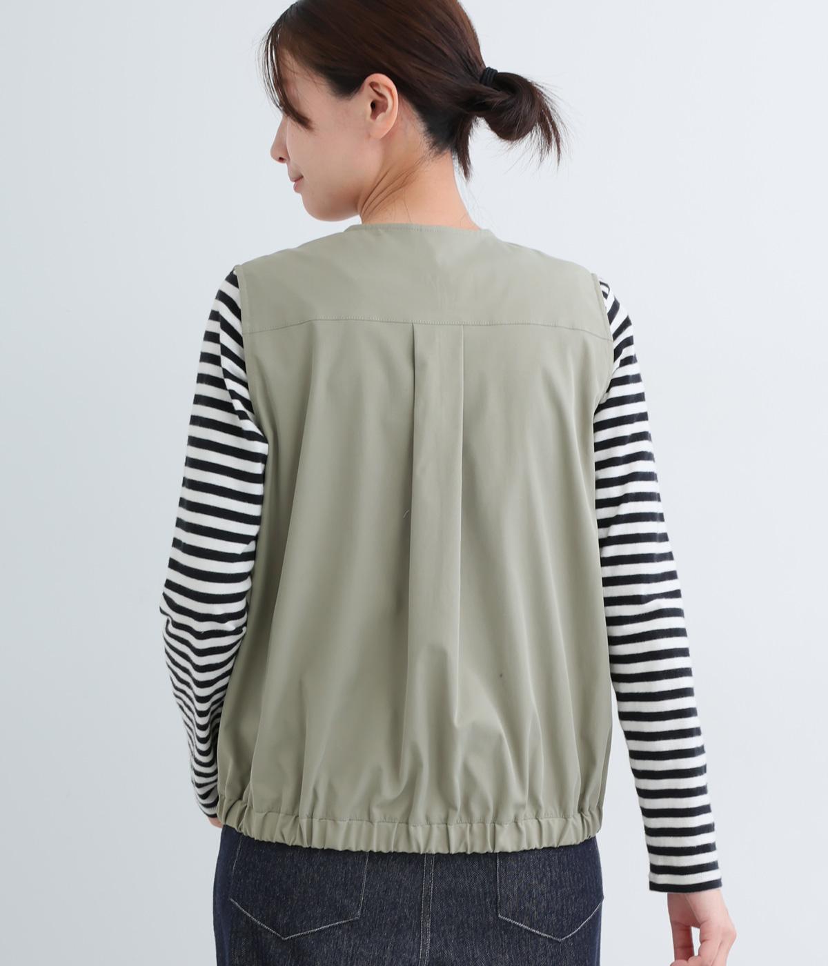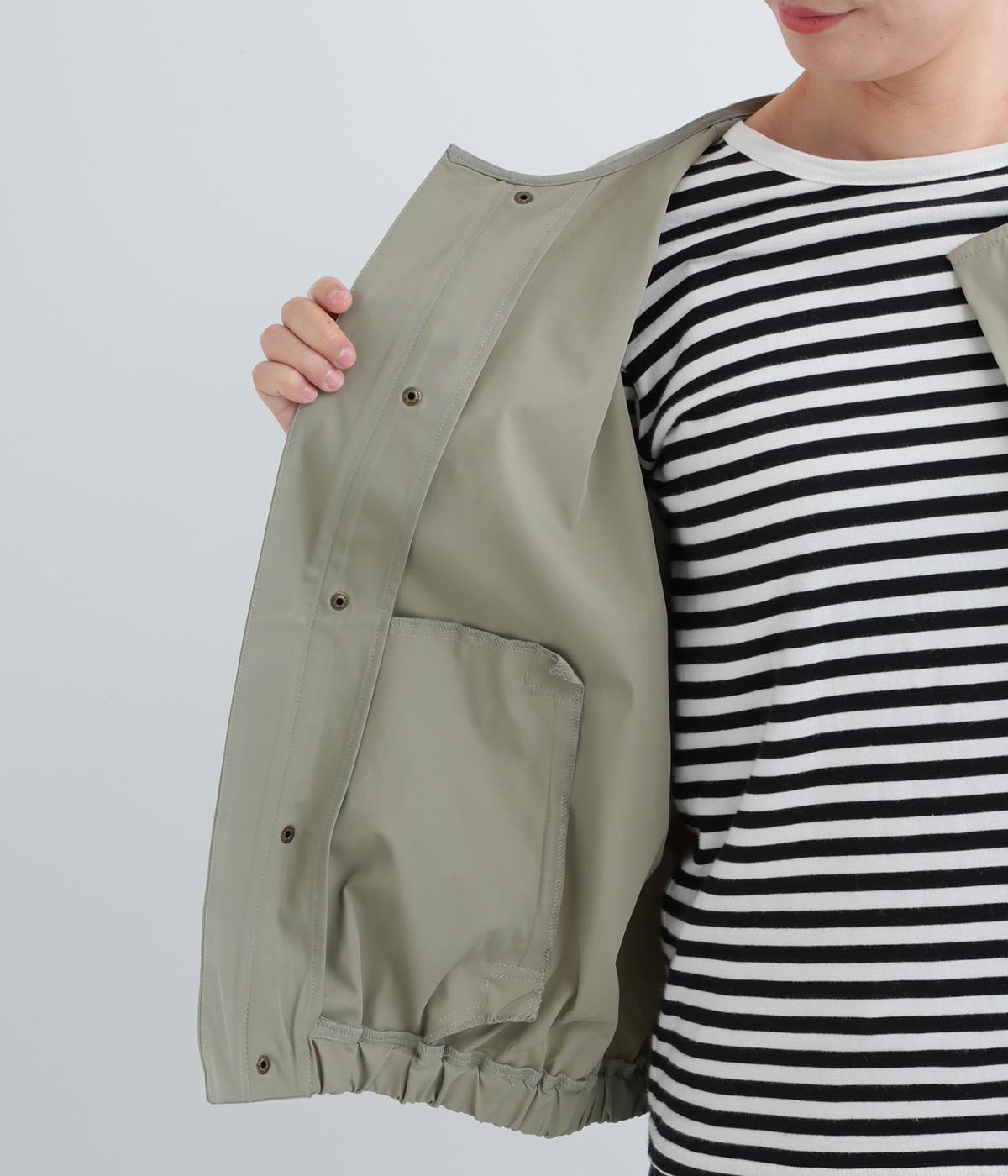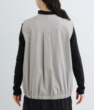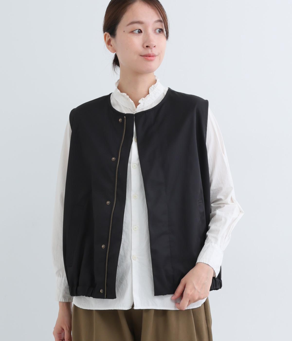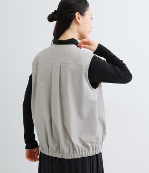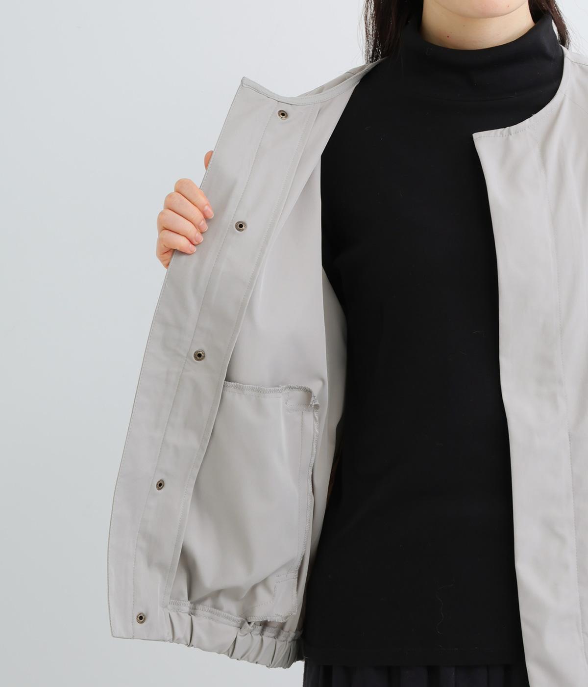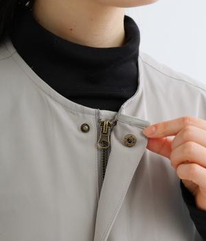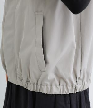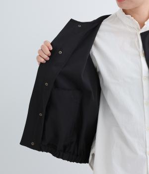 背中のタックとゴム入りの裾が、ふんわりとしたバルーンシルエットを描きます。前面は比翼仕立てですっきりと、バランスよく仕上げました。サッと羽織るだけでスタイリングにニュアンスが生まれ、こなれた雰囲気に仕上がります。