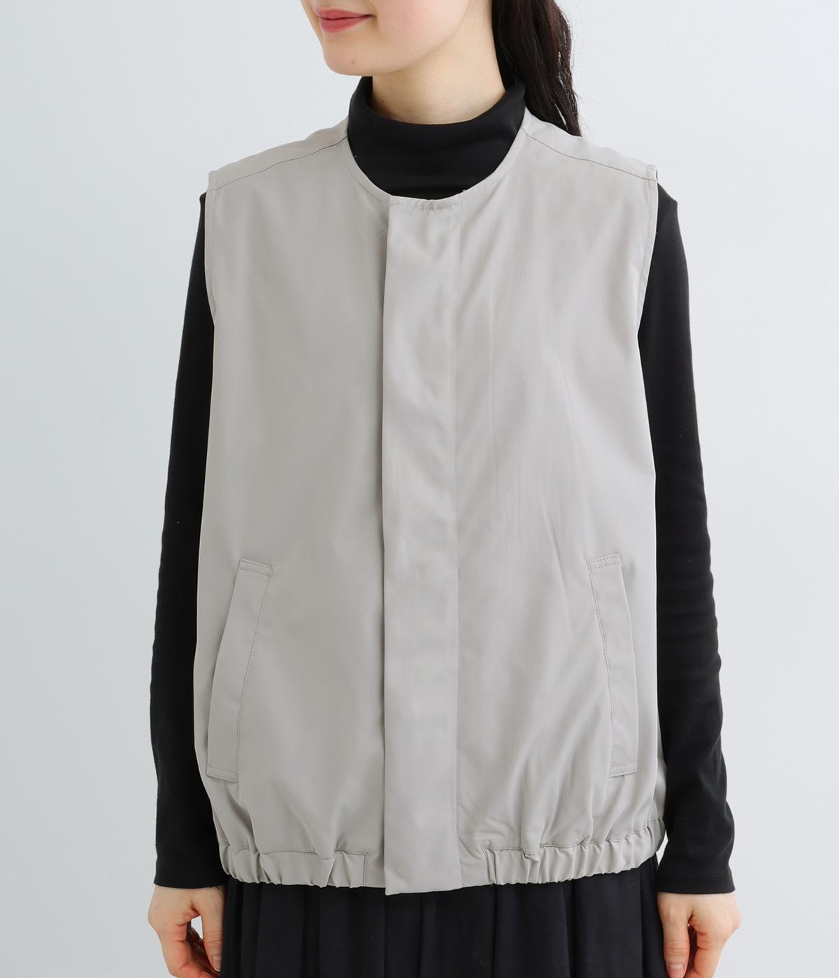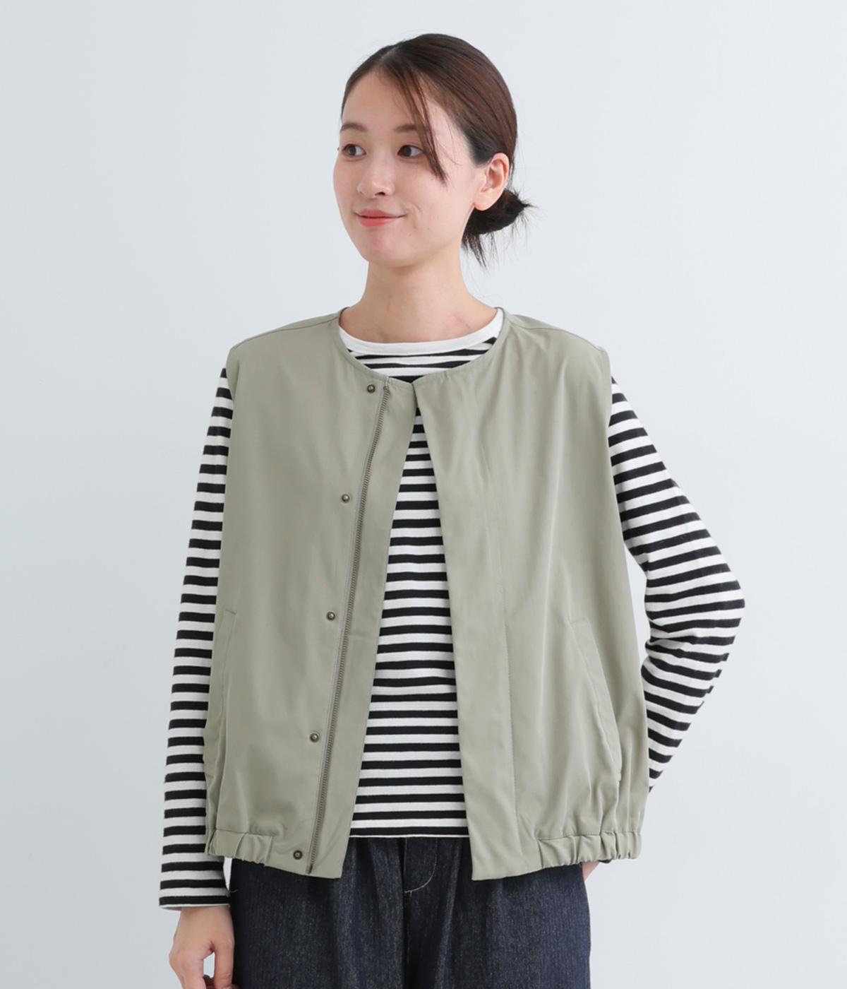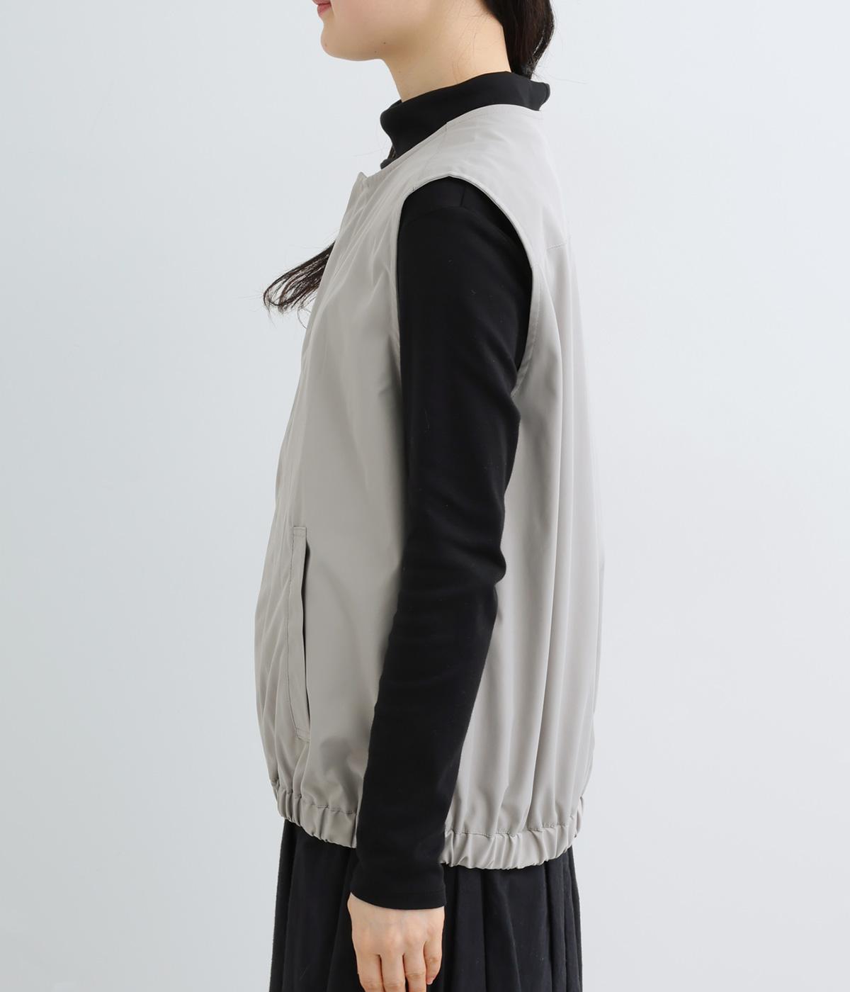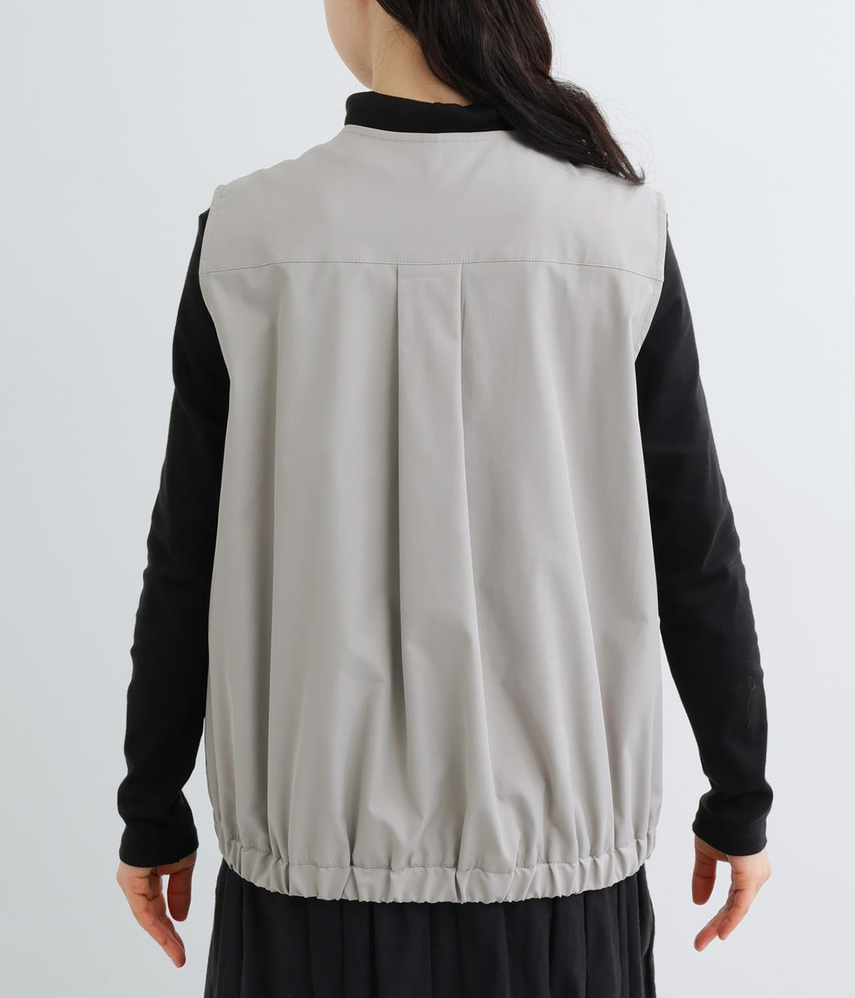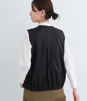 背中のタックとゴム入りの裾が、ふんわりとしたバルーンシルエットを描きます。前面は比翼仕立てですっきりと、バランスよく仕上げました。サッと羽織るだけでスタイリングにニュアンスが生まれ、こなれた雰囲気に仕上がります。