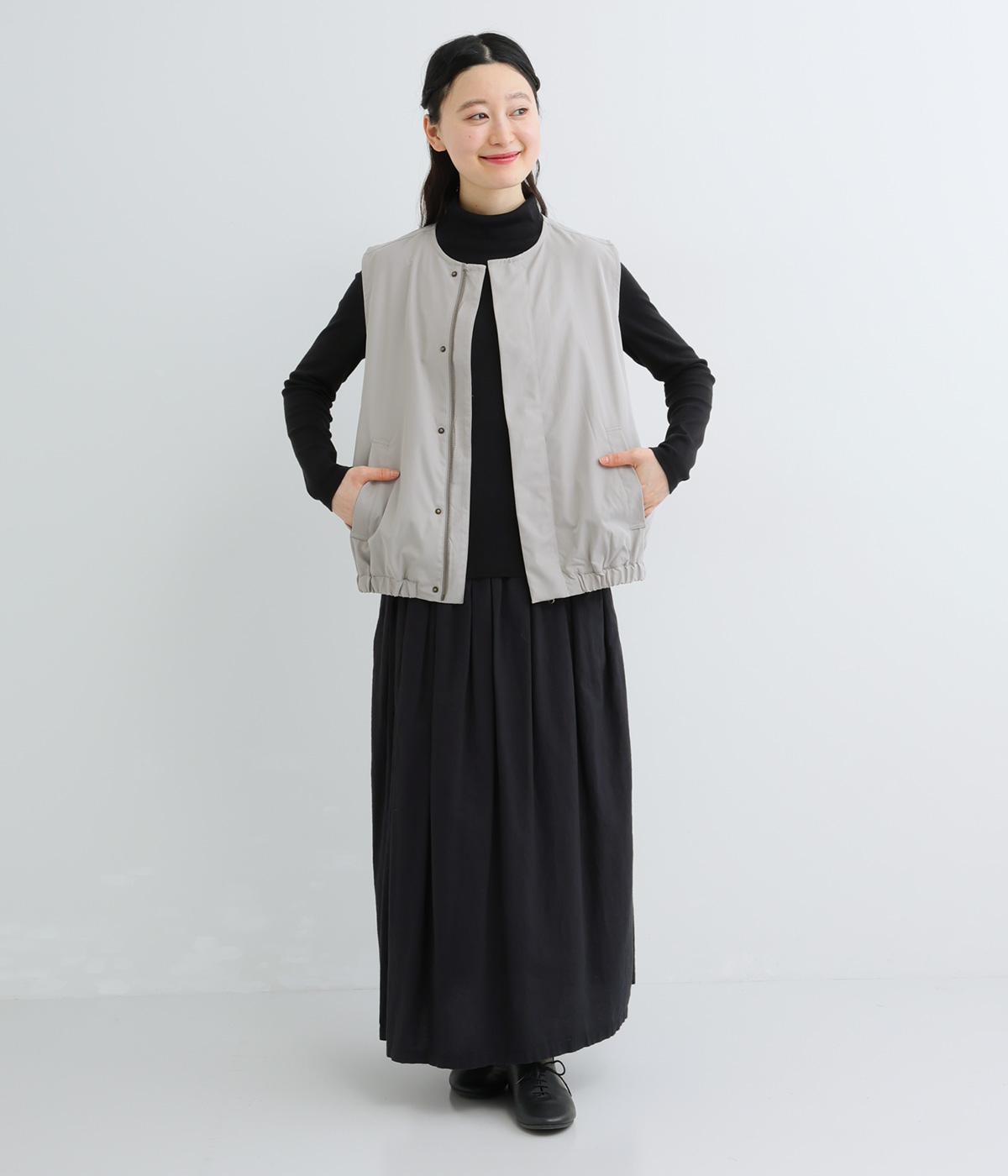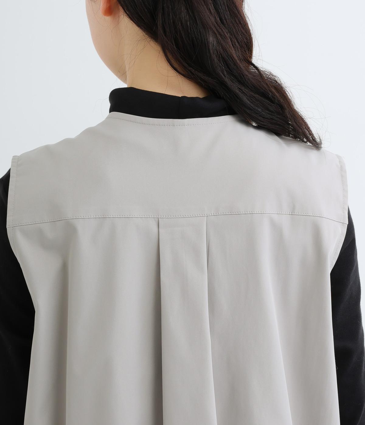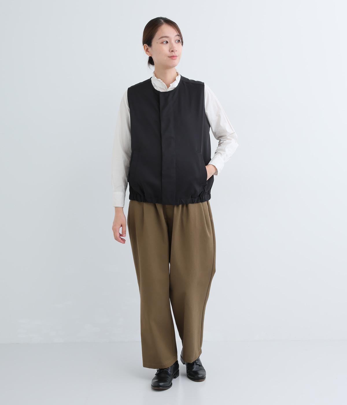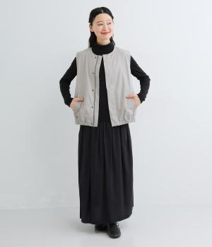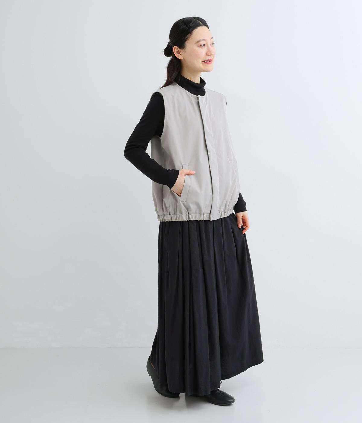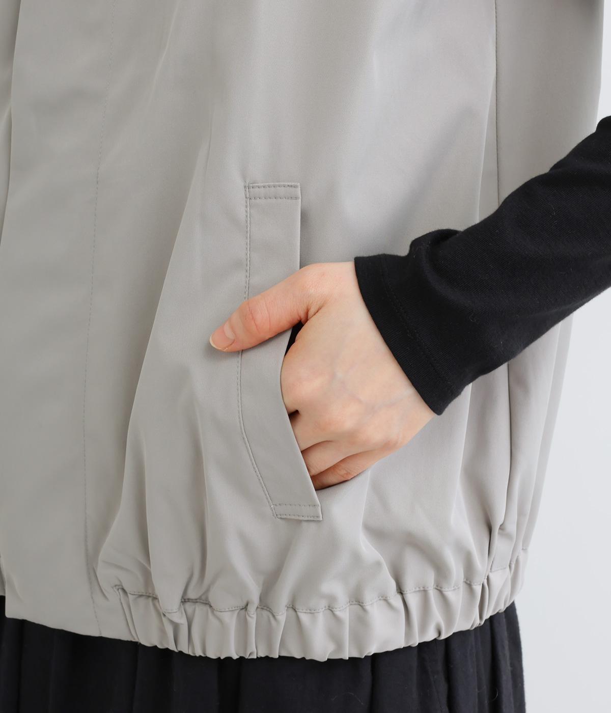 背中のタックとゴム入りの裾が、ふんわりとしたバルーンシルエットを描きます。前面は比翼仕立てですっきりと、バランスよく仕上げました。サッと羽織るだけでスタイリングにニュアンスが生まれ、こなれた雰囲気に仕上がります。