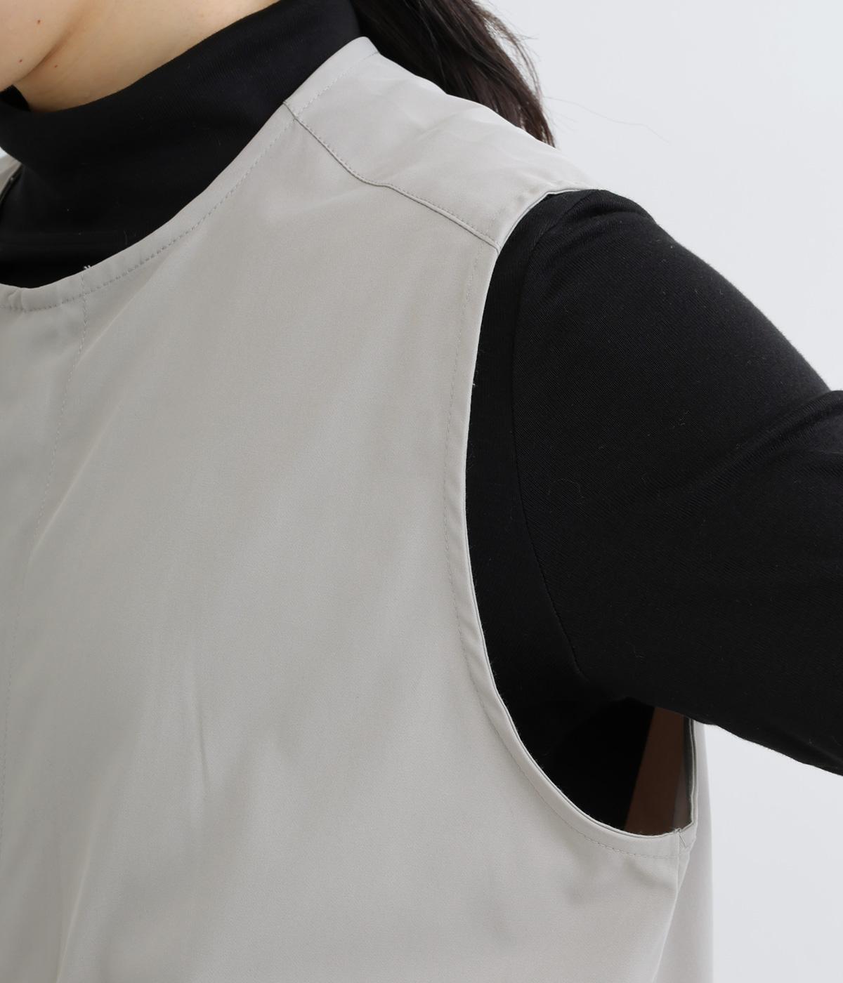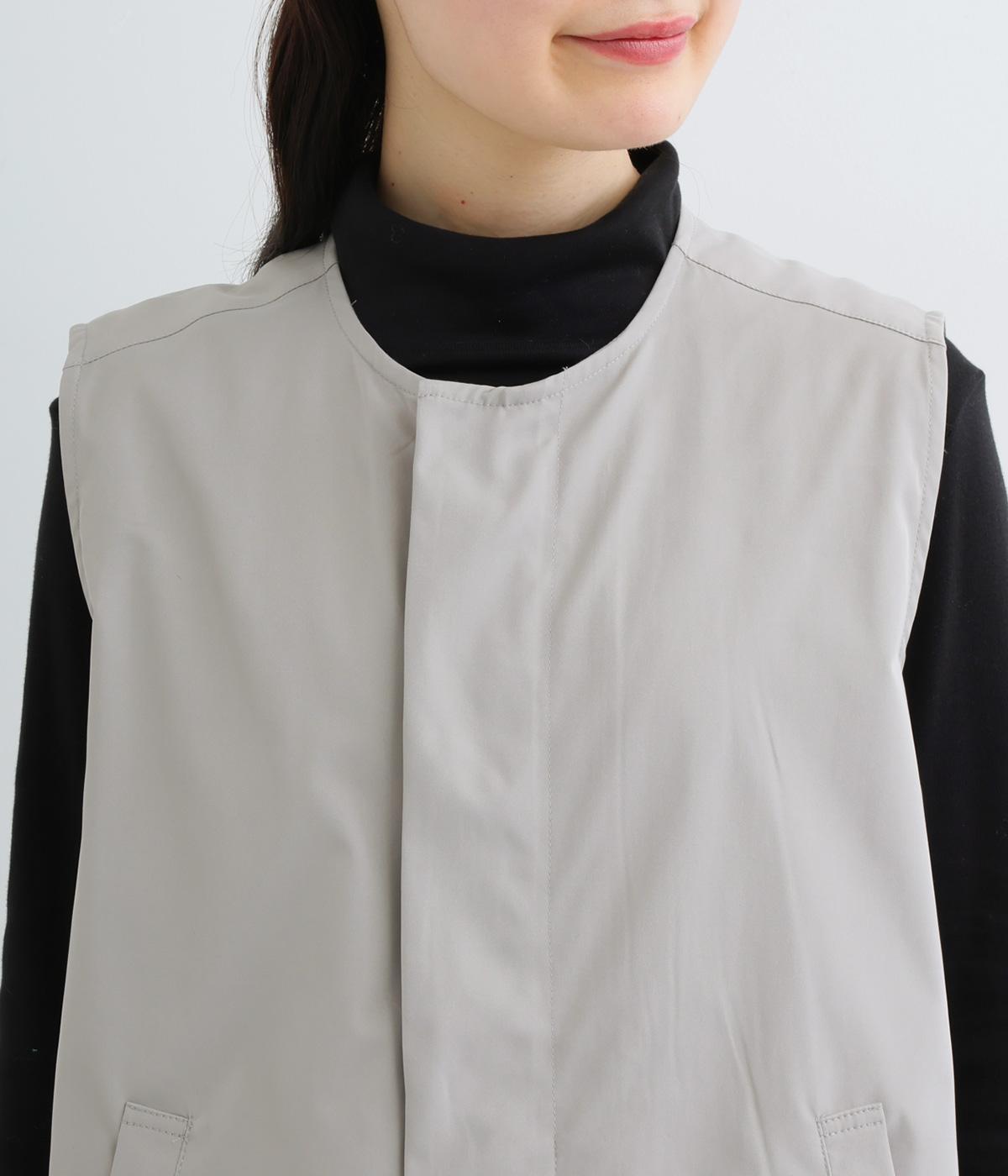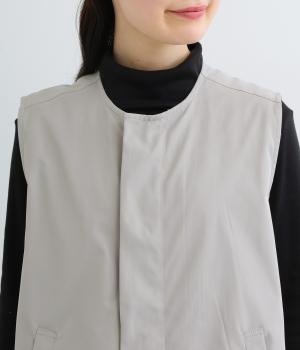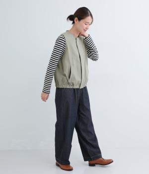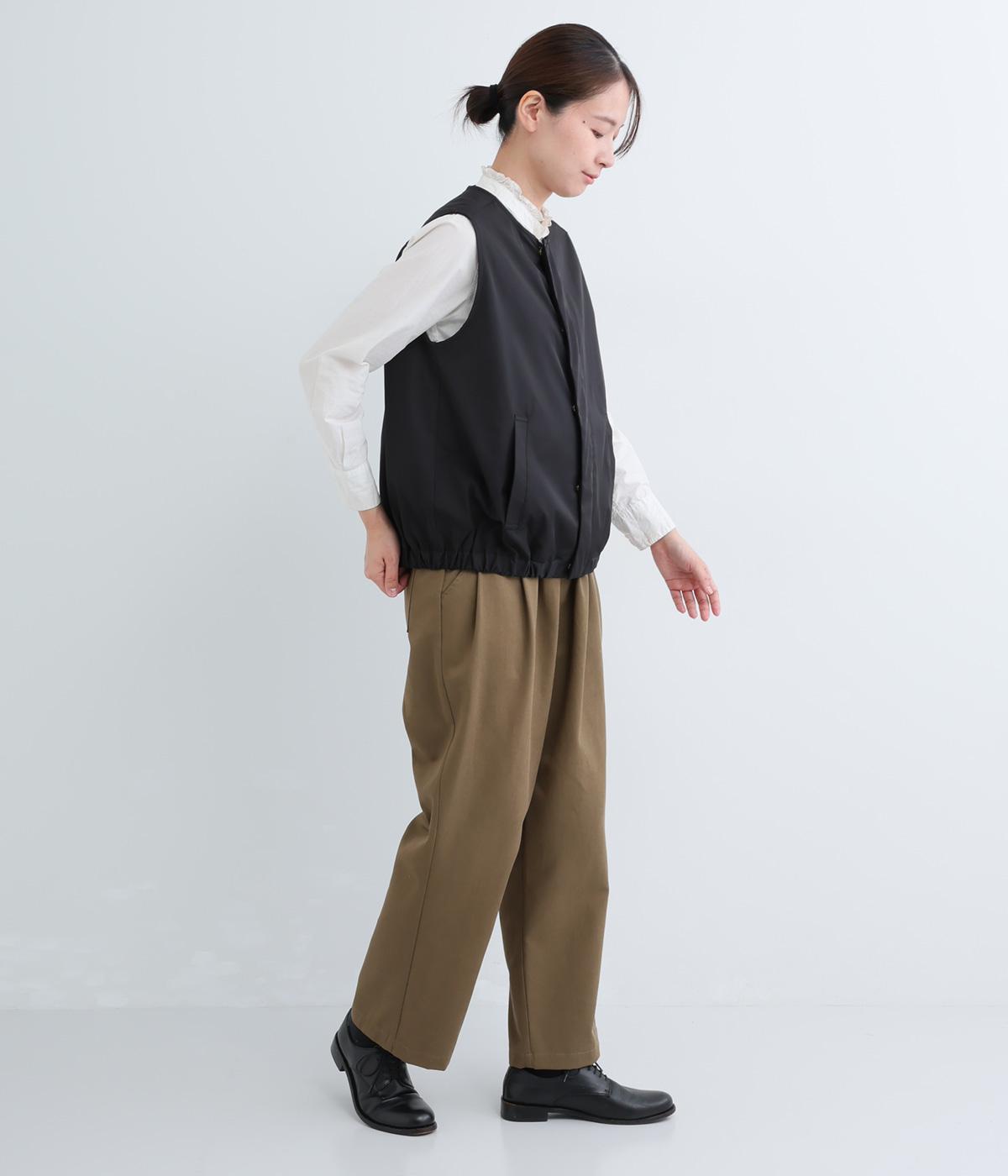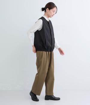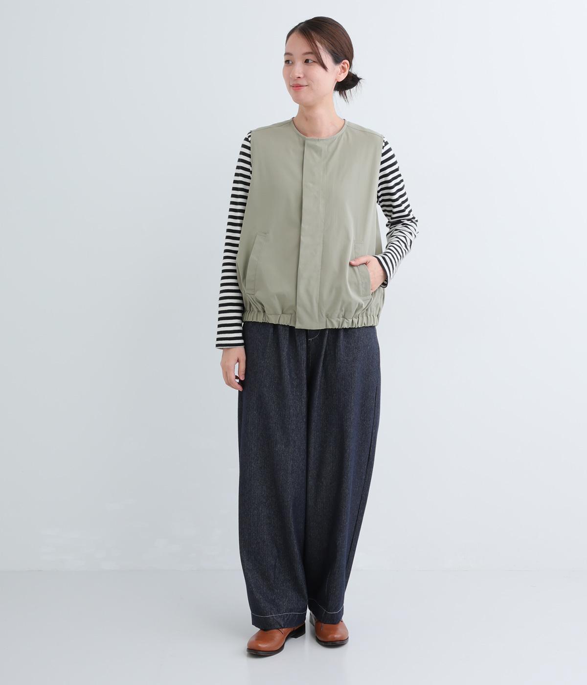 背中のタックとゴム入りの裾が、ふんわりとしたバルーンシルエットを描きます。前面は比翼仕立てですっきりと、バランスよく仕上げました。サッと羽織るだけでスタイリングにニュアンスが生まれ、こなれた雰囲気に仕上がります。