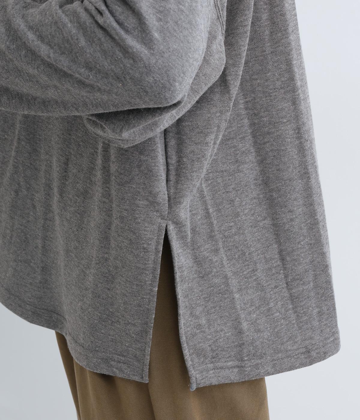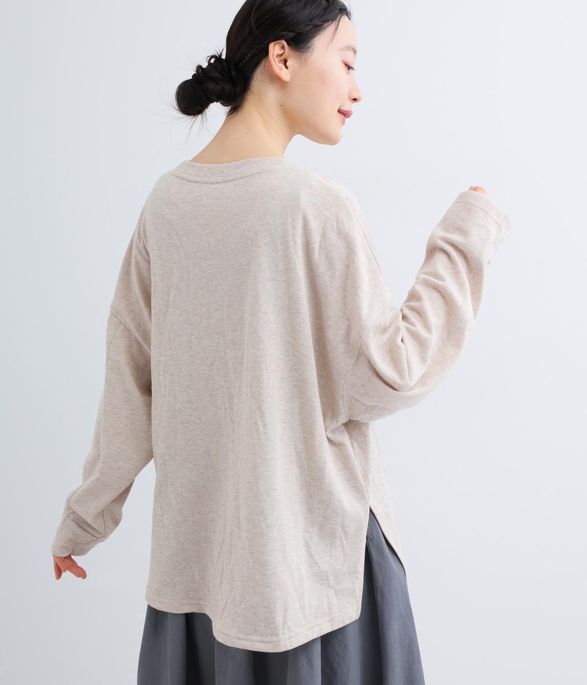 ポリエステルとコットンをミックスした、ほどよくふっくらとした裏毛生地を使用しました。落ち感のあるほどよい厚みで伸縮性があり、デイリー使いにぴったりな素材感です。首元の柄は刺しゅうで表現しました。
