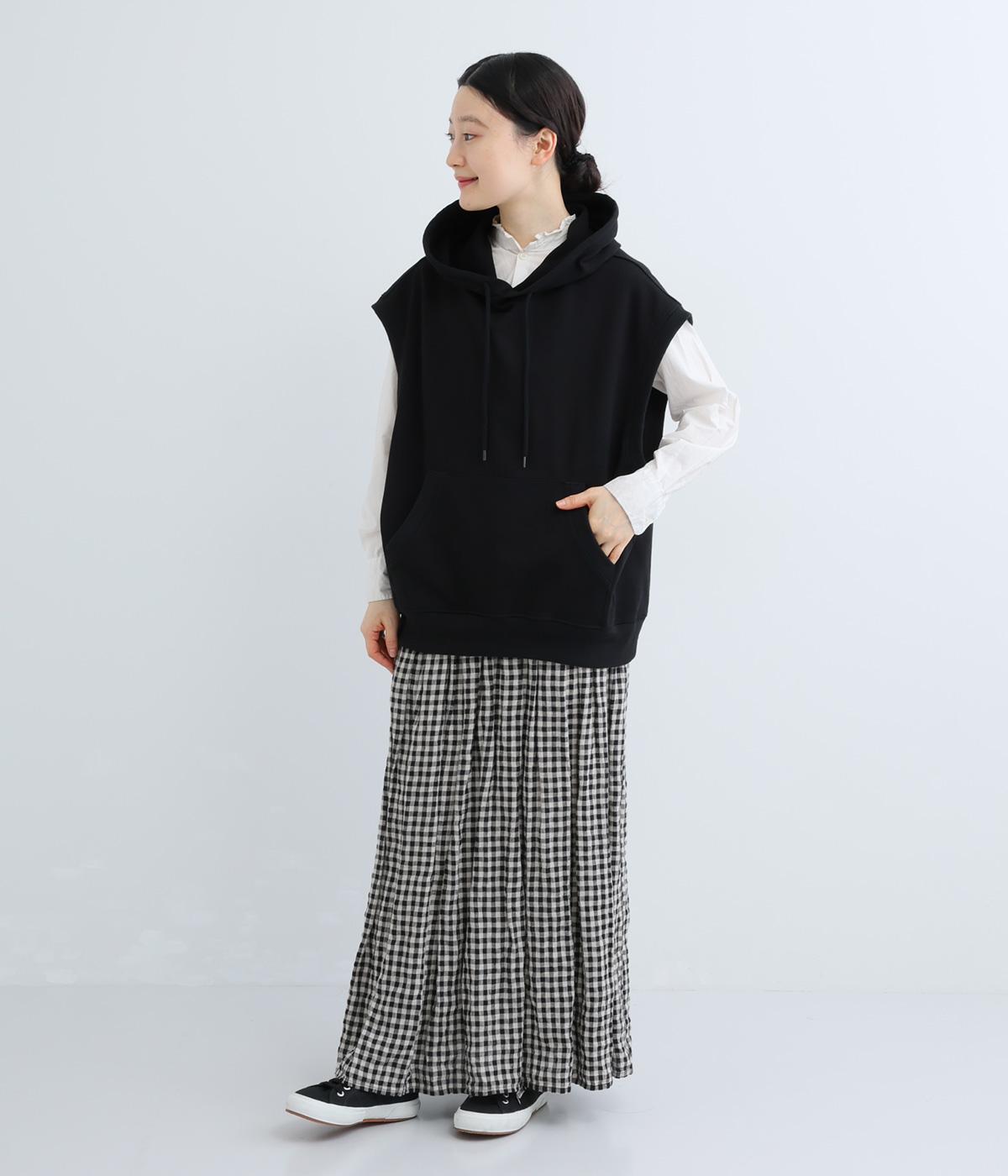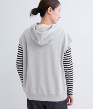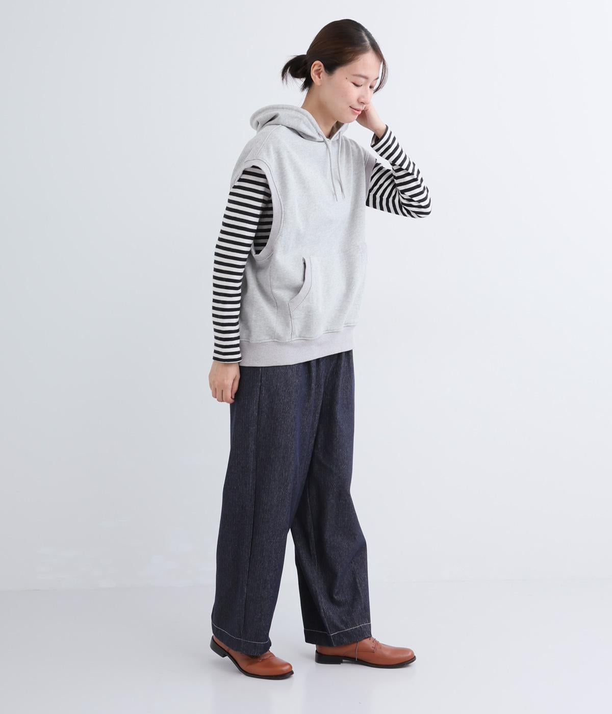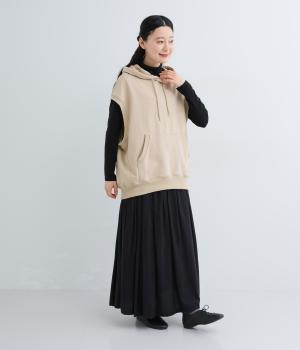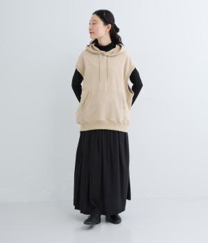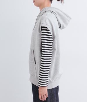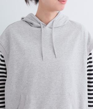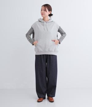 ふんわりとしたコットン裏毛生地に製法後に洗いをかけて味わいのある風合いをほどこしました。ソフトで伸縮性があり、デイリー使いにぴったりな素材感です。