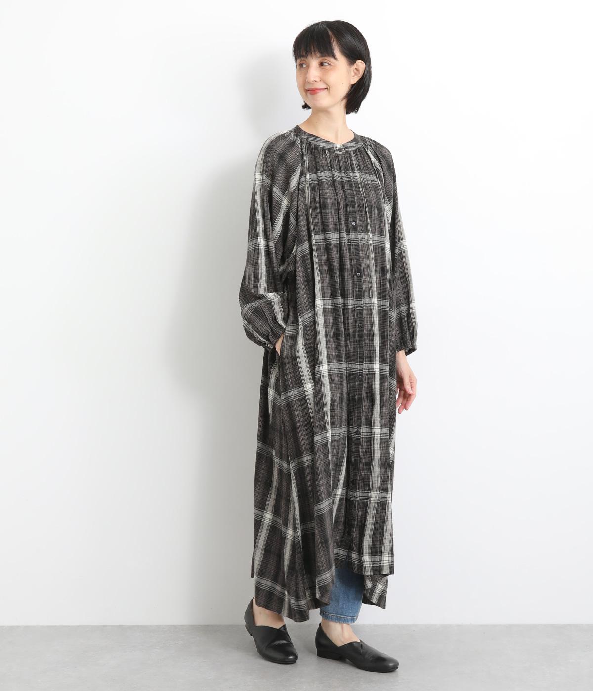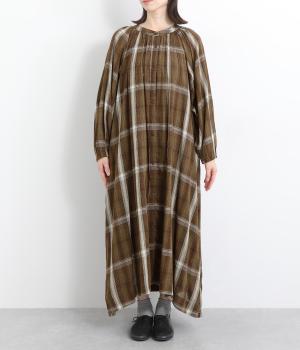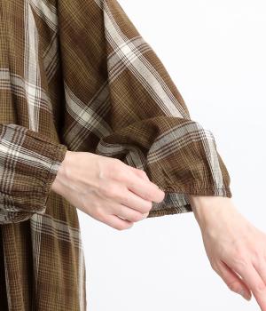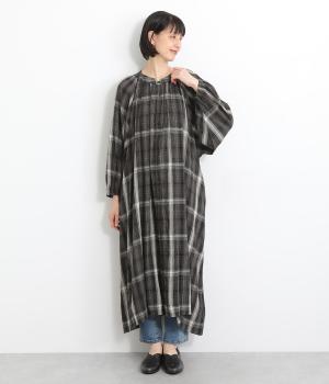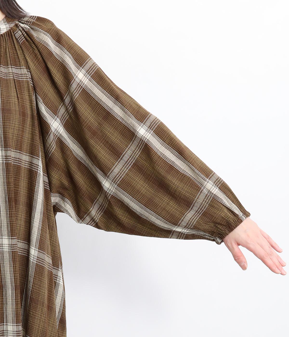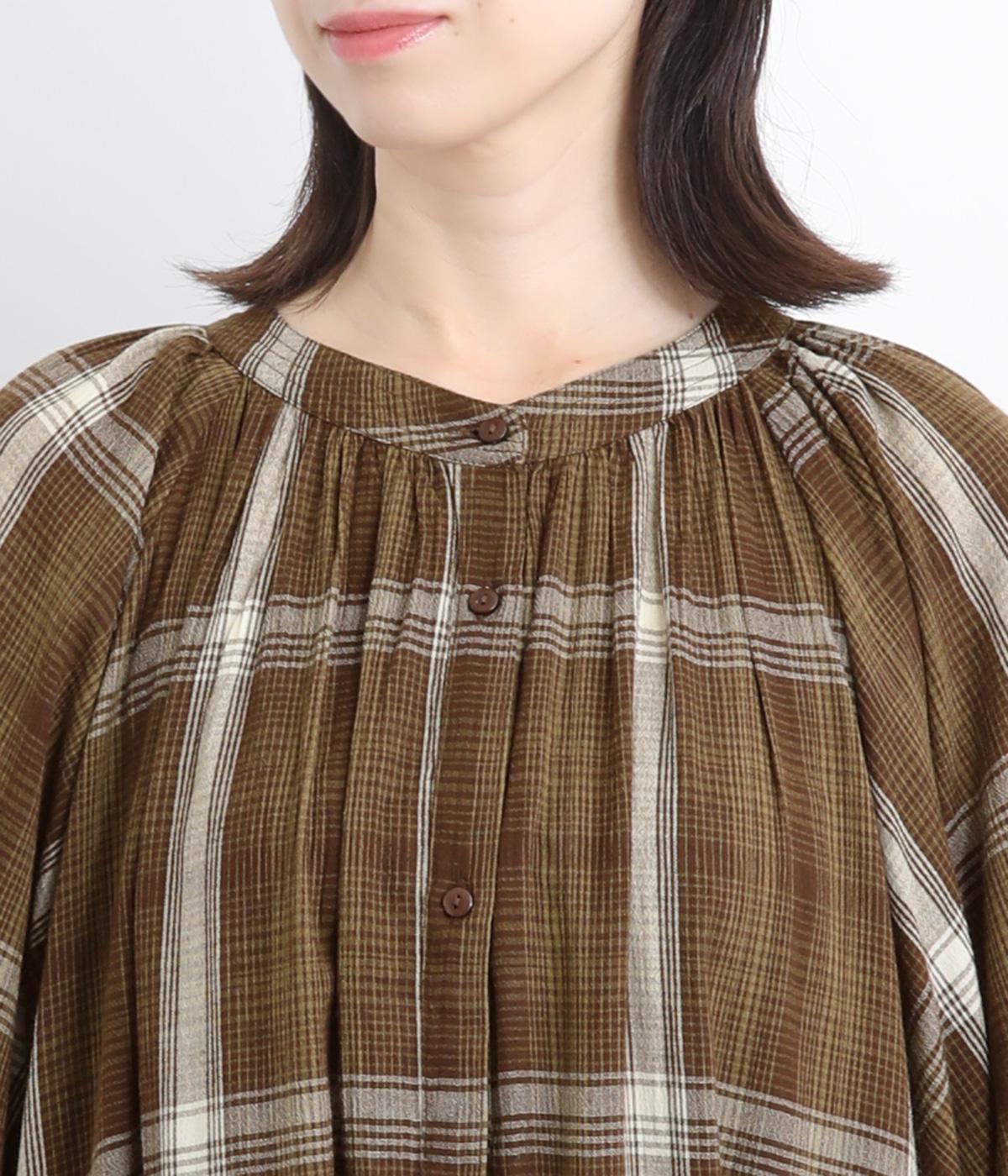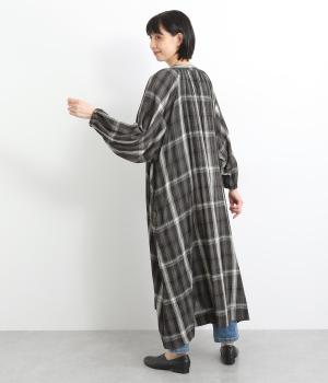 襟ぐりギャザーで分量感のあるフレアシルエットにたっぷりとしたラグランスリーブが目を惹くワンピース。繊細な素材によって、ボリュームのわりに軽やかに仕上がっています。袖口ゴムでたくし上げたり、前あきで羽織ったりアレンジも◎。
