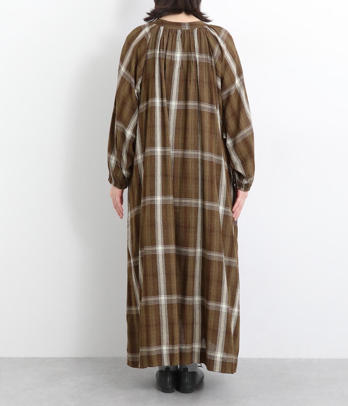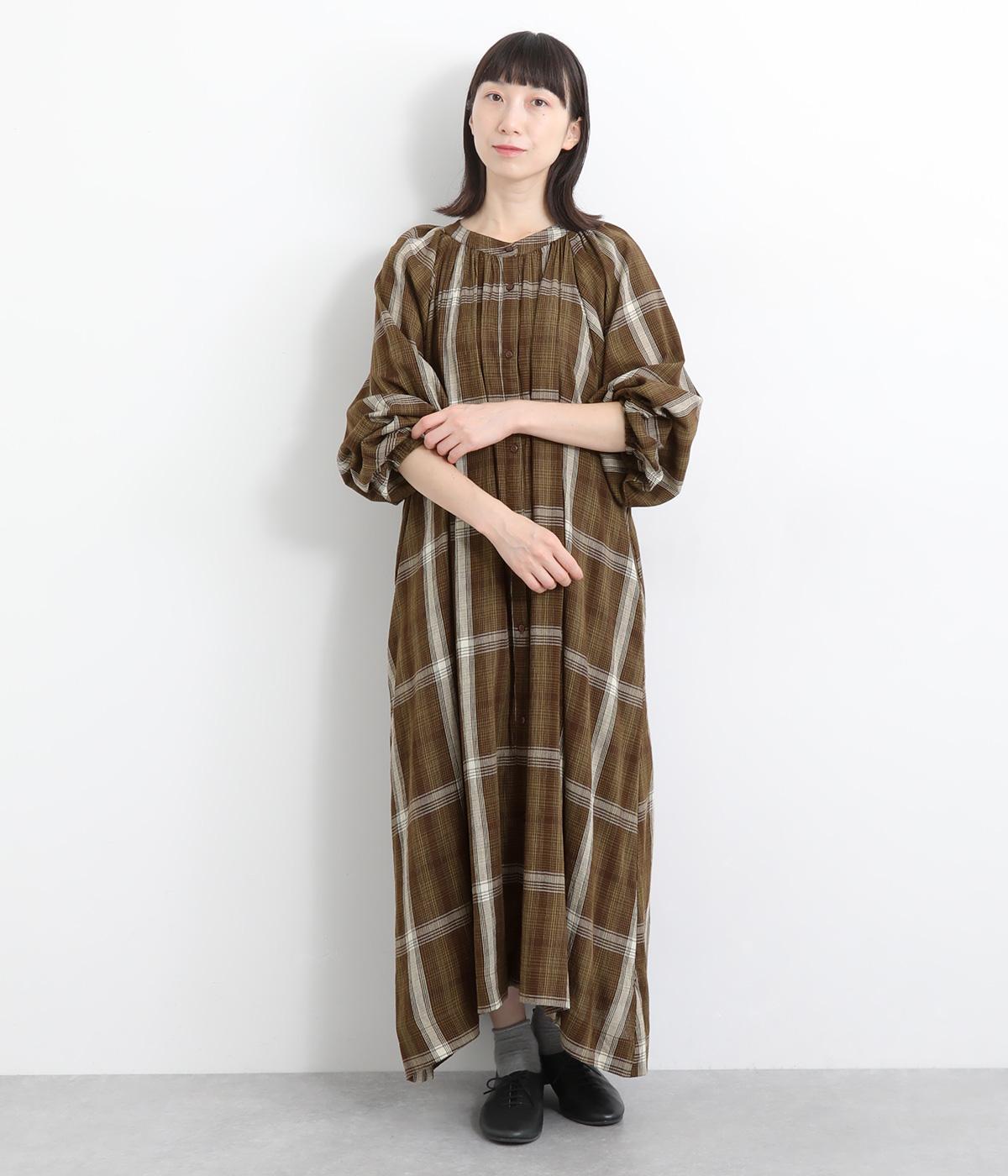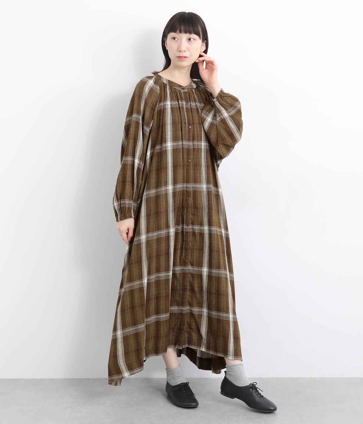 襟ぐりギャザーで分量感のあるフレアシルエットにたっぷりとしたラグランスリーブが目を惹くワンピース。繊細な素材によって、ボリュームのわりに軽やかに仕上がっています。袖口ゴムでたくし上げたり、前あきで羽織ったりアレンジも◎。