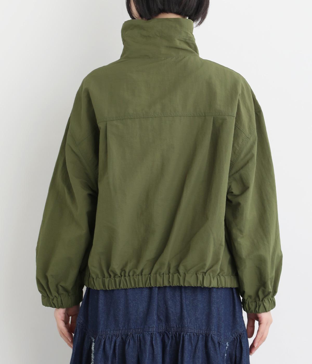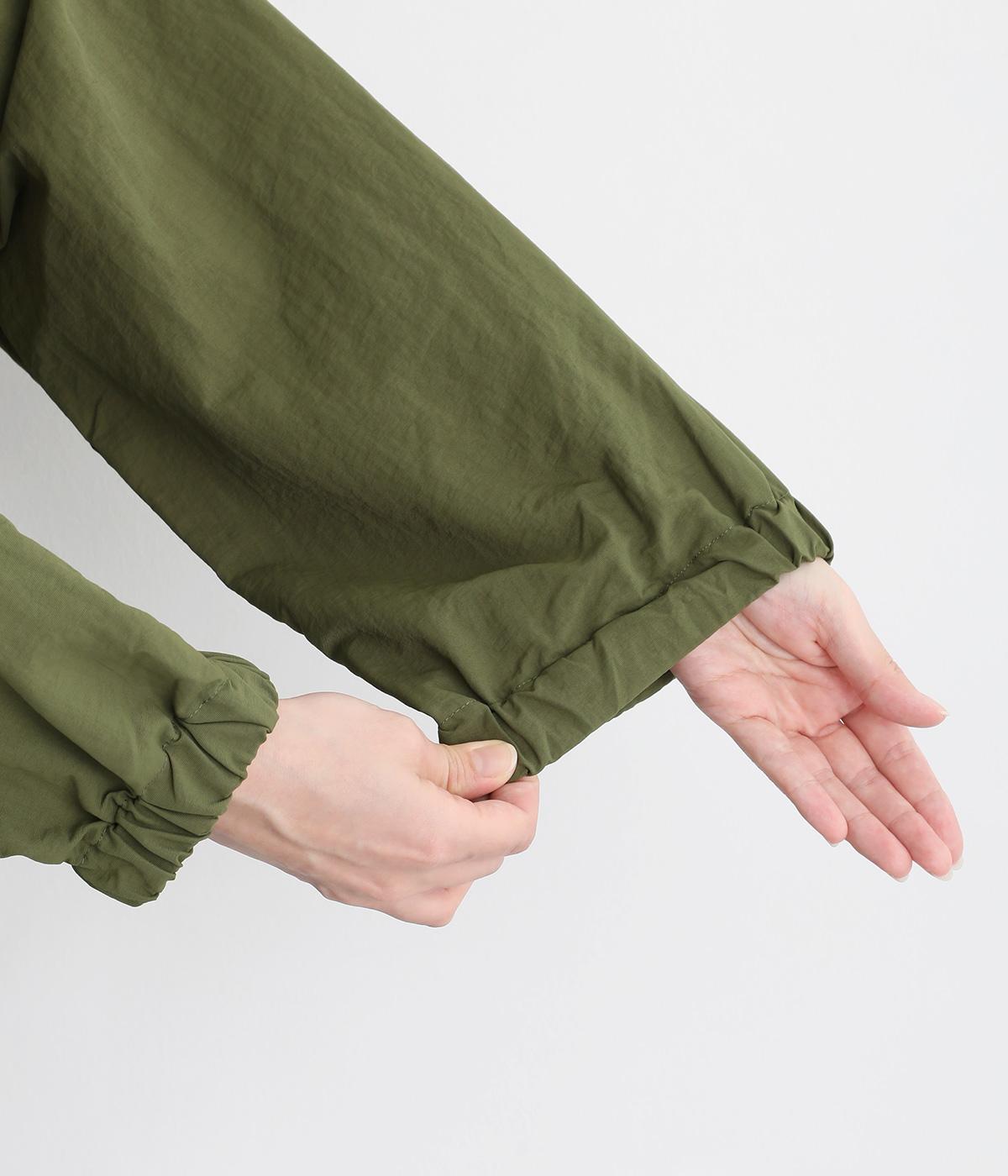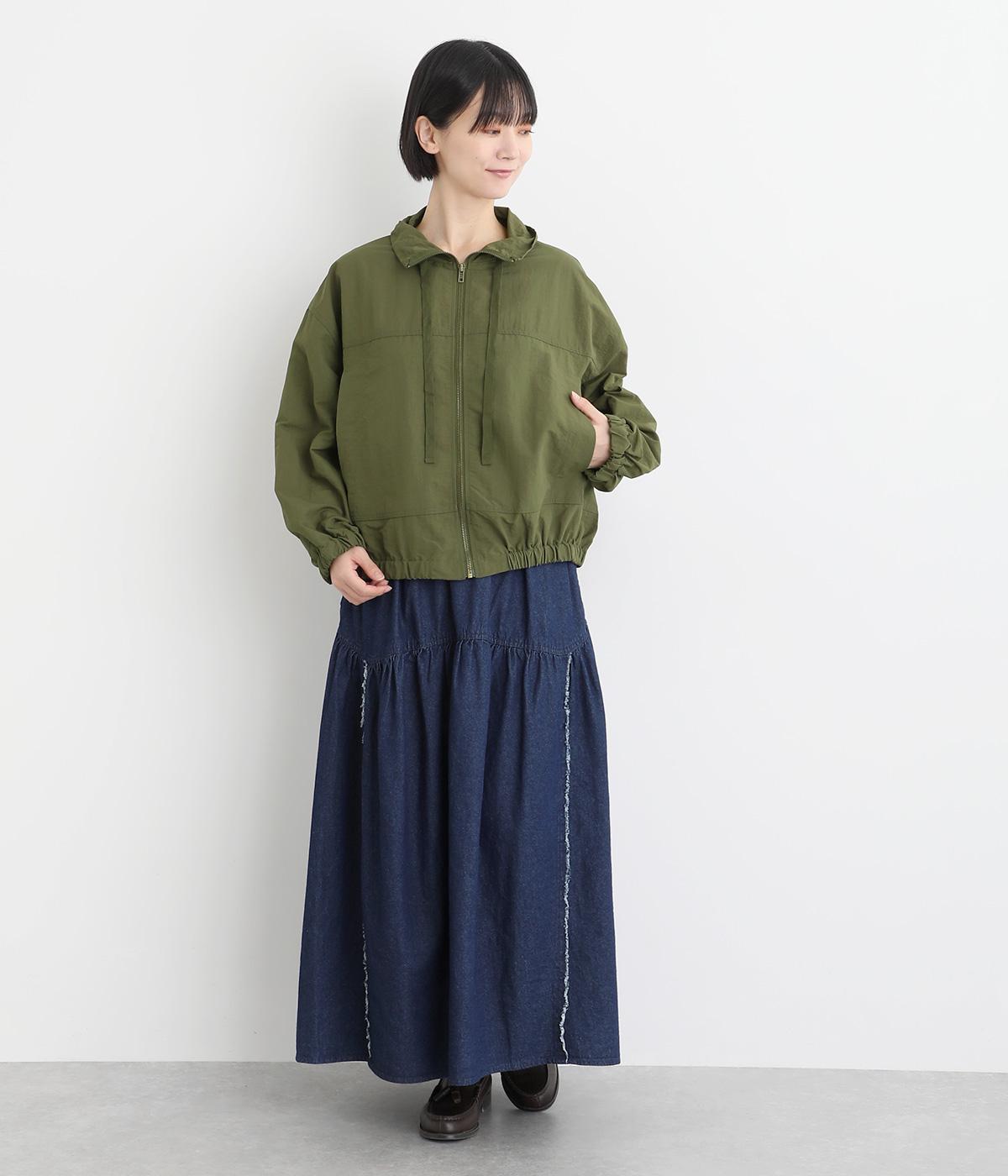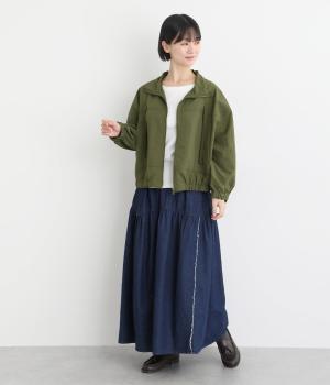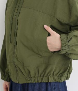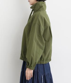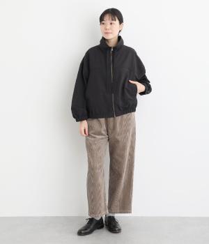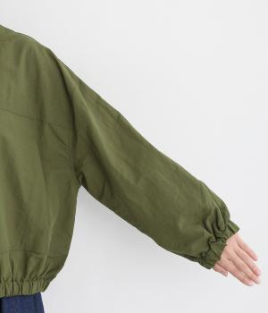ボリューム袖が特徴的なブルゾンは、ショート丈で全体的にすっきりとまとめました。裾や袖口にはゴムを入れてメリハリをつけ、丸みのあるシルエットで甘辛バランスに。襟元のドローコードは機能性だけでなくお洒落さもプラス。