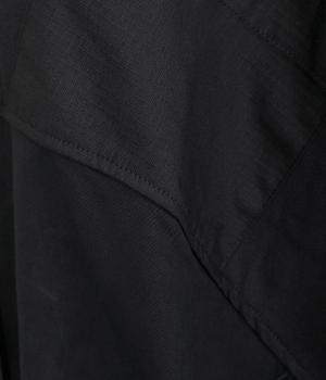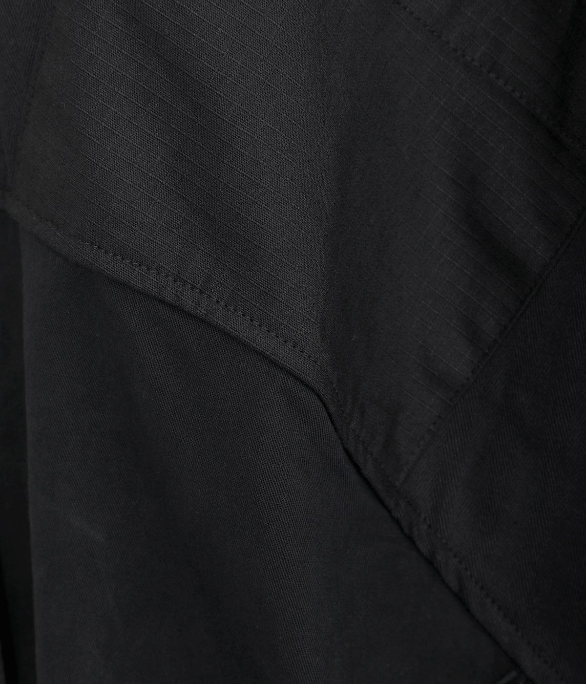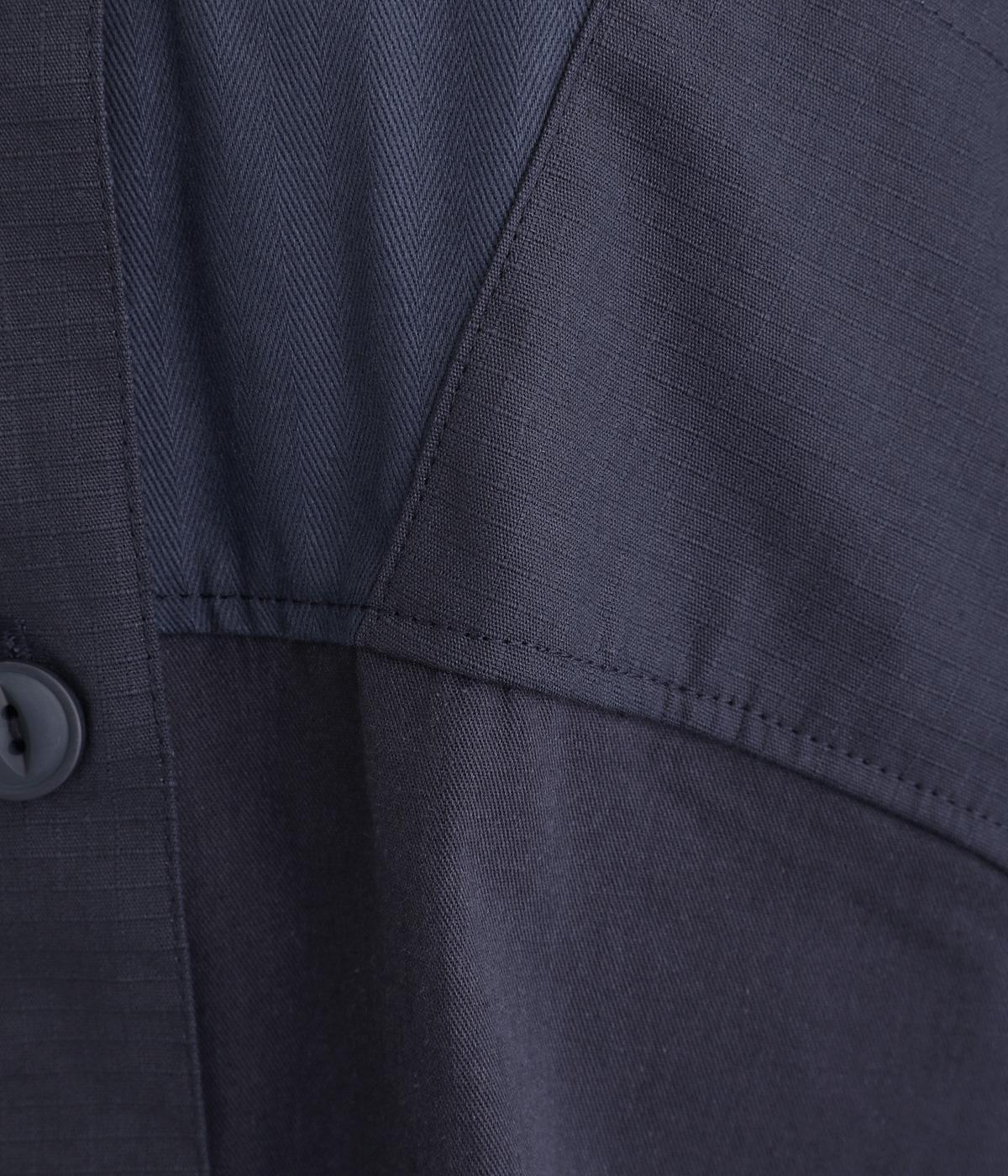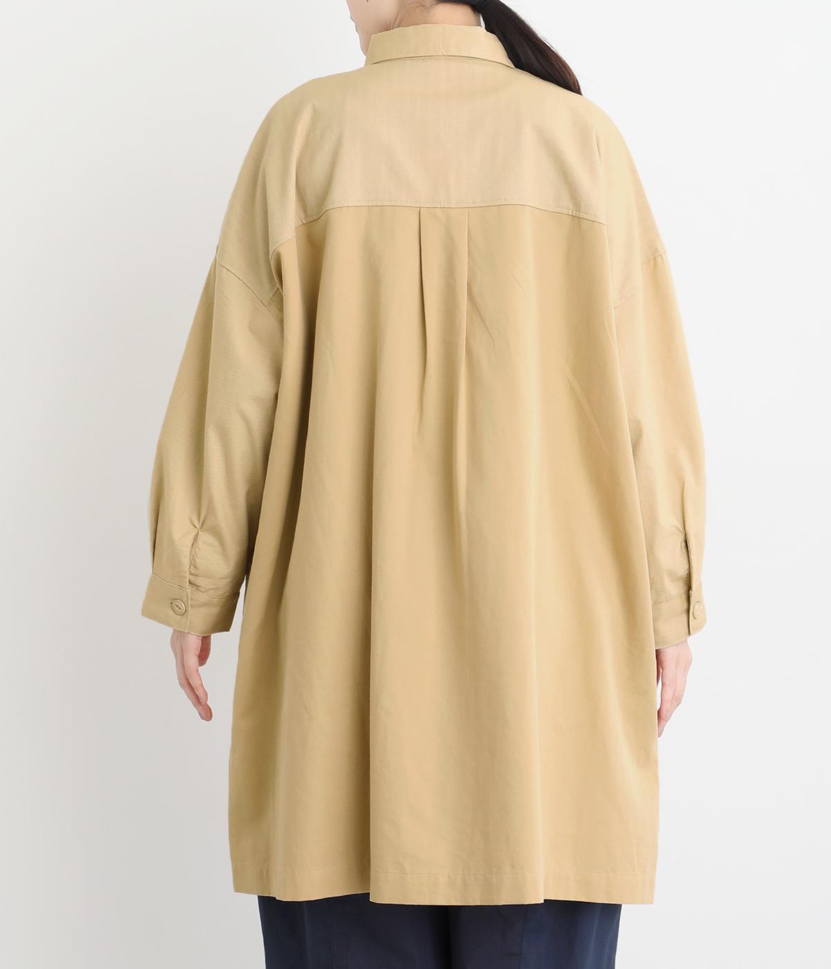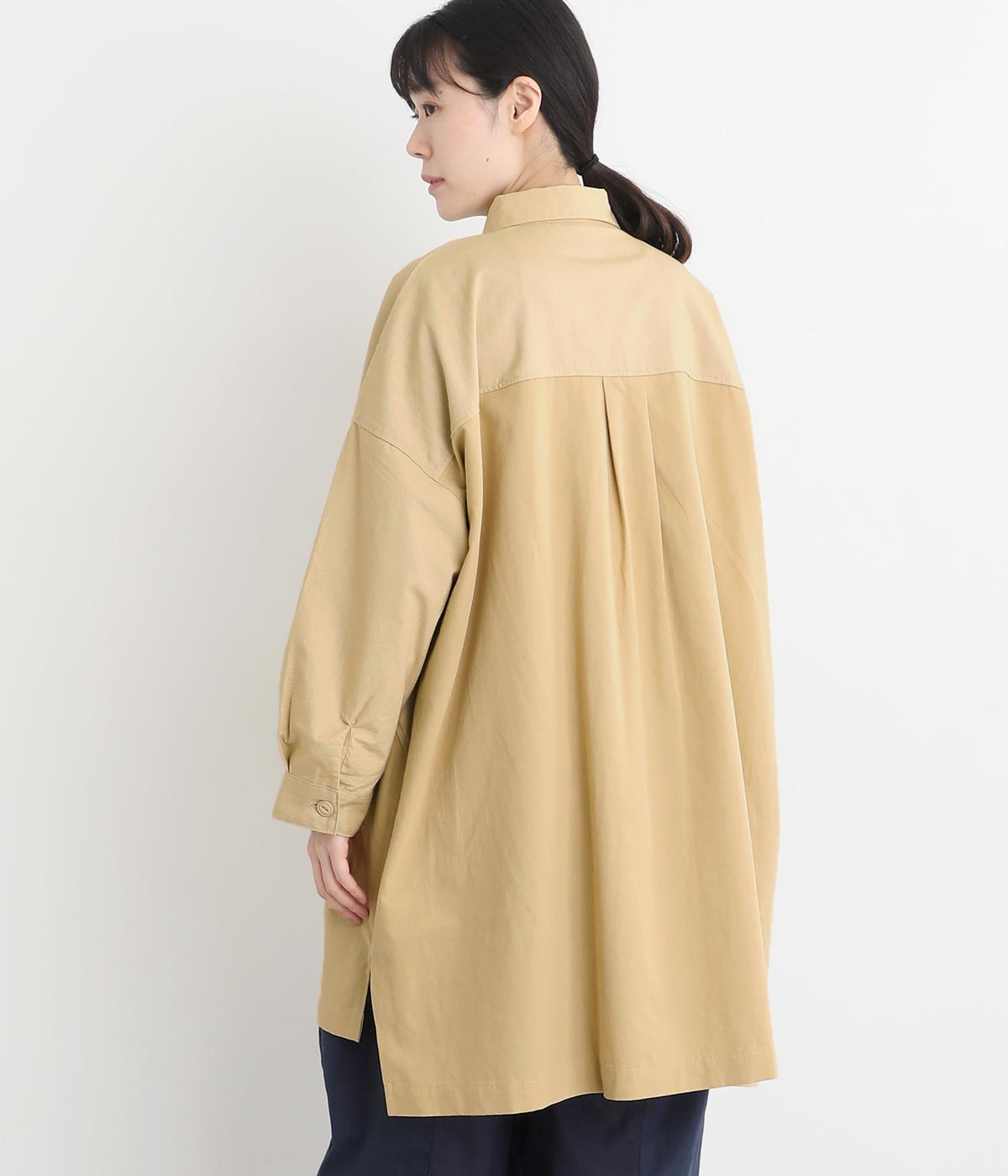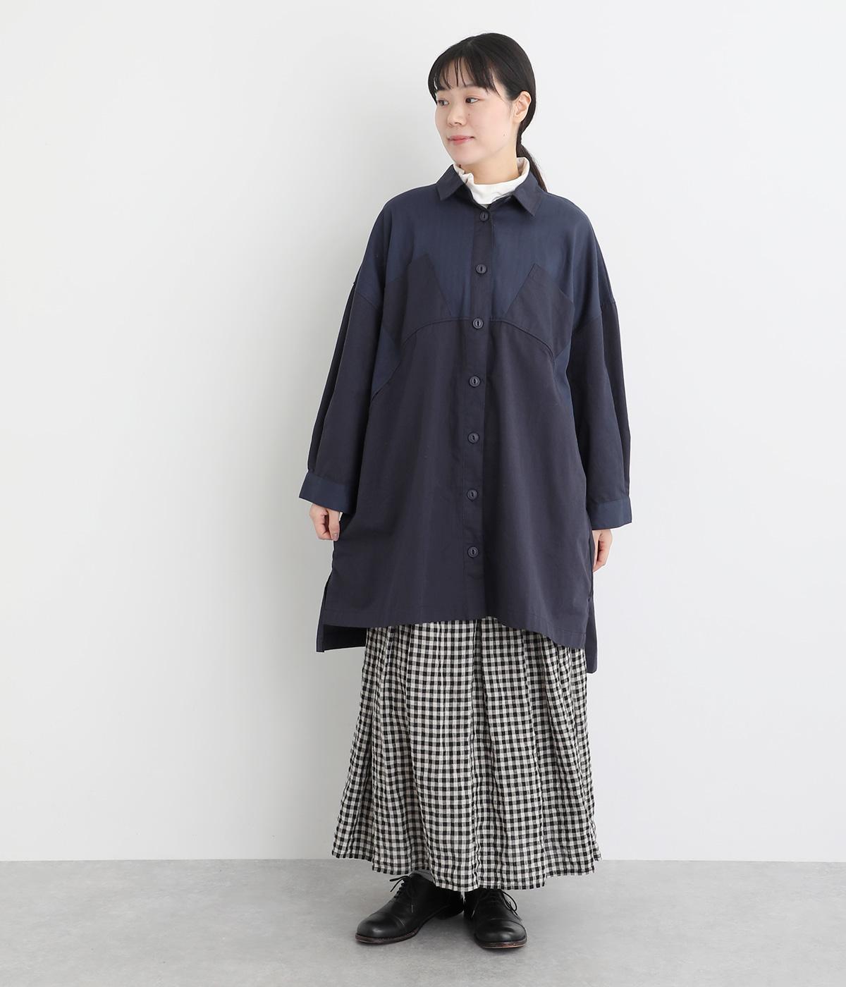 ワークテイストなシャツは羽織り使いもできるよう、オーバーサイズに仕上げました。異素材切り替えでさり気なく表情をつけつつ、同色系にまとめて大人な雰囲気に。曲線に沿ったポケットなど、ディテールに遊び心が感じられるデザインです。