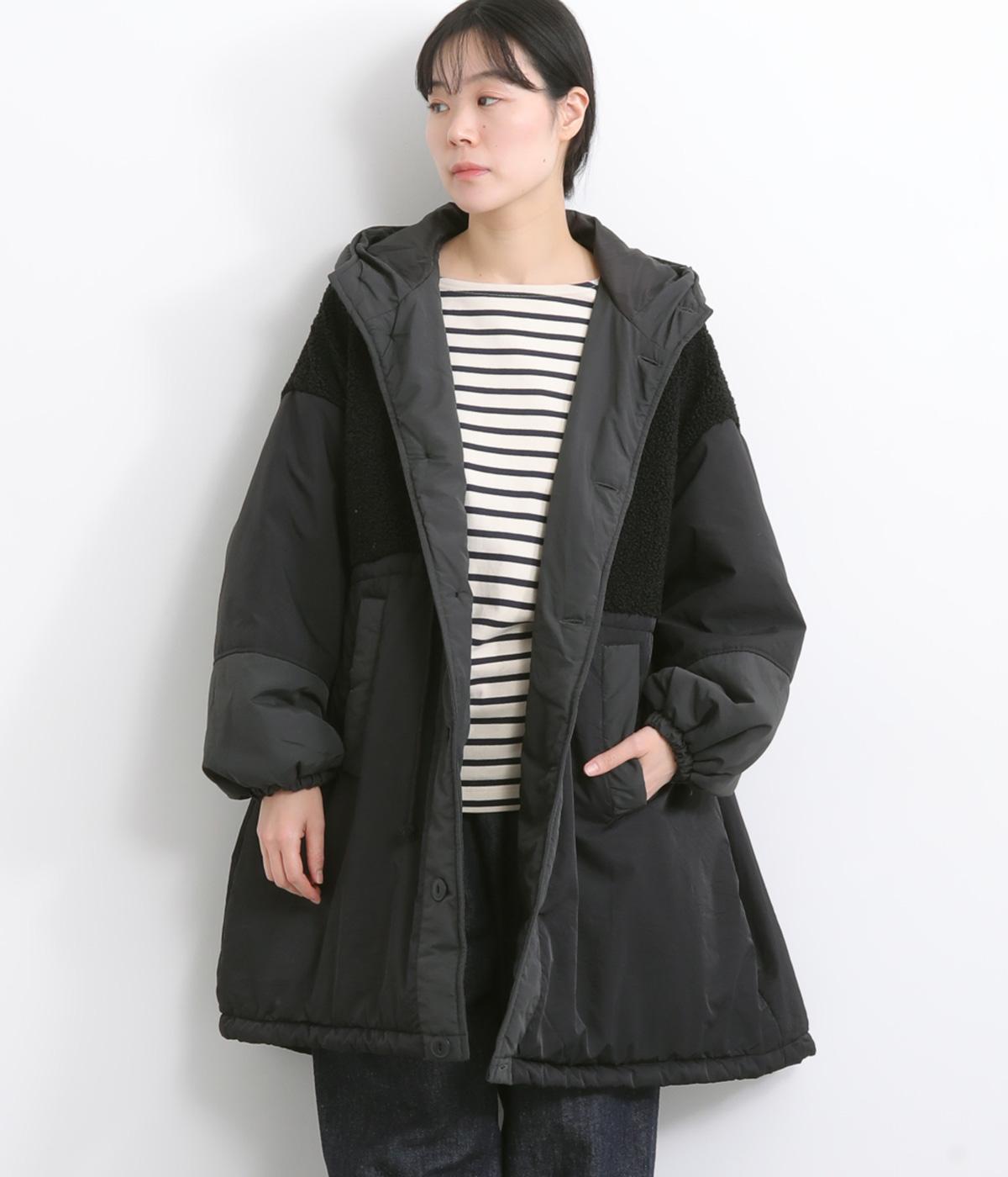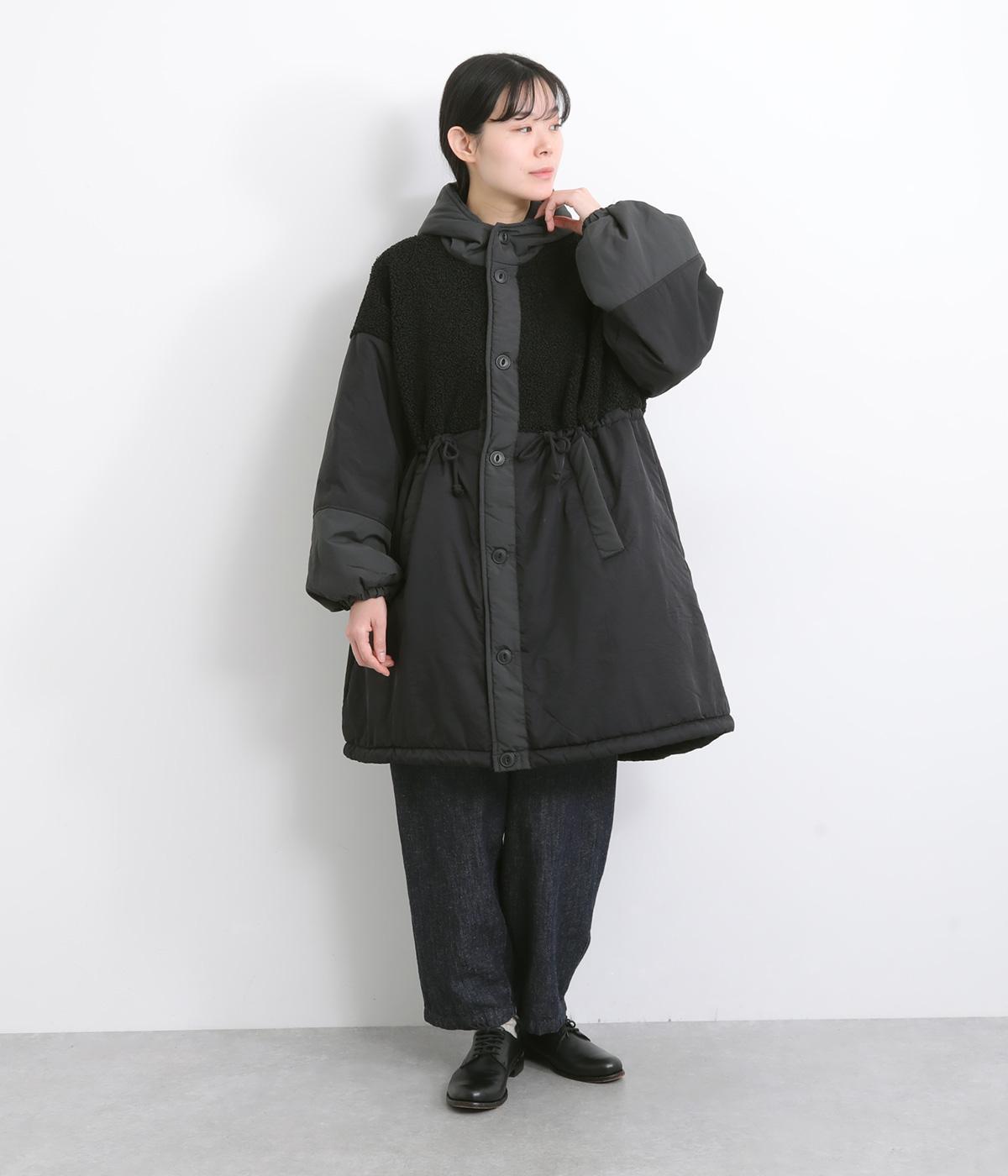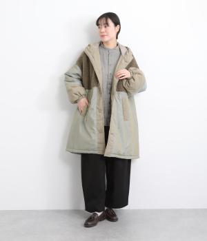 異素材をバランスよく配したデザイン性のあるモッズコートです。ウエストや裾のドロスト紐でシルエットの変化も楽しめます。軽やかな着心地と保温性を兼備し、スタイリングの主役になるアウターです。
