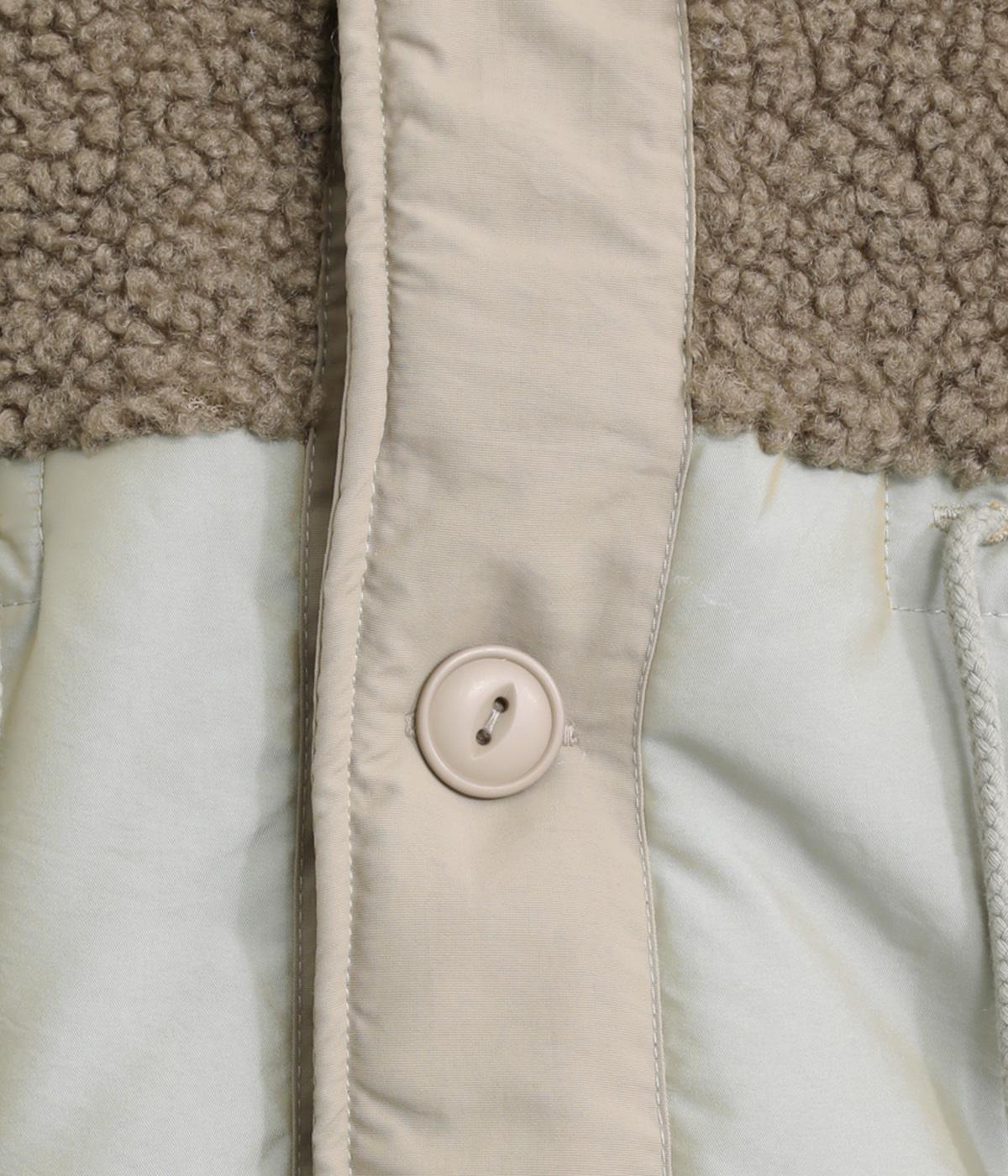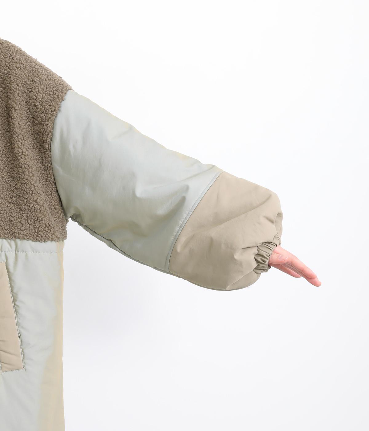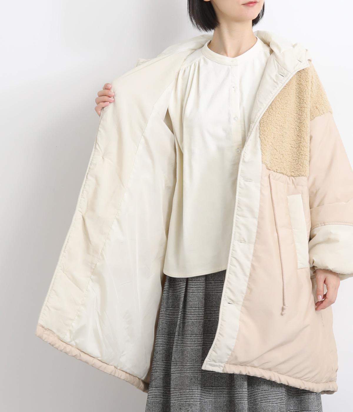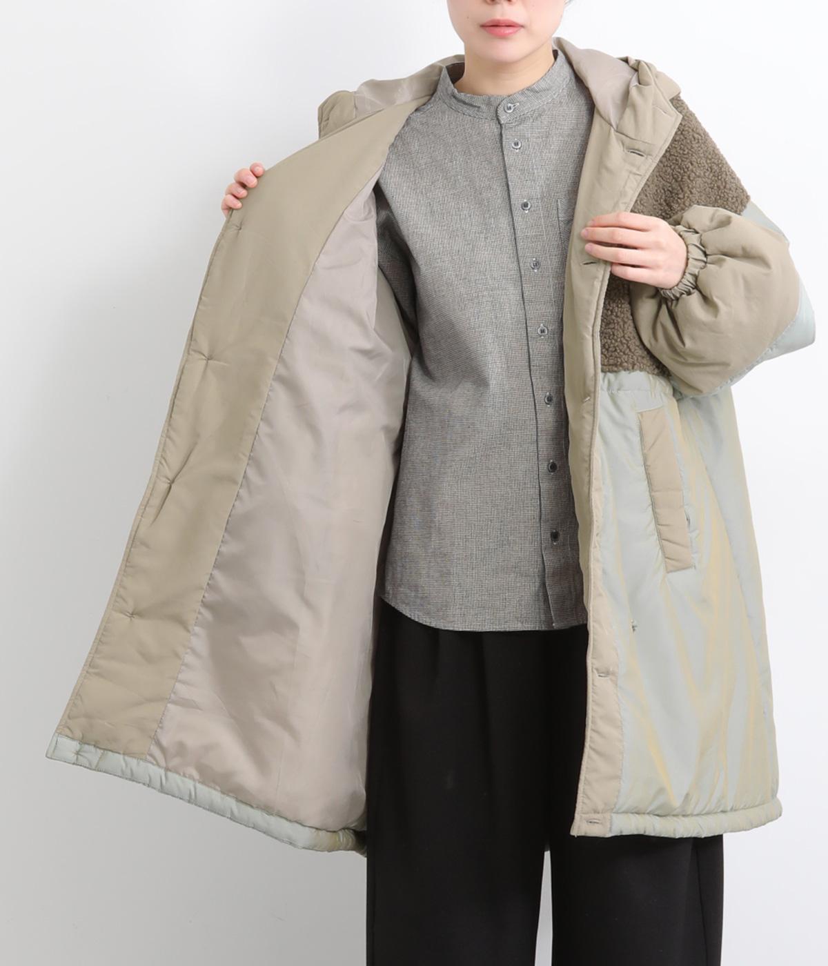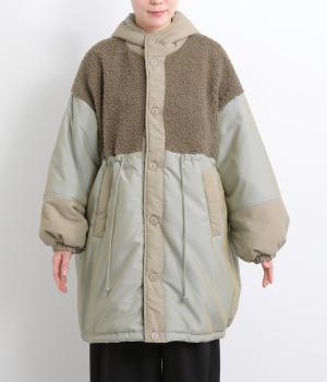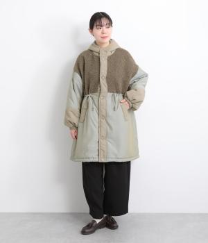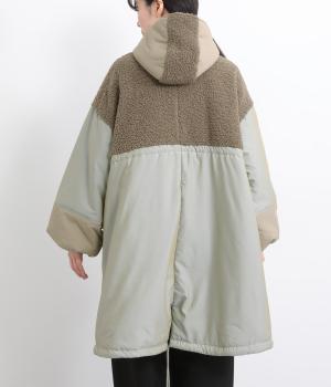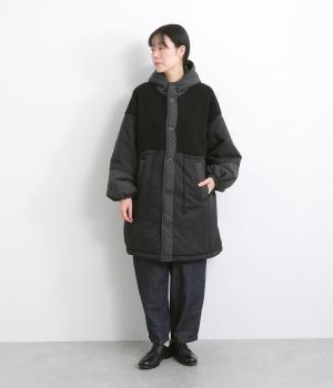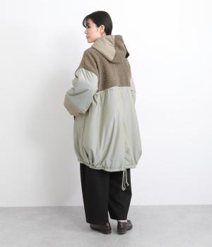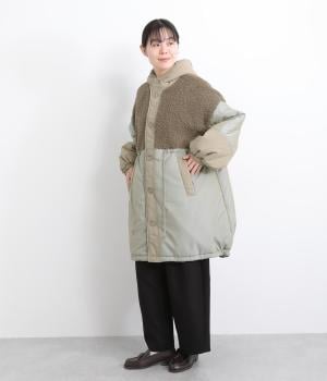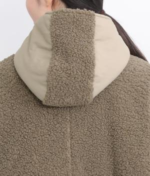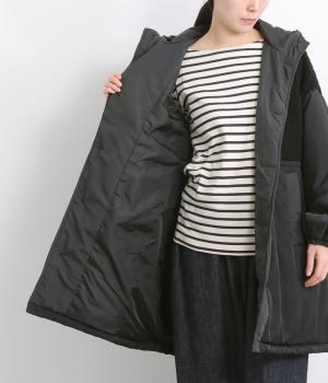 さまざまな表情のポリエステル素材にぽこぽことした表面感のボアをドッキングしました。ふわっと存在感がありながらも920gと軽やかに仕立てて羽織りやすさも確保。滑りのよいポリエステルの裏地付きです。