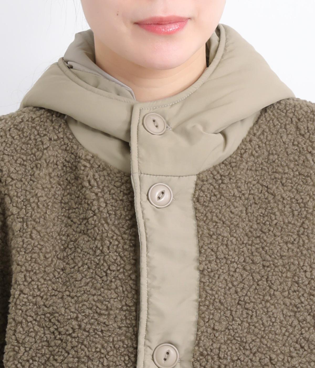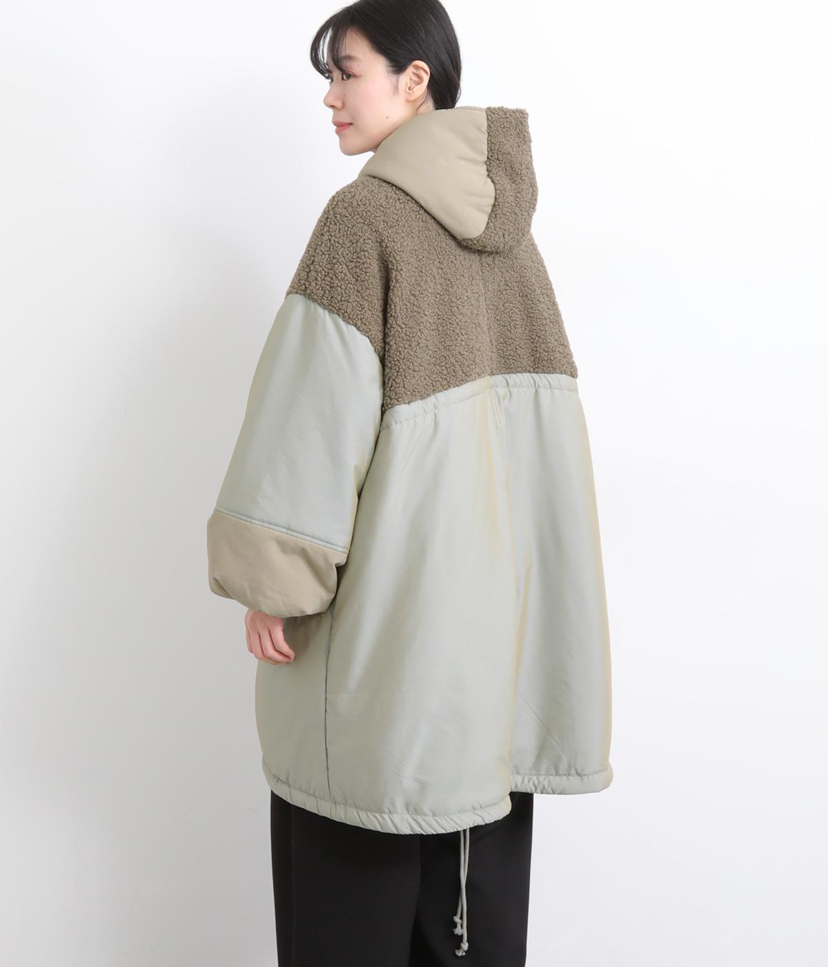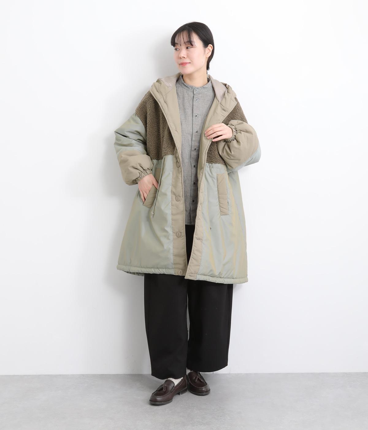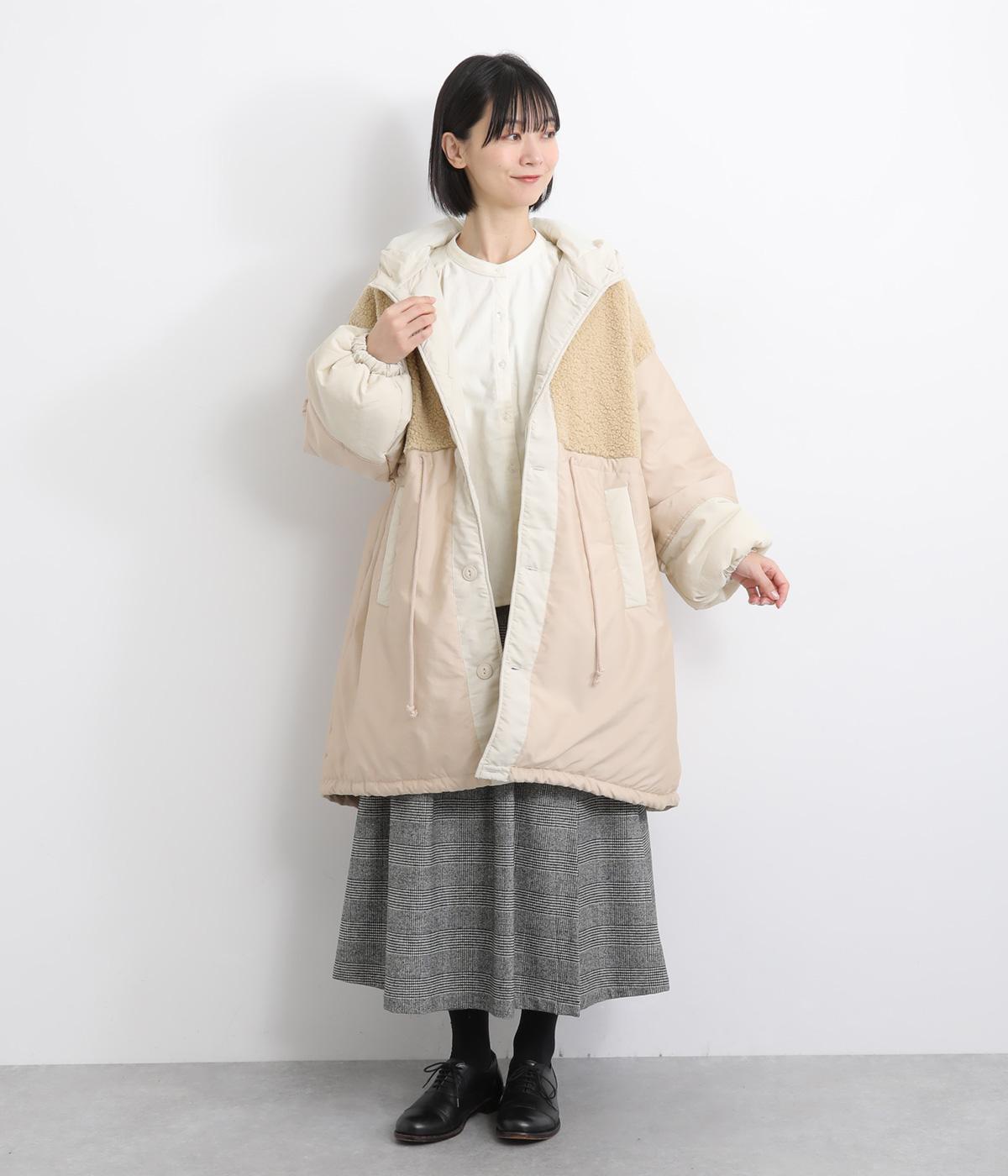 さまざまな表情のポリエステル素材にぽこぽことした表面感のボアをドッキングしました。ふわっと存在感がありながらも920gと軽やかに仕立てて羽織りやすさも確保。滑りのよいポリエステルの裏地付きです。