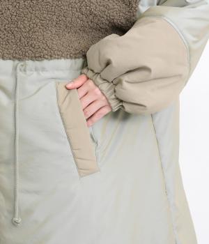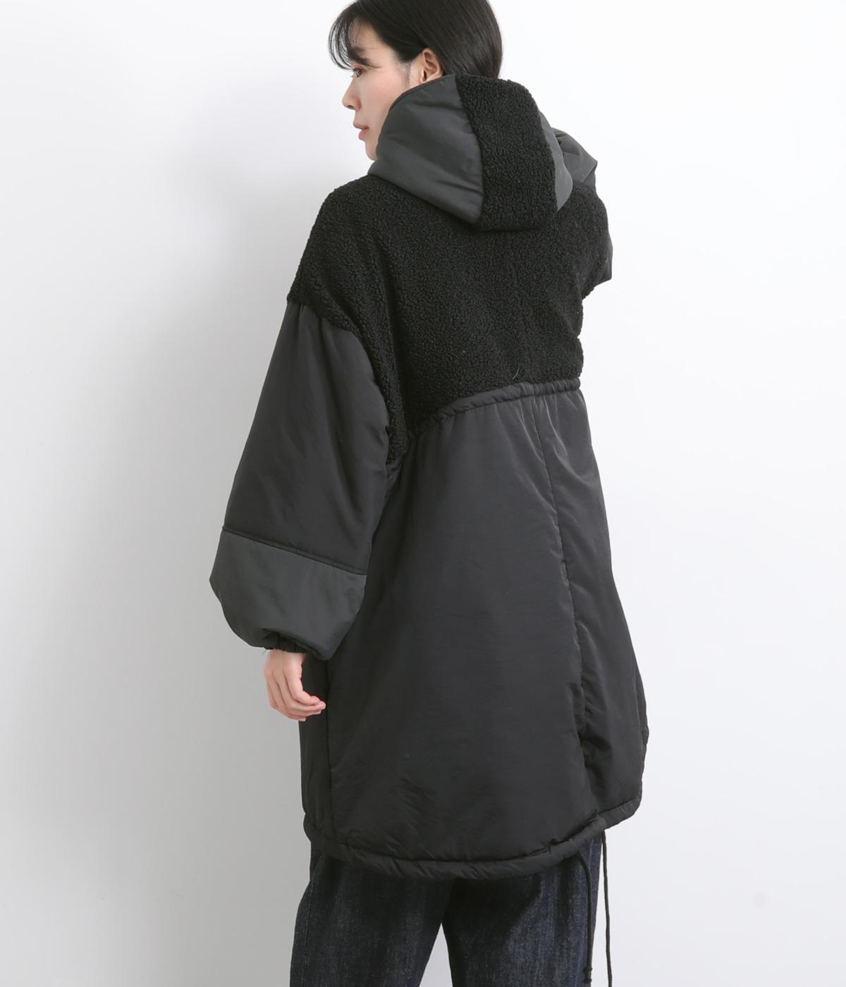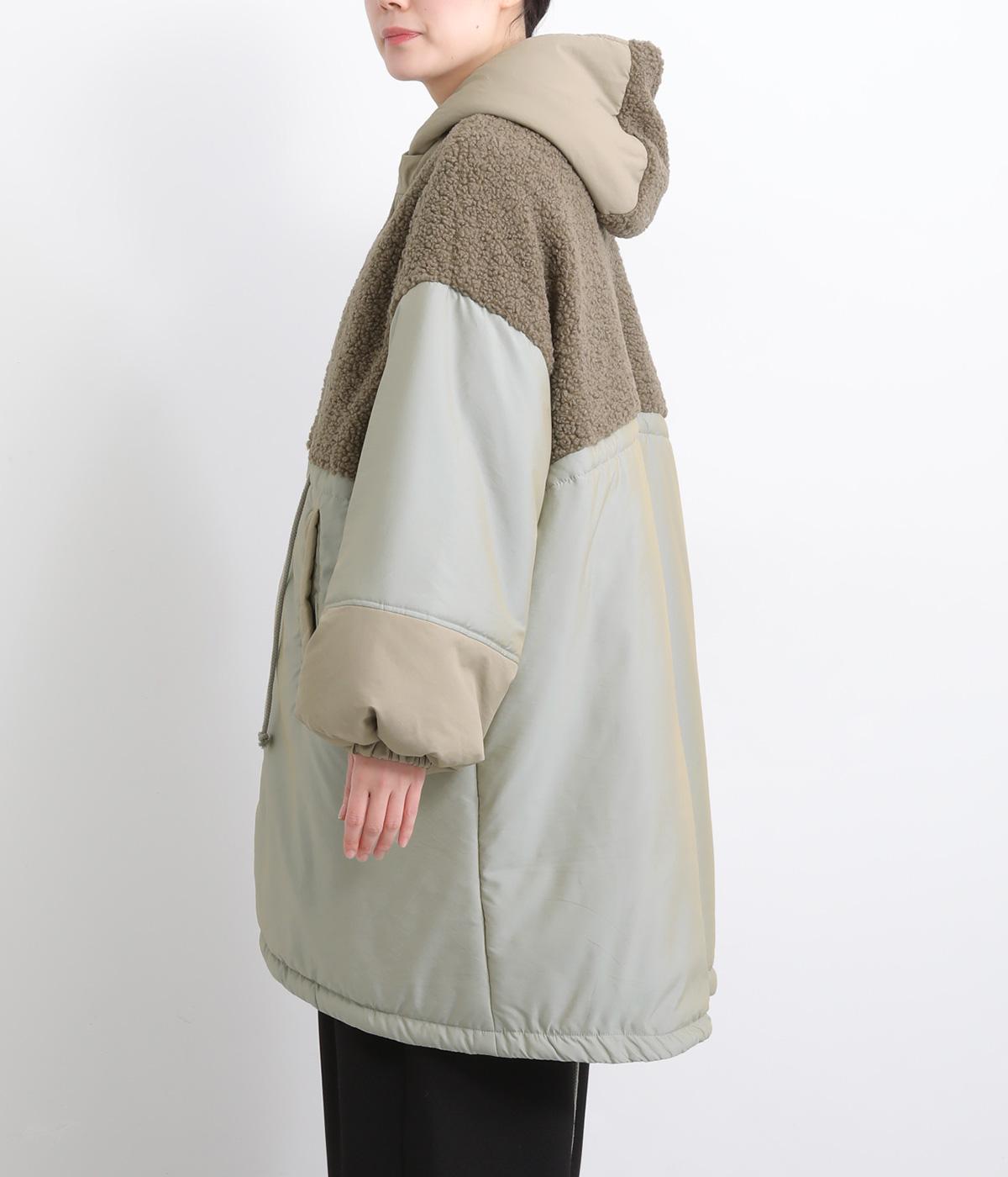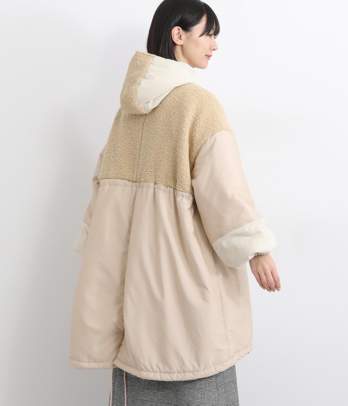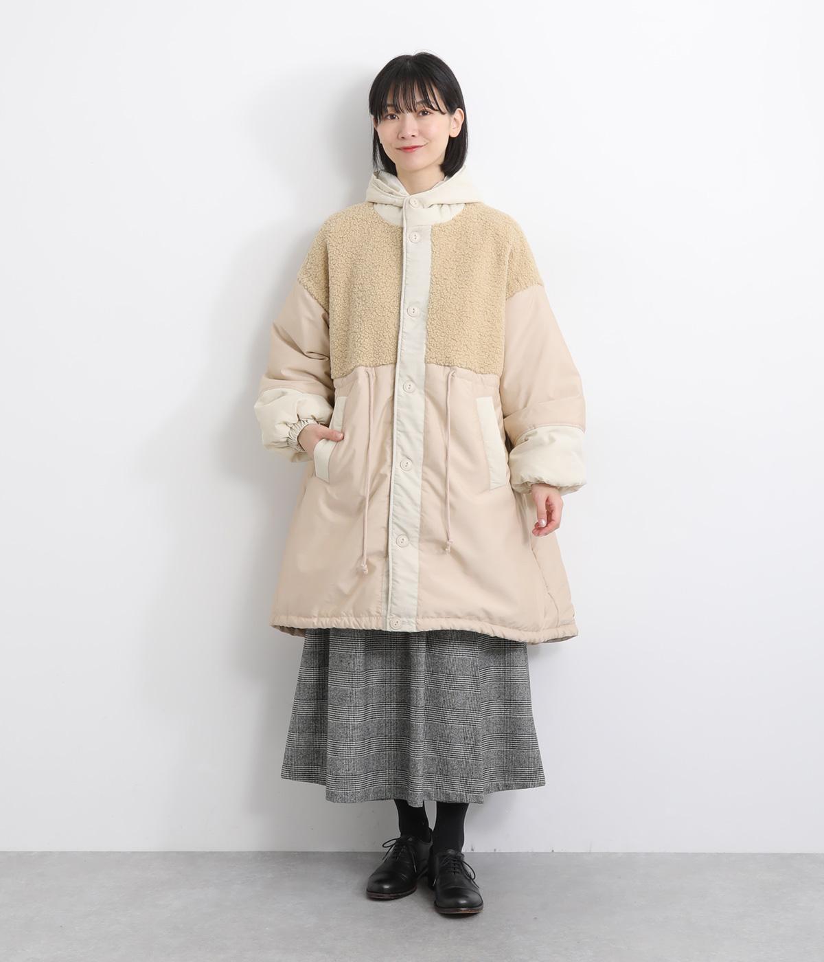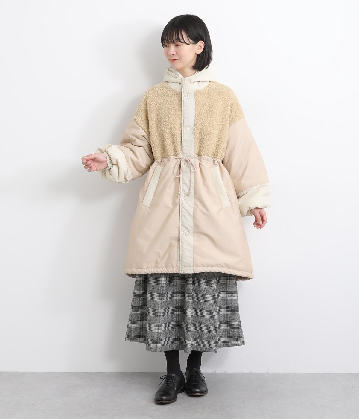 さまざまな表情のポリエステル素材にぽこぽことした表面感のボアをドッキングしました。ふわっと存在感がありながらも920gと軽やかに仕立てて羽織りやすさも確保。滑りのよいポリエステルの裏地付きです。