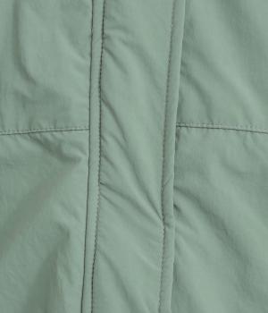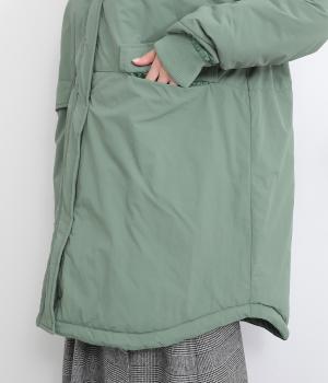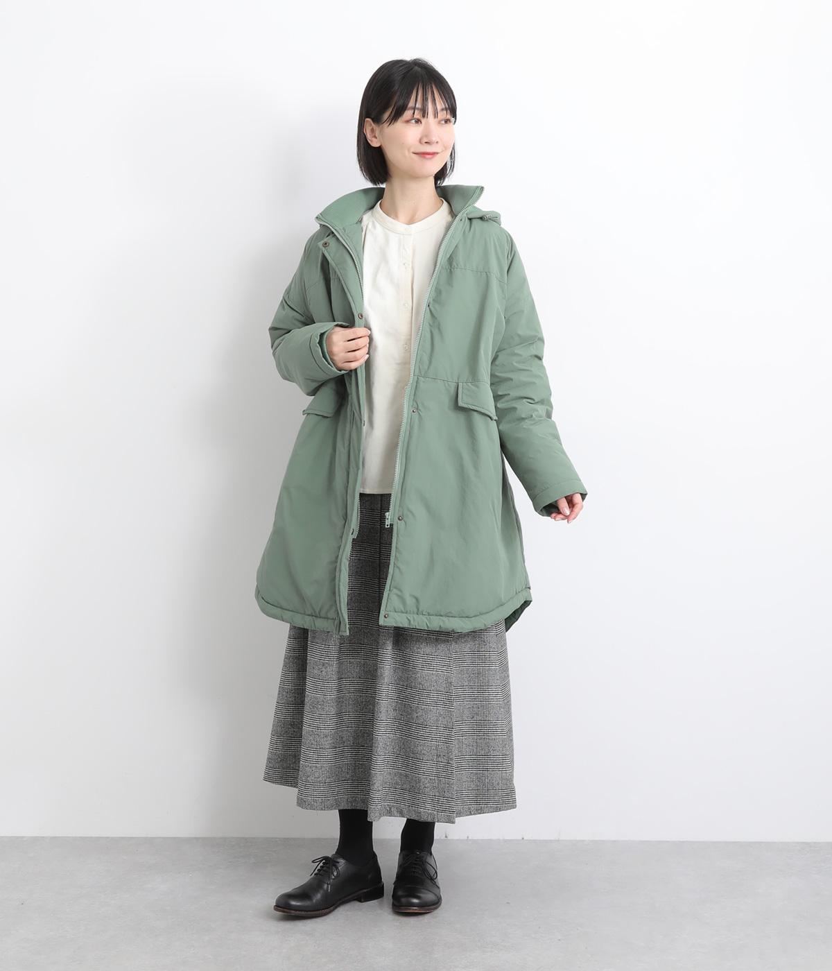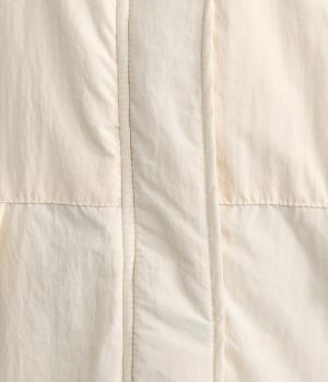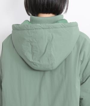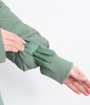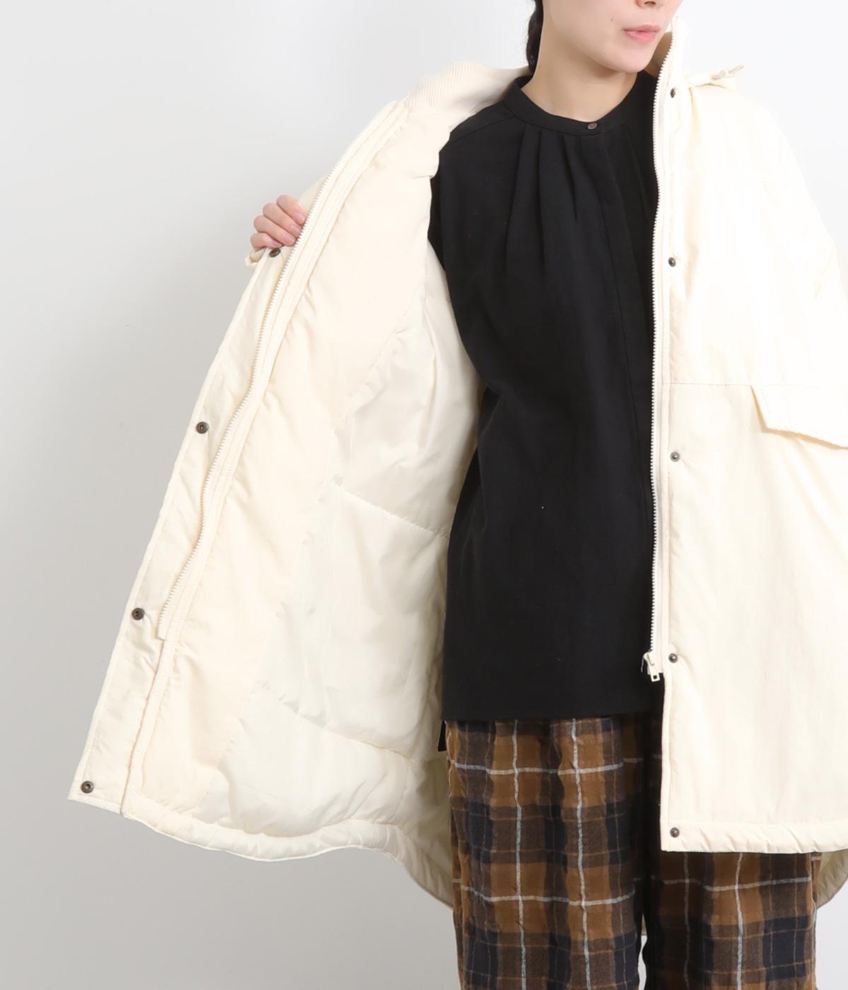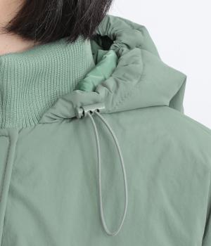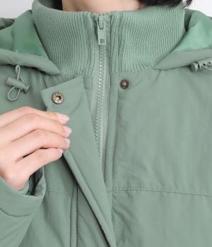 さらりとした表面のナイロン生地の袖口と裾にはリブを合わせました。中綿入りでふんわり暖かく、885gと軽量なのも魅力です。滑りのいいポリエステルの裏地付きです。