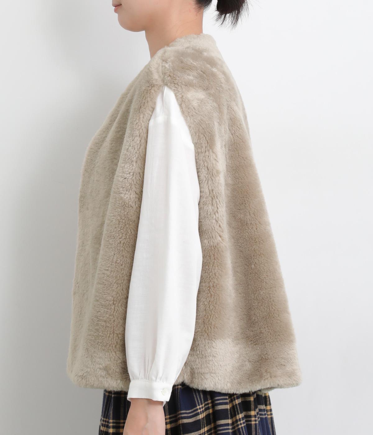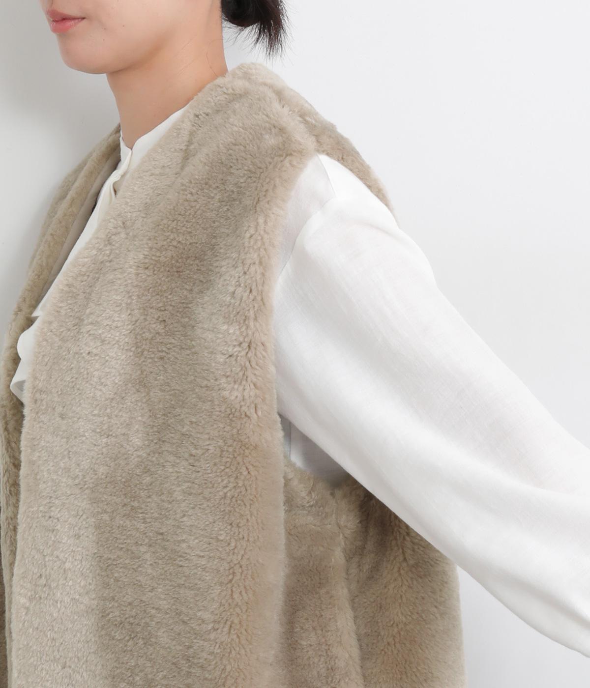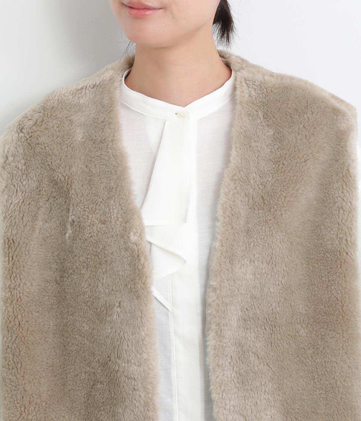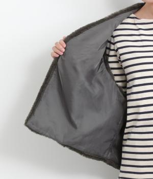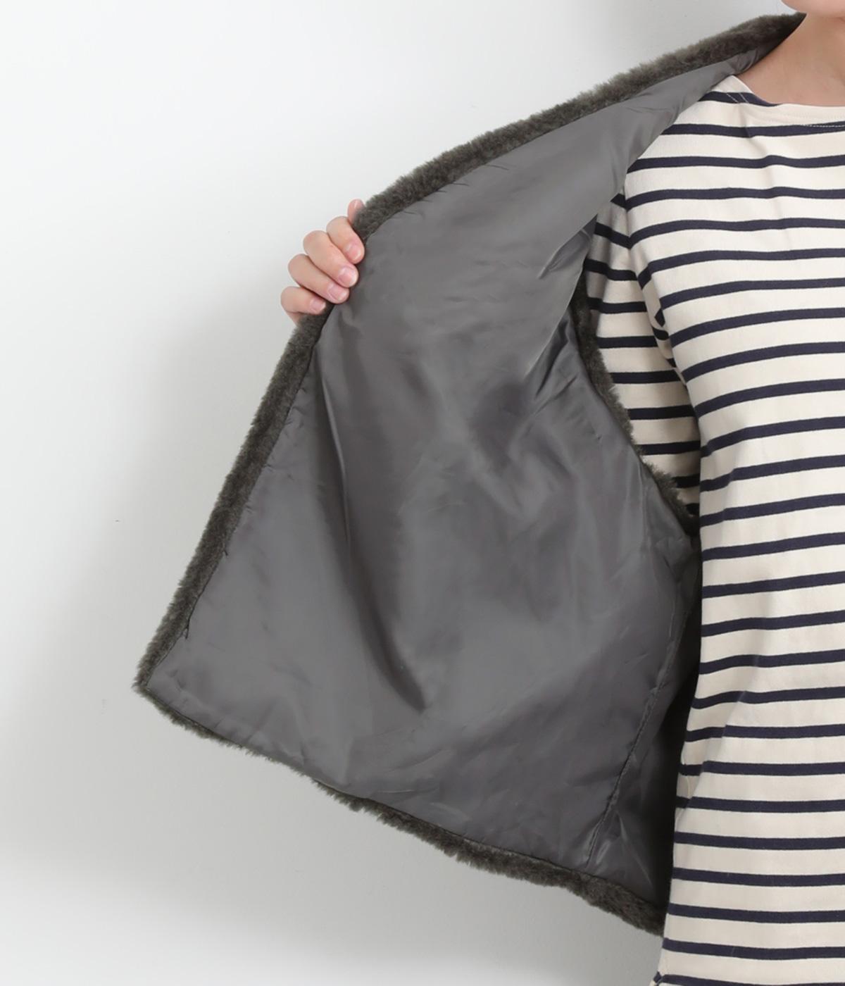 やわらかでふんわりとしたあたたかなタッチが特徴の短毛エコファーを贅沢にたっぷり使用しています。すべりのいい裏地でレイヤードしやすい仕立てに。