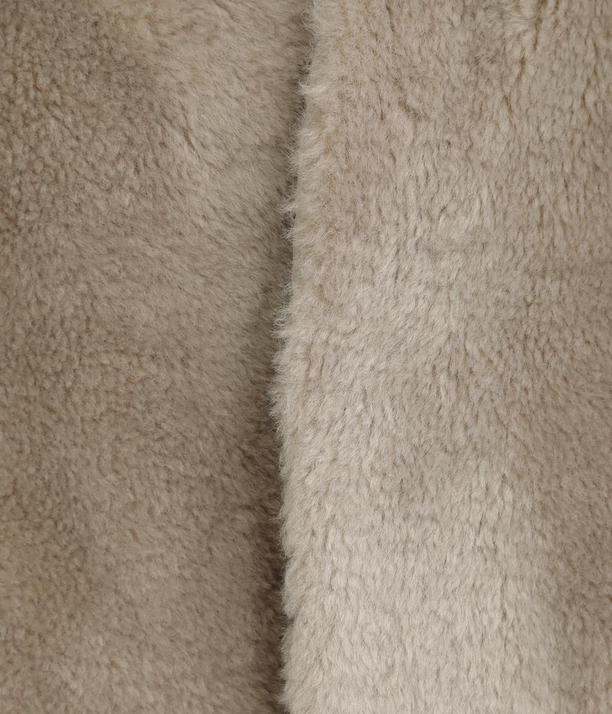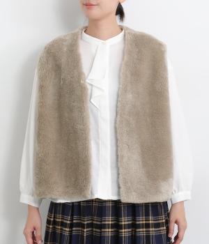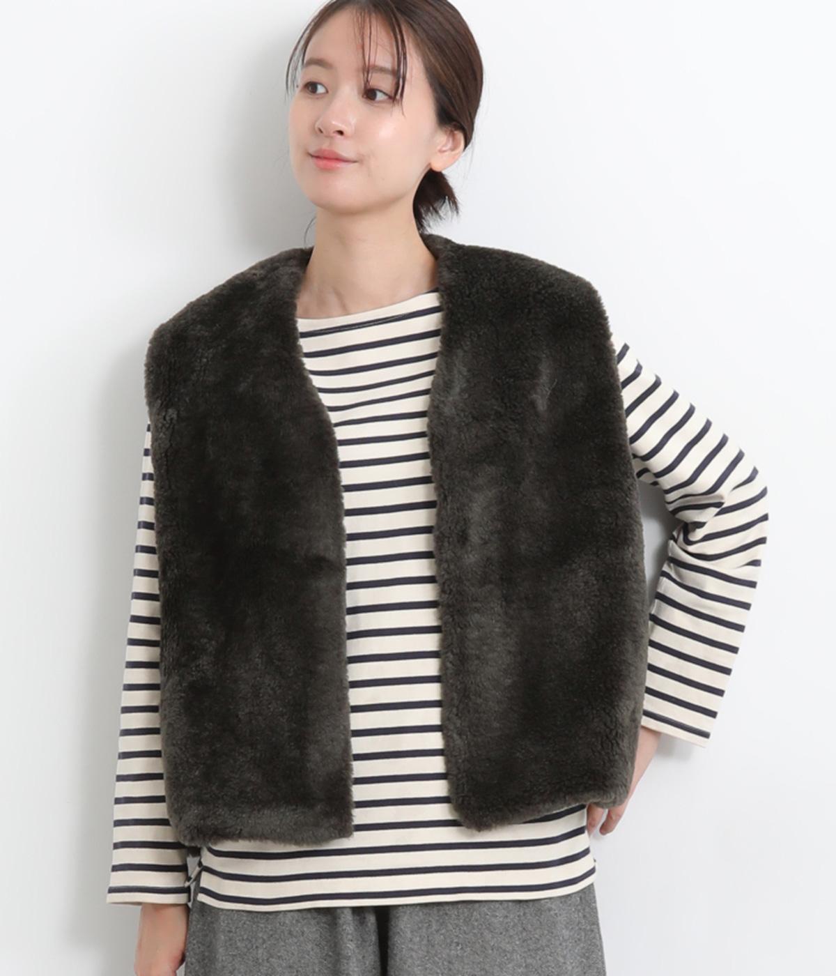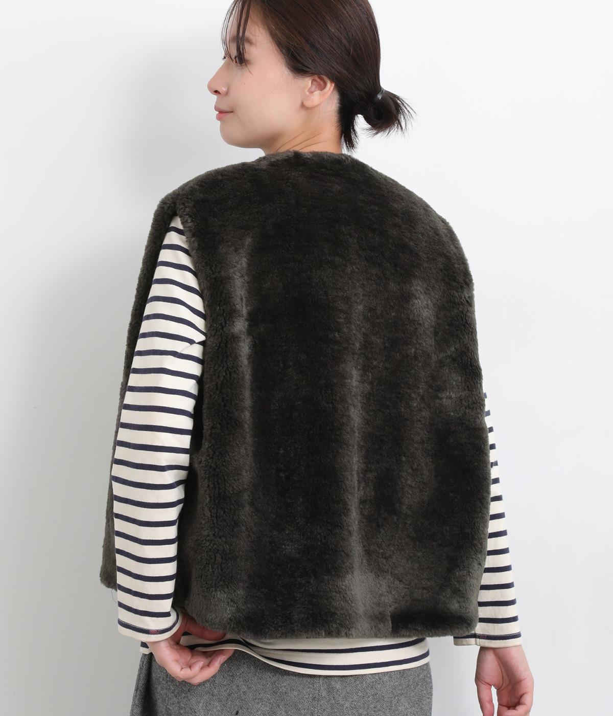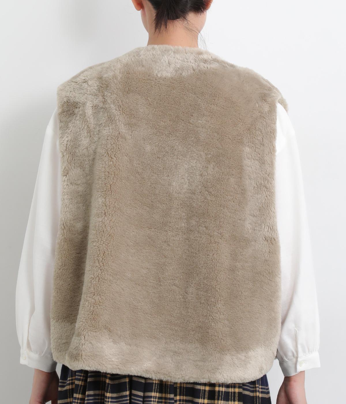 やわらかでふんわりとしたあたたかなタッチが特徴の短毛エコファーを贅沢にたっぷり使用しています。すべりのいい裏地でレイヤードしやすい仕立てに。