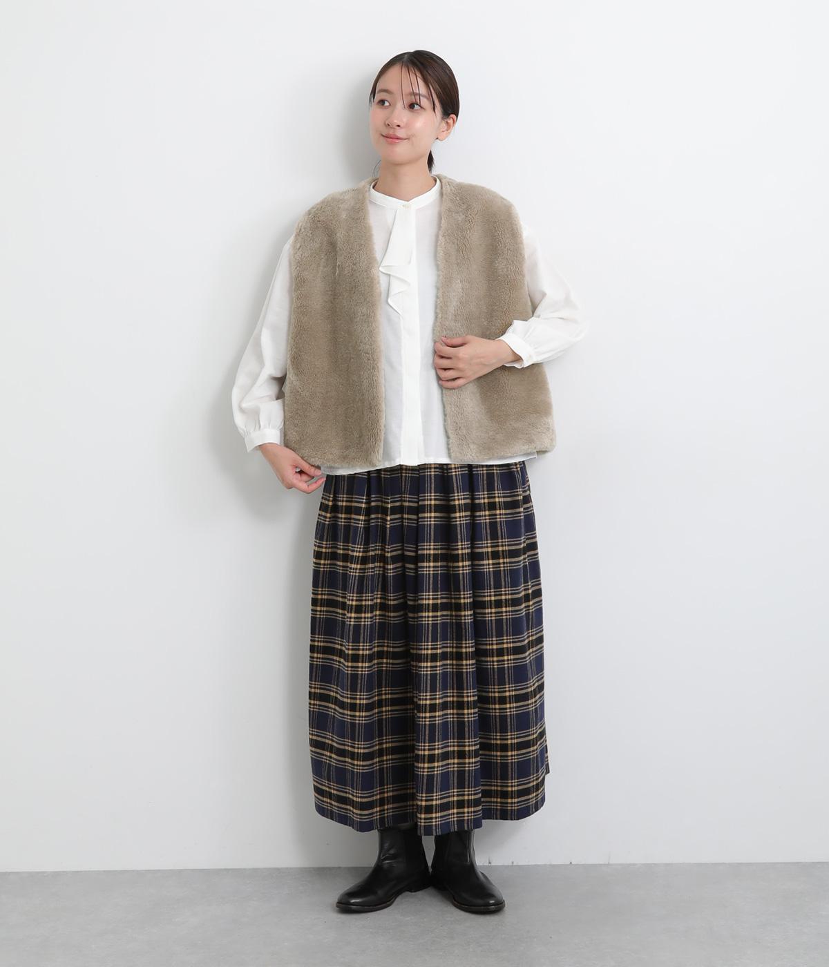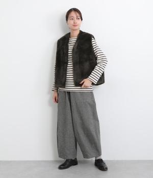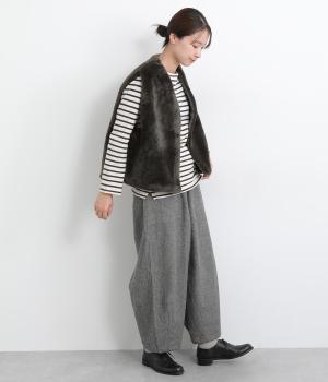いつものスタイリングも一気に新鮮に見せてくれるフェイクファーベスト。前を留めないラフに羽織れるデザインで、ワンピースや柄アイテムなど合わせるアイテムのデザインも惹き立ちます。便利なポケットつきも好ポイント。
