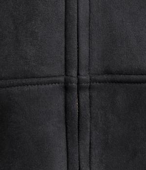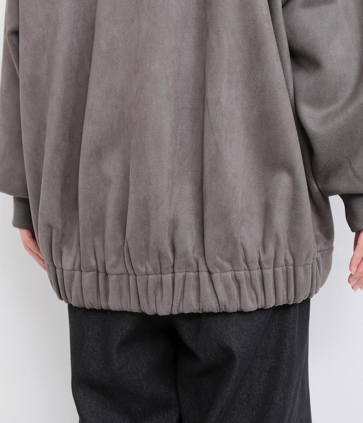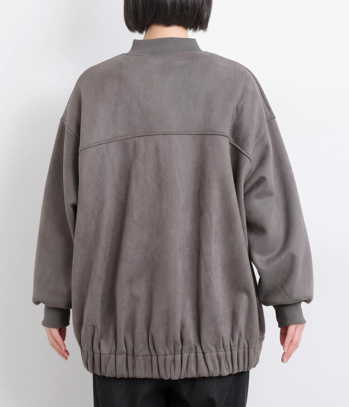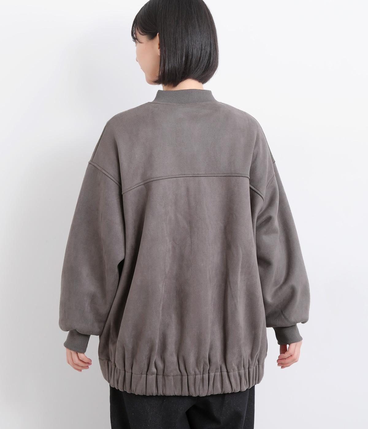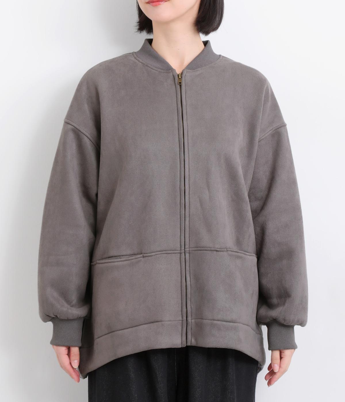 表側はフェイクスエードならではの微起毛がなめらかで、しっとりとした手ざわりが魅力。光の当たり方でやわらかな陰影が生まれ、上品な表情を見せます。裏地には、ふんわりとあたたかなフリースを重ねました。軽さもありつつほどよいハリで、シルエットがきれいにきまる素材です。