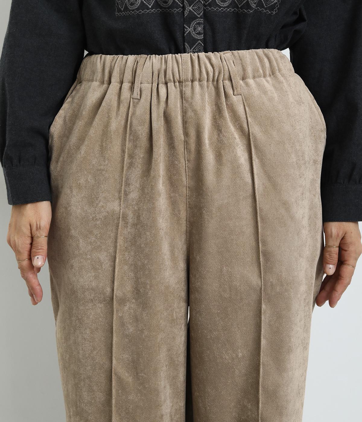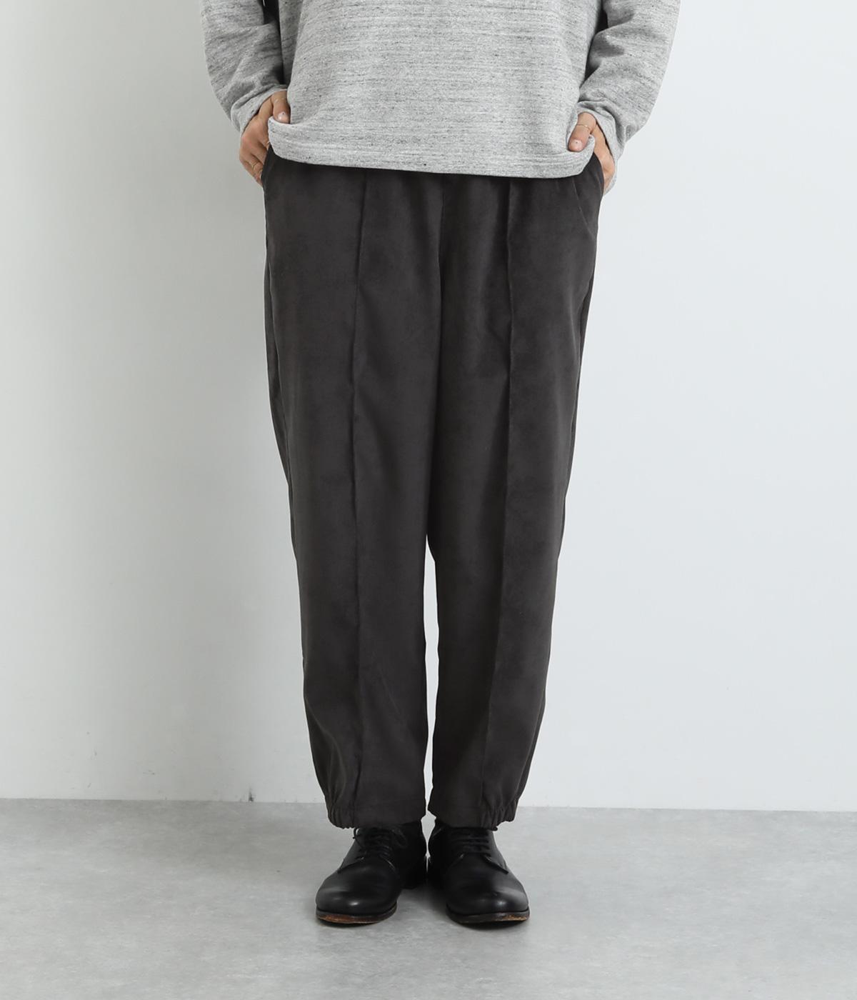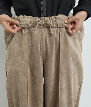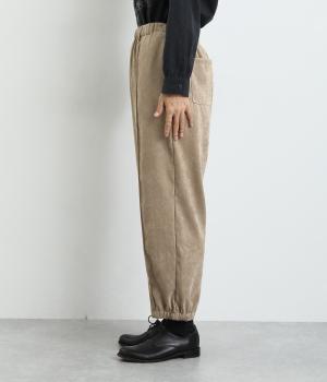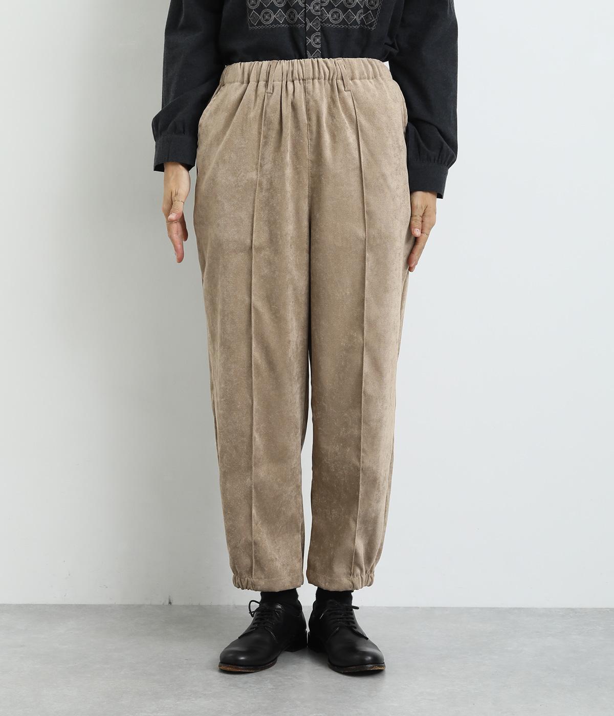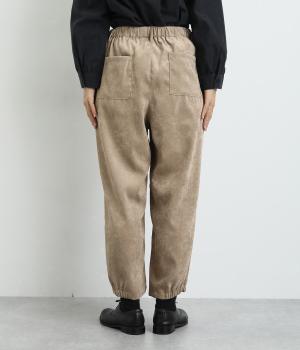 すっきり見えするセンターラインに裾の部分ゴムが特徴的なジョガーパンツ。はき心地はリラクシーながらも、スタイリングしやすいシルエットにこだわり、こなれ感ある表情が大人な仕上がり。ウエストは総ゴムに内紐をつけたストレスのないデザインに。