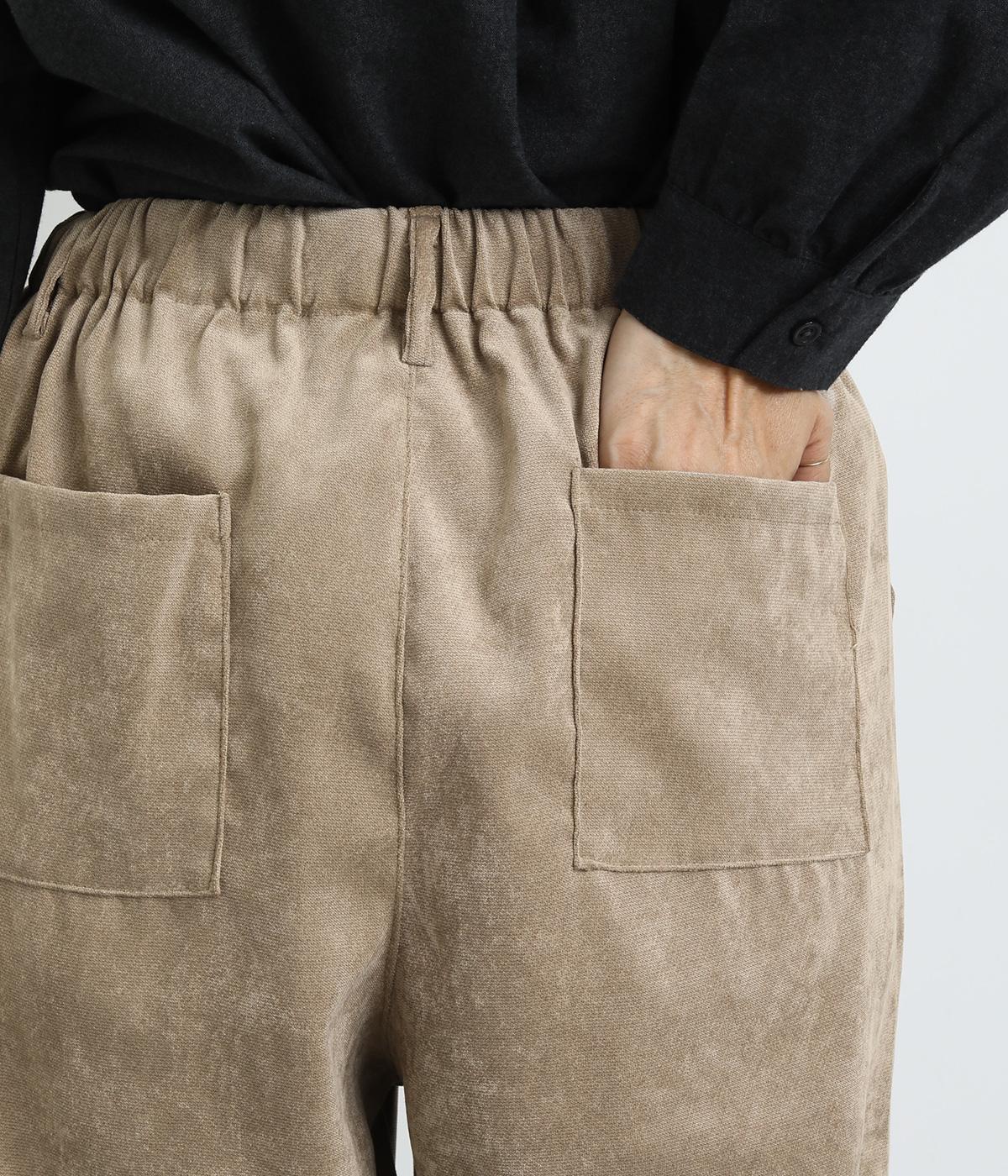 品のいい光沢感に横畝が特徴的な混紡生地を使用しています。ほのかに伸びるやわらかな生地感ではき心地も◎。重厚感はありながらも、肉厚すぎずデイリー使いできます。