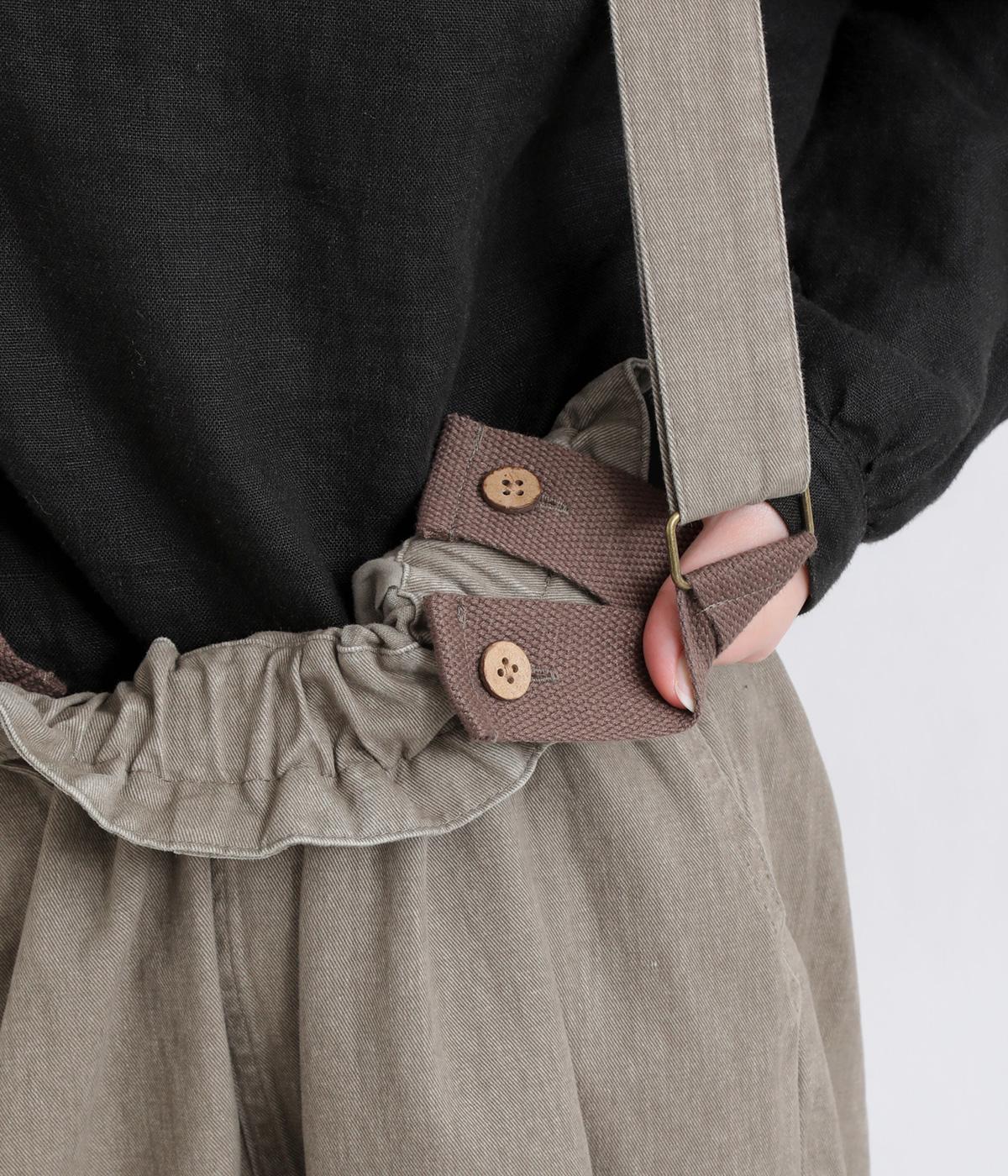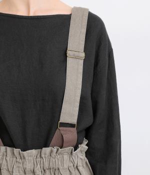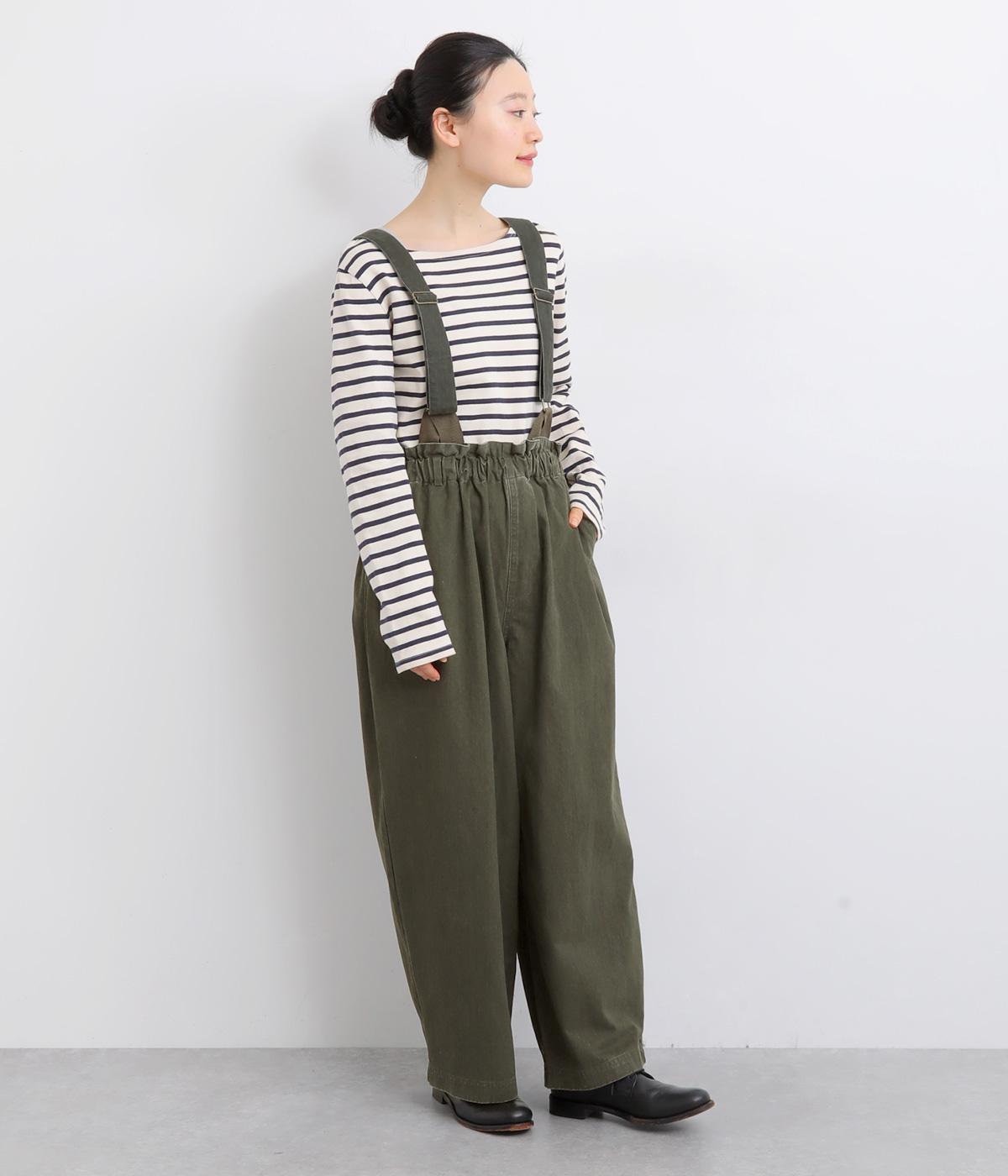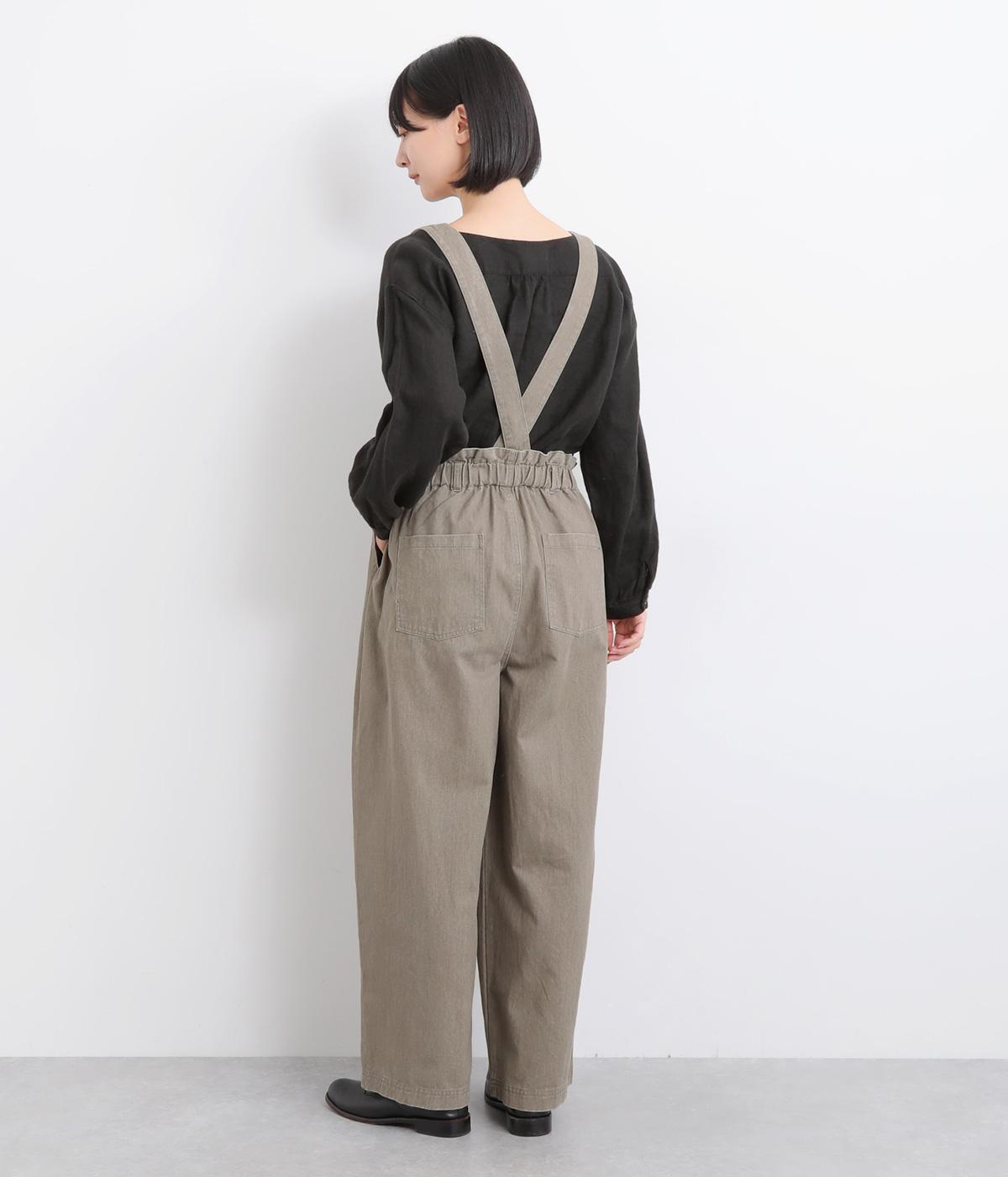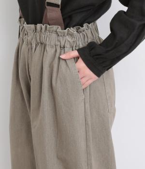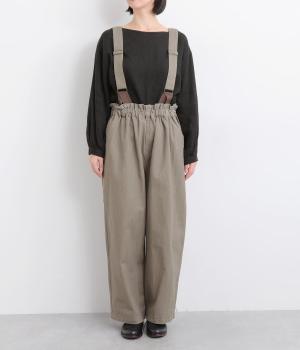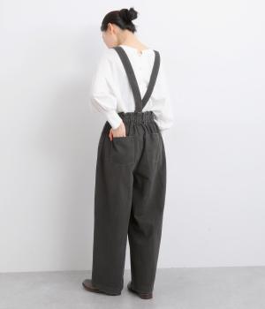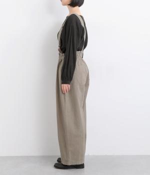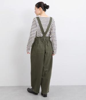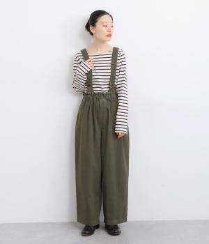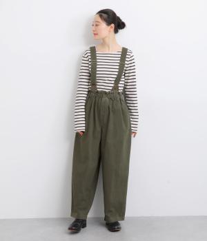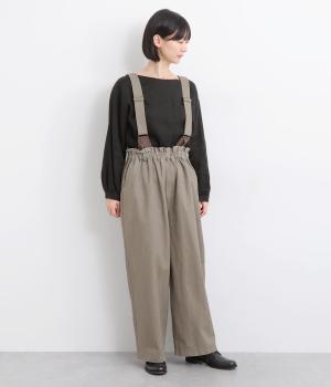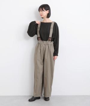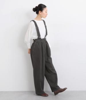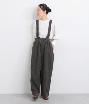 取り外し可能なサスペンダーつきで、シーンに合わせたアレンジがたのしめるパンツです。サスペンダーをつければカジュアルに、はずせばすっきりと大人っぽいスタイルに変化します。ほどよくボリュームを持たせたシルエットが自然な立体感を生み、さまざまなトップスとバランスよく合わせられる優秀なアイテムです。