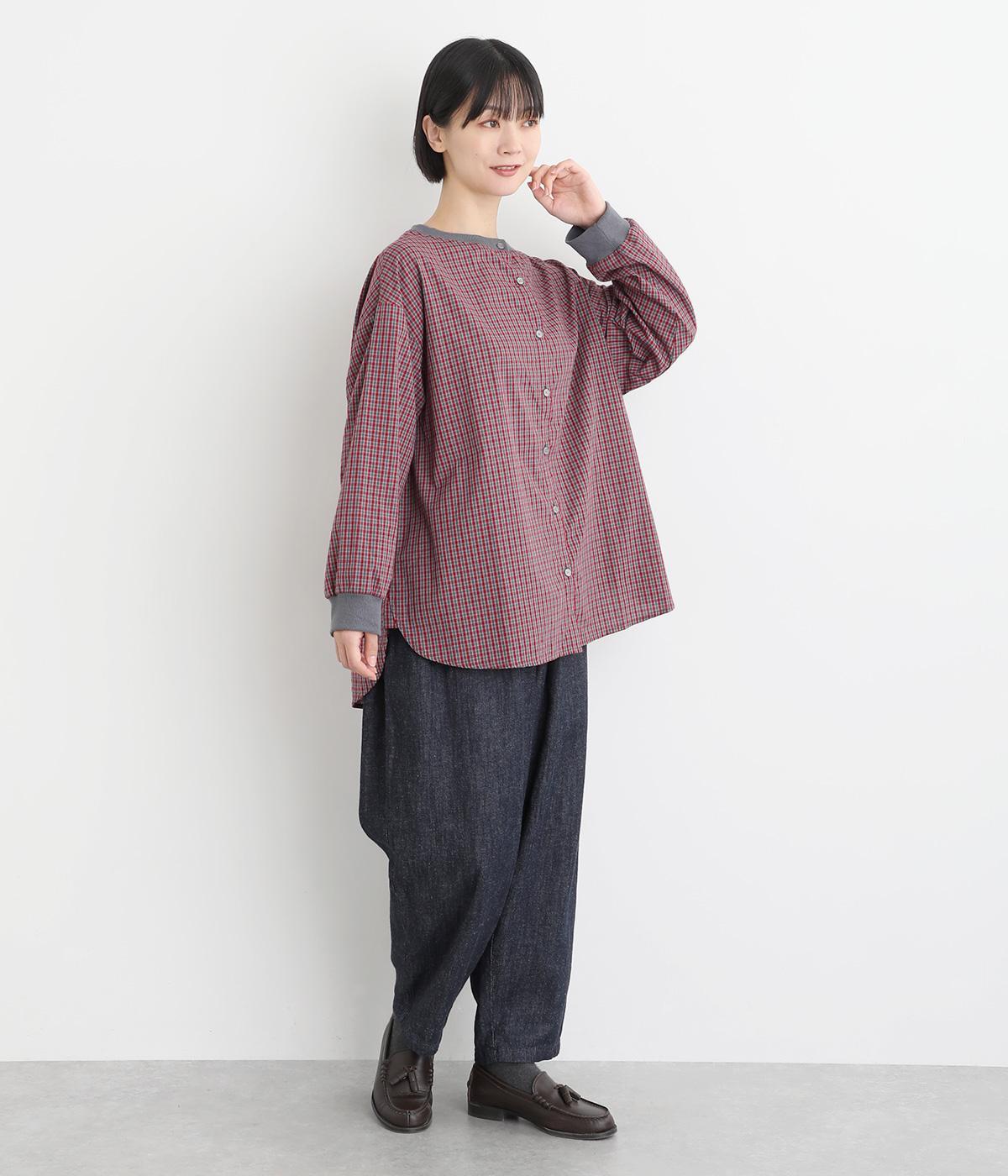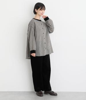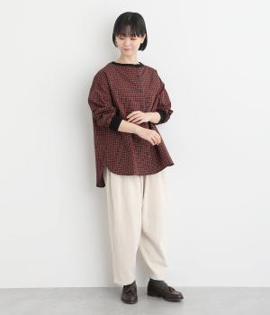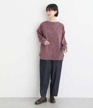適度にハリのあるコットン布帛生地で軽やかに仕上げました。布帛特有のすっきりとしてきちんとした印象に、チェック柄でカジュアルテイストな華やかさをプラス。