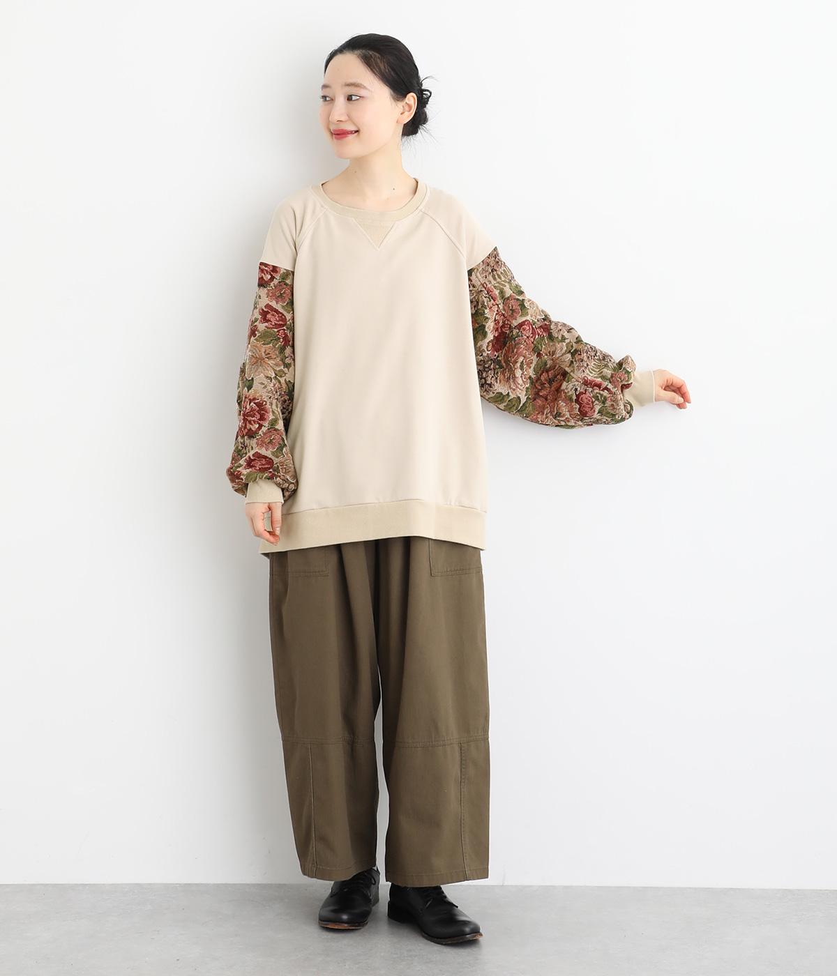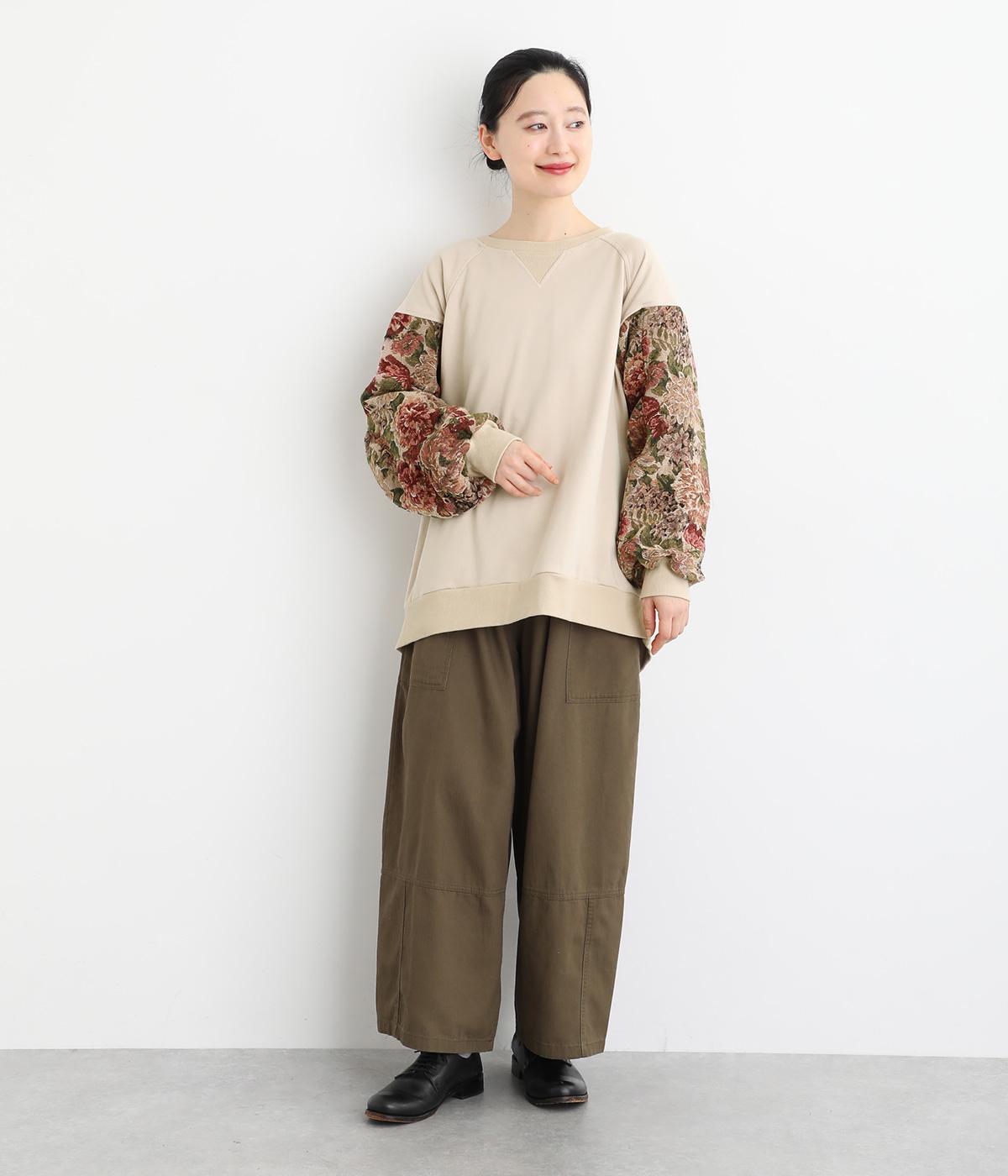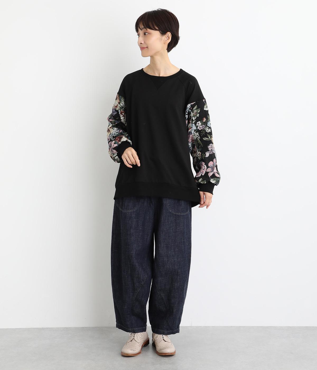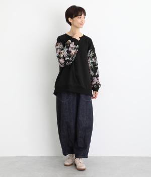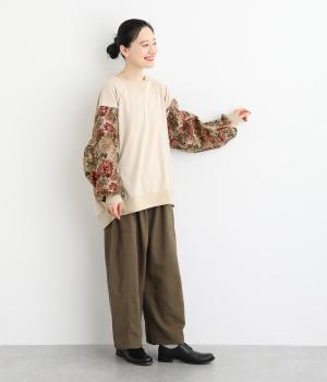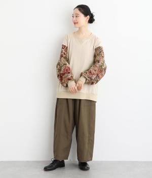 スリーブのドレッシーなデザインが目を引くプルオーバー。華やかで上品な雰囲気を演出し、カジュアルになりすぎない一着です。ワイドパンツやデニムとも合わせやすく、いつものワードローブに加えることで、毎日のコーディネートの幅を広げてくれます。