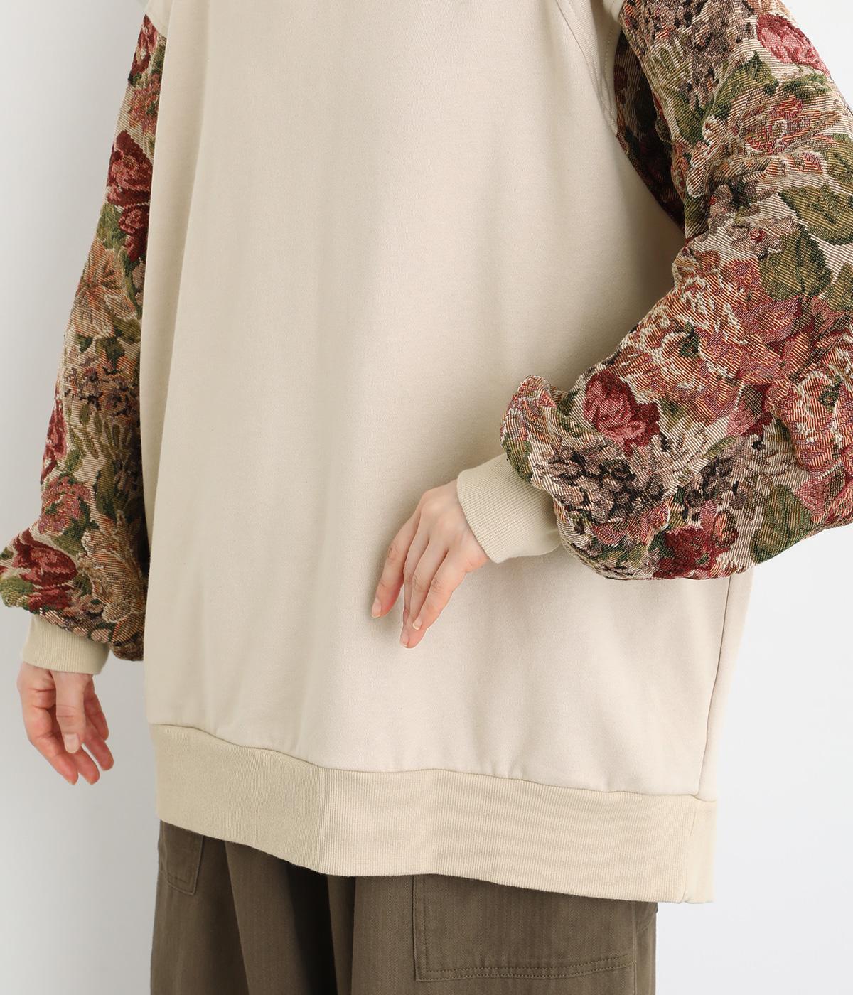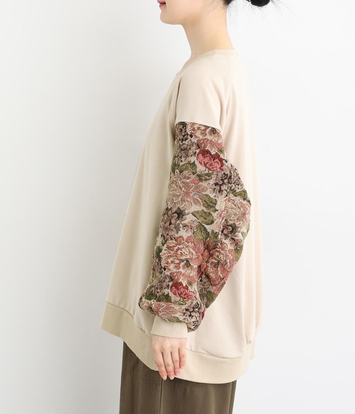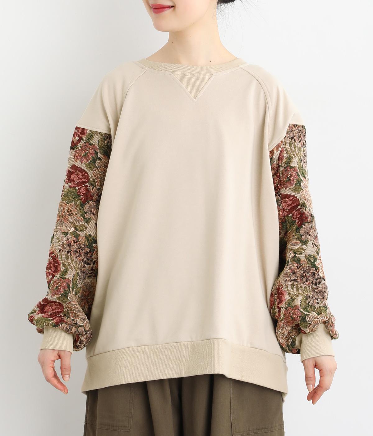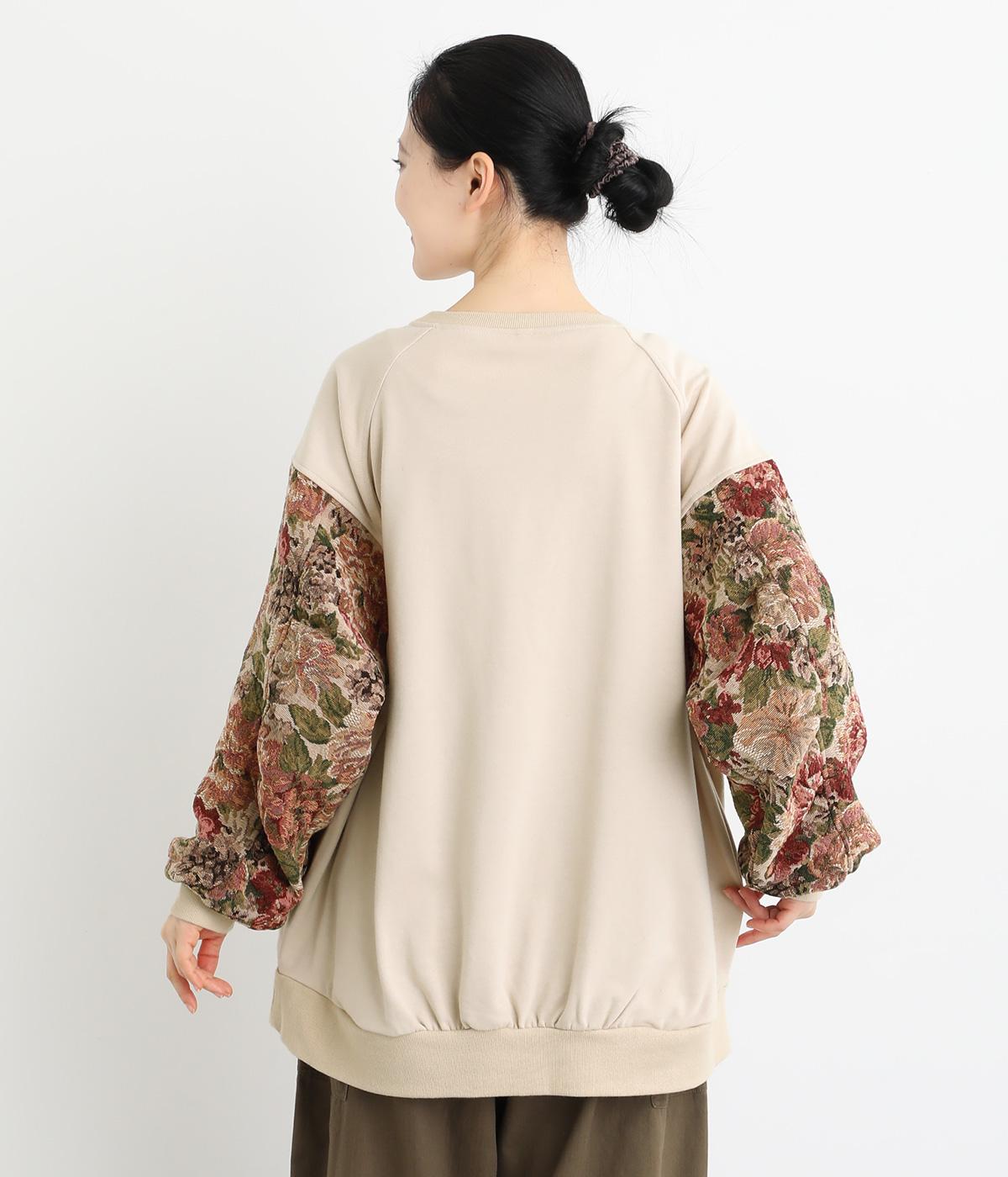 スリーブのドレッシーなデザインが目を引くプルオーバー。華やかで上品な雰囲気を演出し、カジュアルになりすぎない一着です。ワイドパンツやデニムとも合わせやすく、いつものワードローブに加えることで、毎日のコーディネートの幅を広げてくれます。