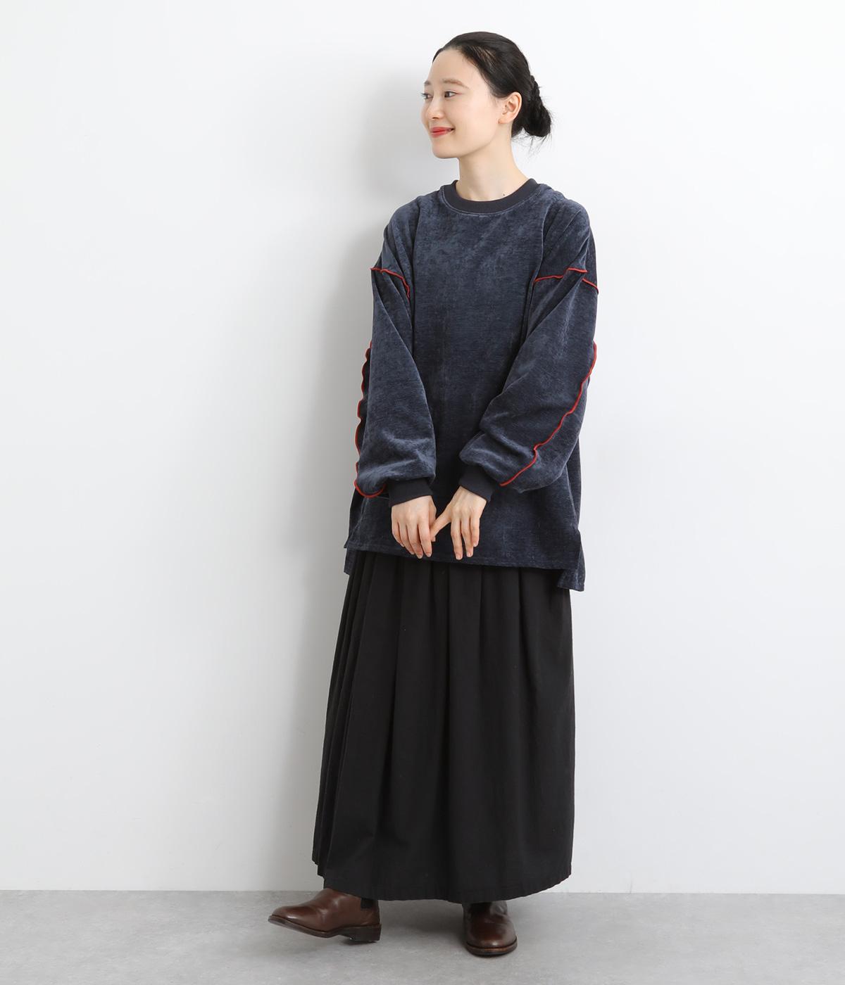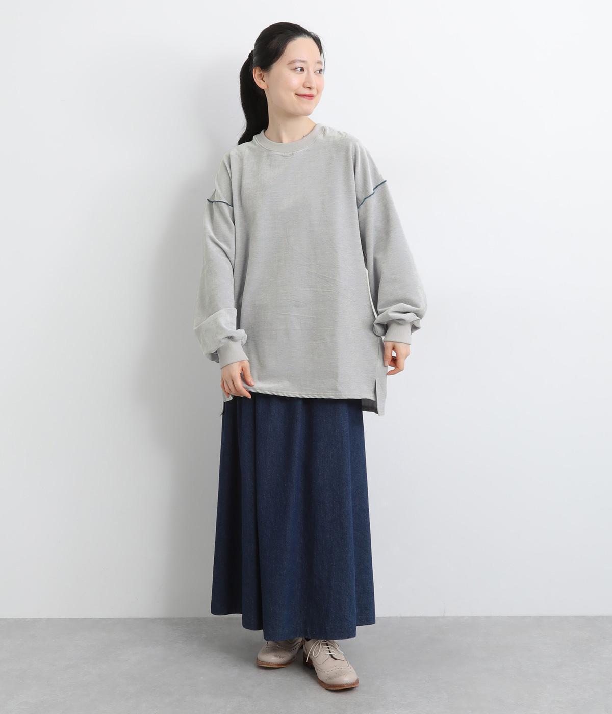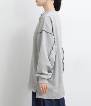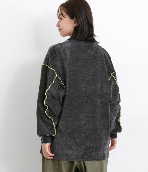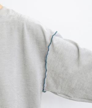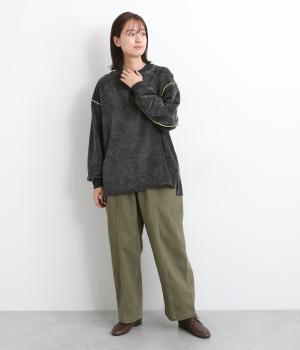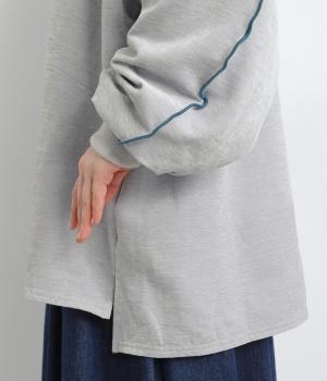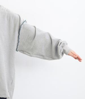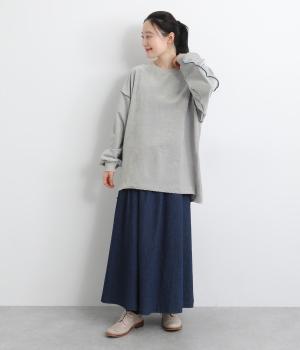 生地の端を波打つように縫い合わせたメロウ加工が目をひくプルオーバーです。ゆったりしたシルエットでカジュアルな印象に、ぽってりした袖がかわいらしさを添えています。長めの丈は前後差をつけて個性を添えつつ体型カバーも叶えます。