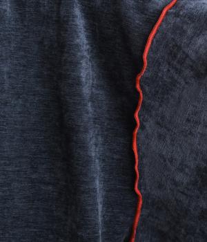 光沢のある肌ざわりのよいスラブベロア生地を使用しました。奥行きのある風合いが魅力で、ほどよい落ち感が大人らしい雰囲気の素材感です。