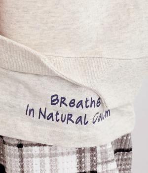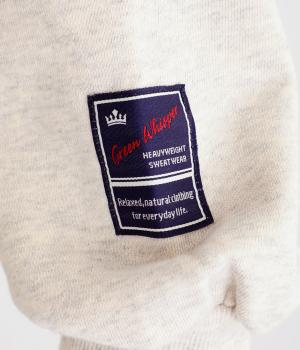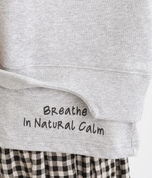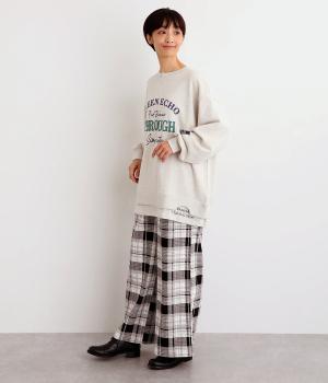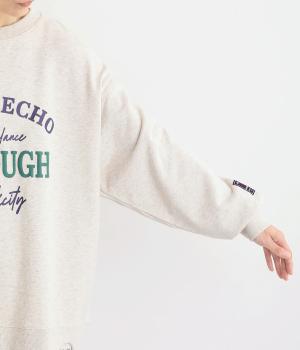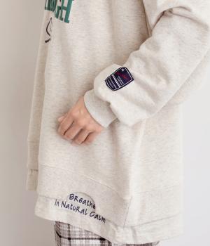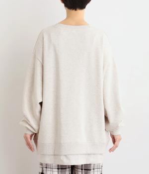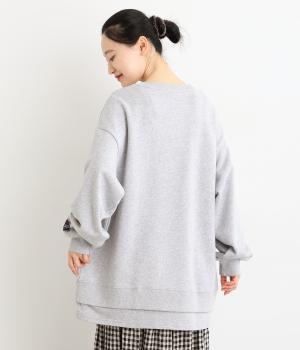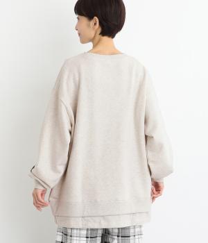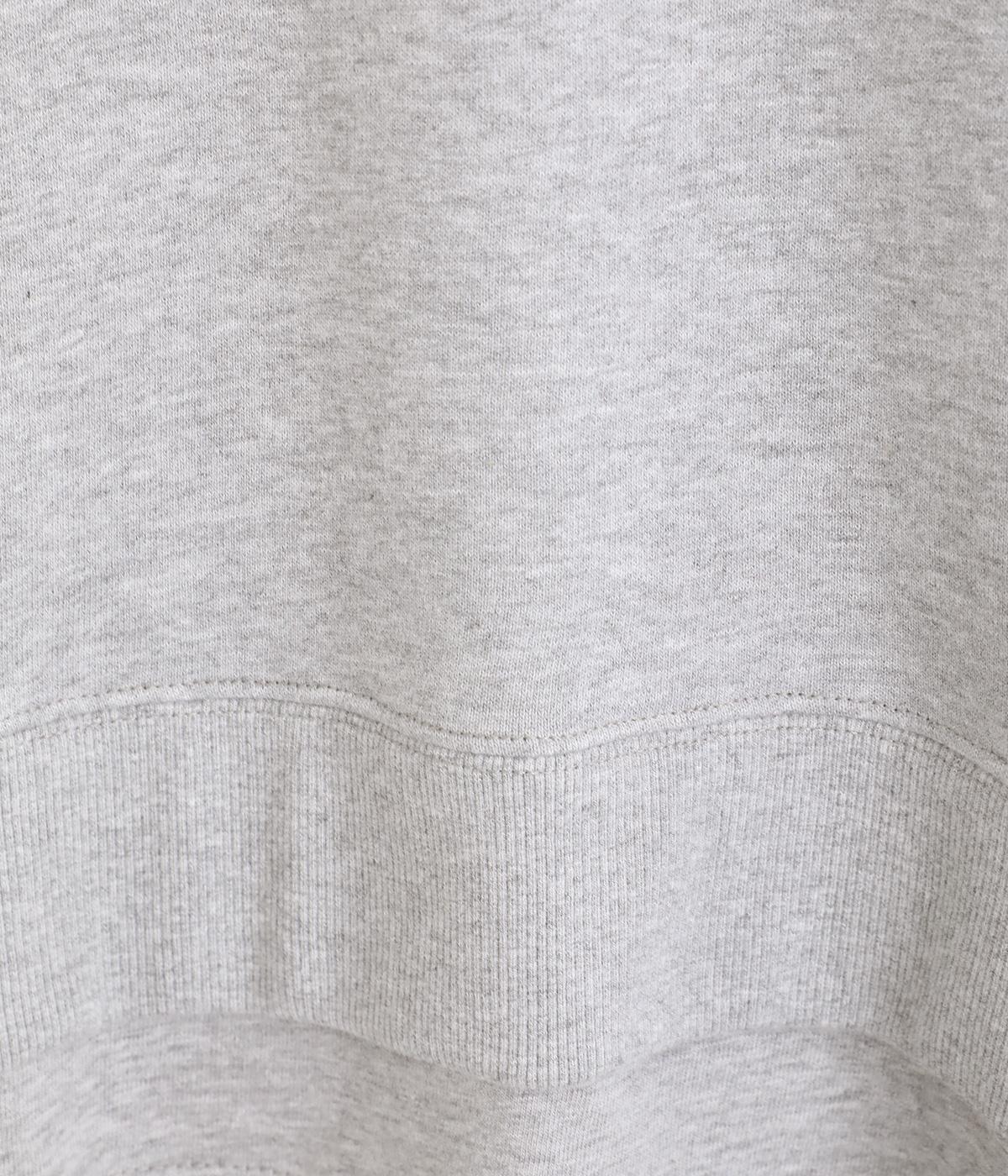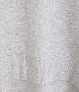 やさしい手ざわりのコットンスウェット。ほどよく伸びて着心地も抜群です。袖口と裾のリブ部分は、コットンとポリウレタンを使用。レイヤード風の裾がアクセントになっています。