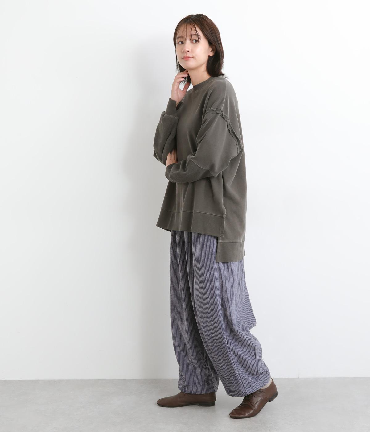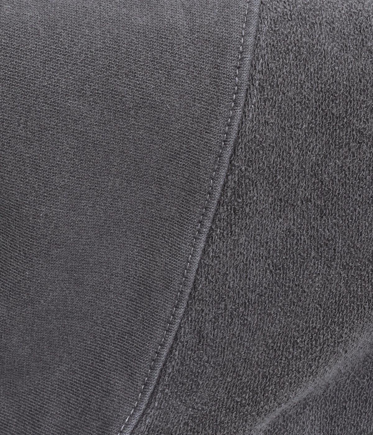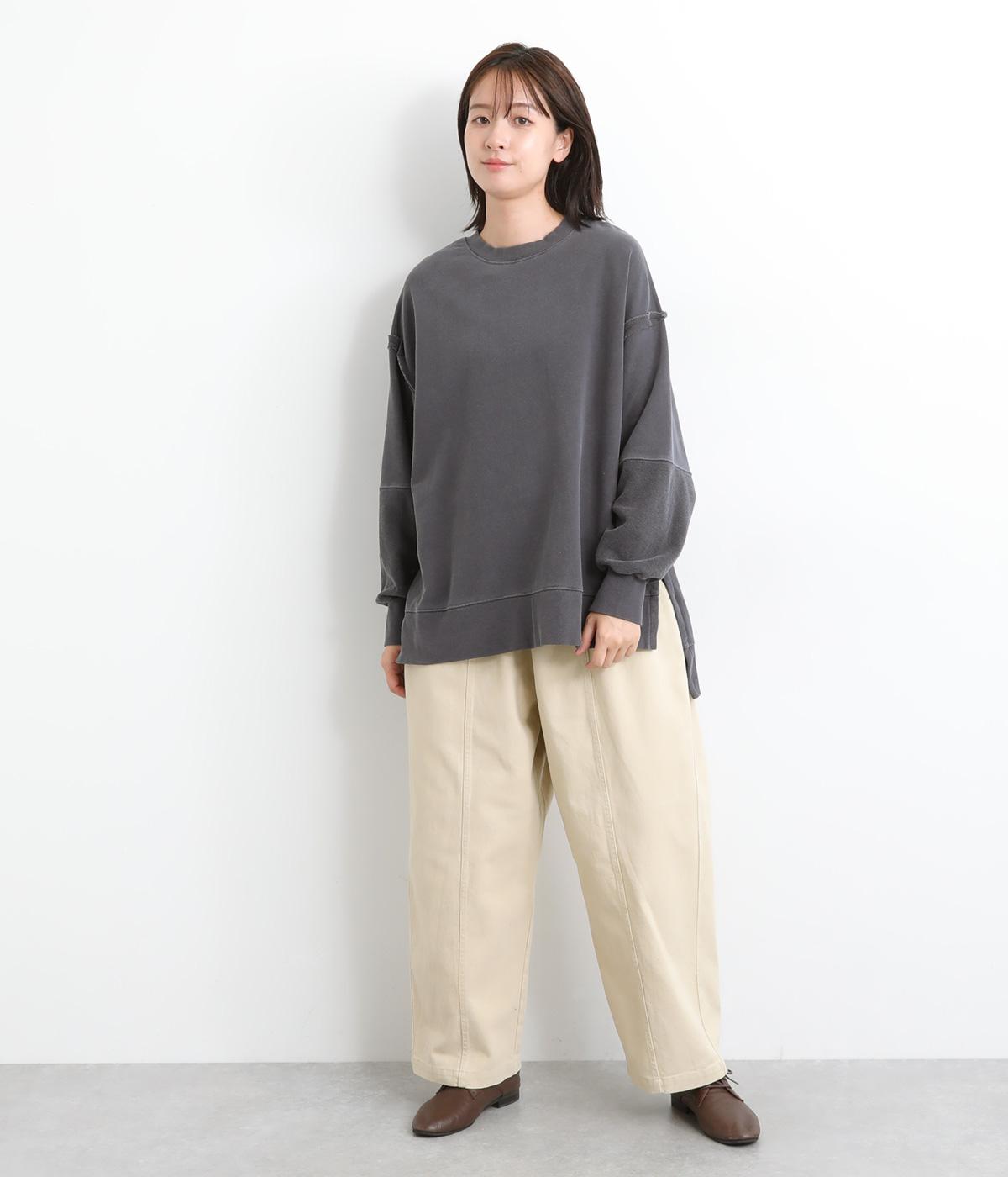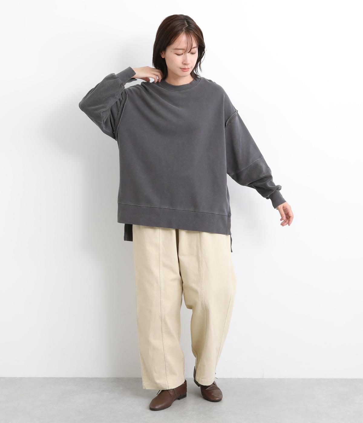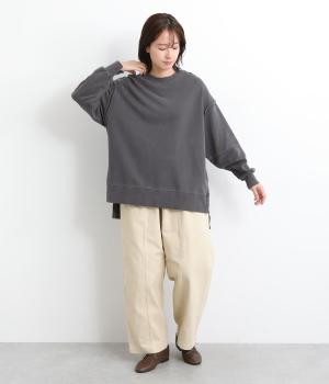 ソフトな手ざわりが心地いい裏毛素材。ピグメント加工によるユーズド感のある風合いが魅力です。肩口のラインと袖先の切り替え部分は裏面の素材を使用して表情に変化をつけました。