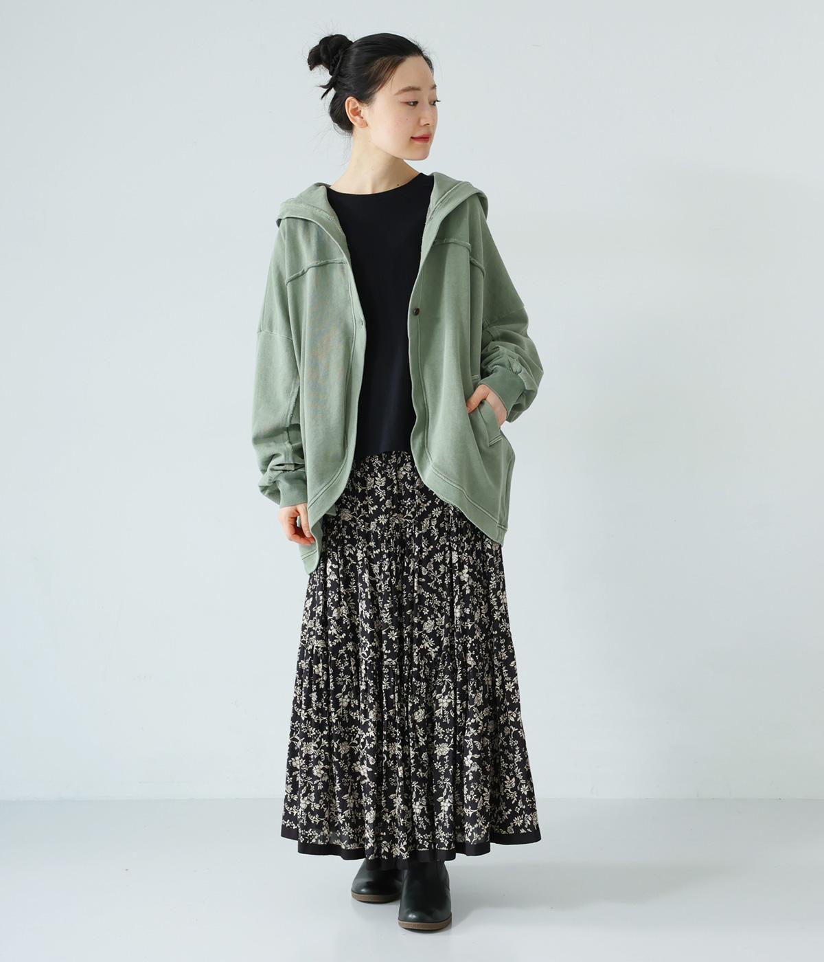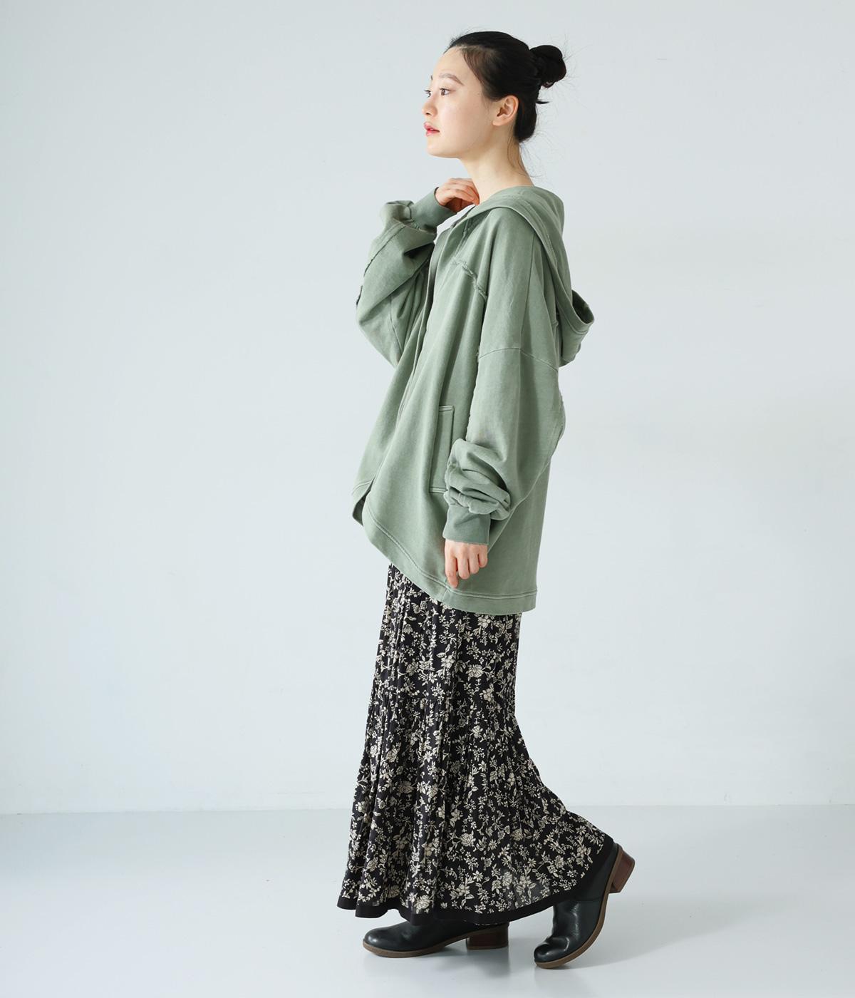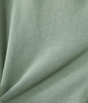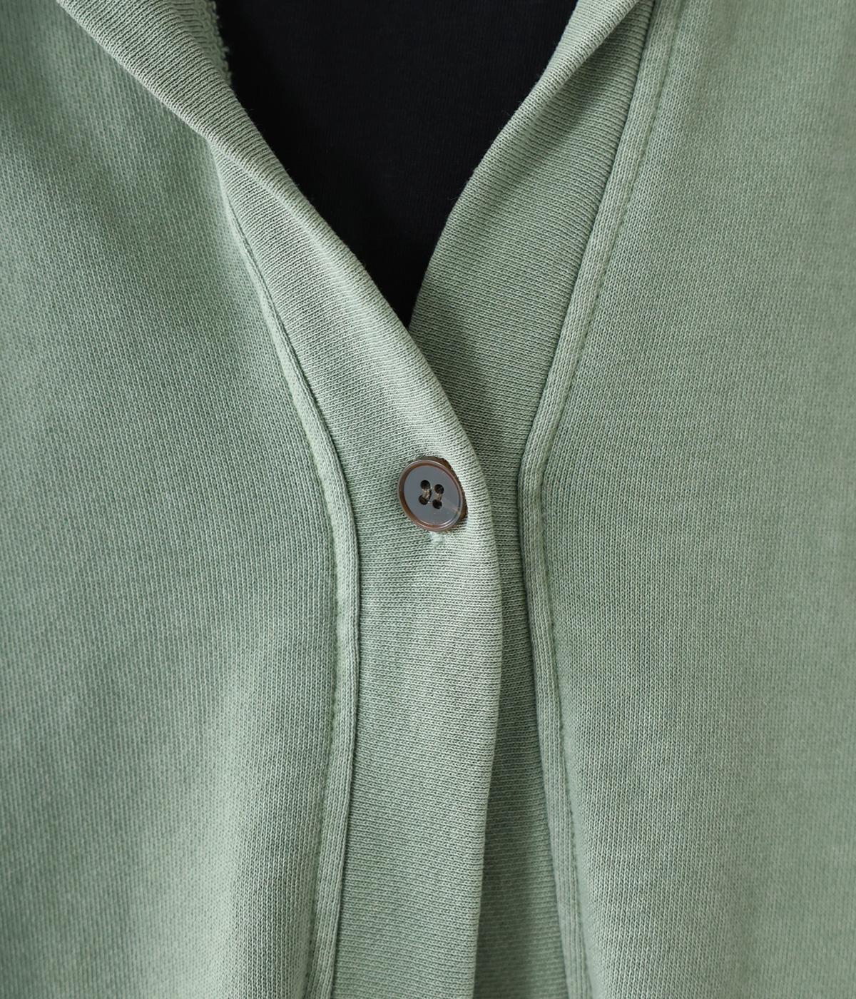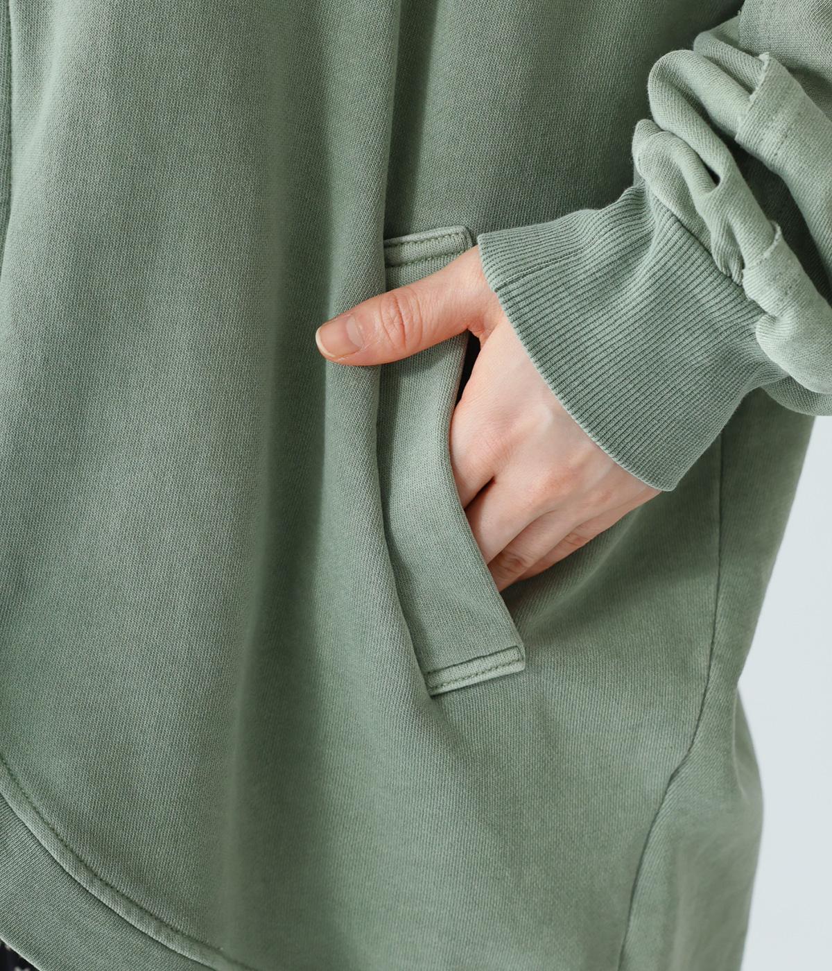 やわらかな風合いと通気性の高さが魅力のコットン裏毛生地で仕立てています。ピグメント加工によってヴィンテージ風のマットでかすれた色合いと独特な風合いを表現しました。