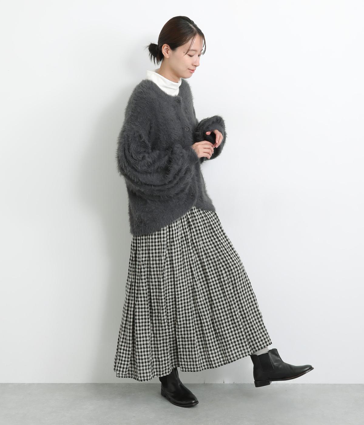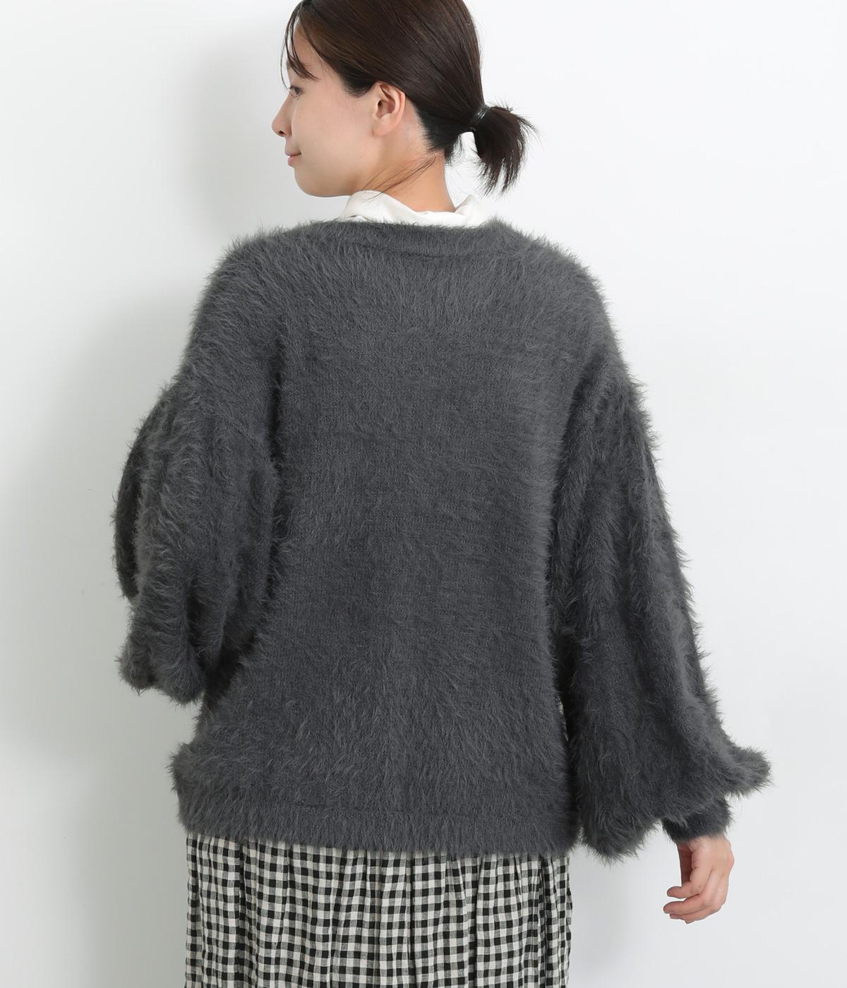 ふんわりとした長毛が特徴的なシャギーニットで仕立てました。やわらかくなめらかな肌あたりが着心地よく、寒さの厳しい季節もやさしく包み込んでくれます。
