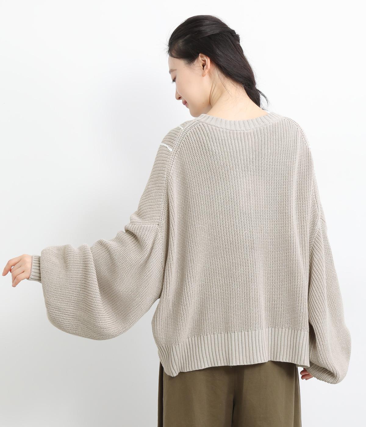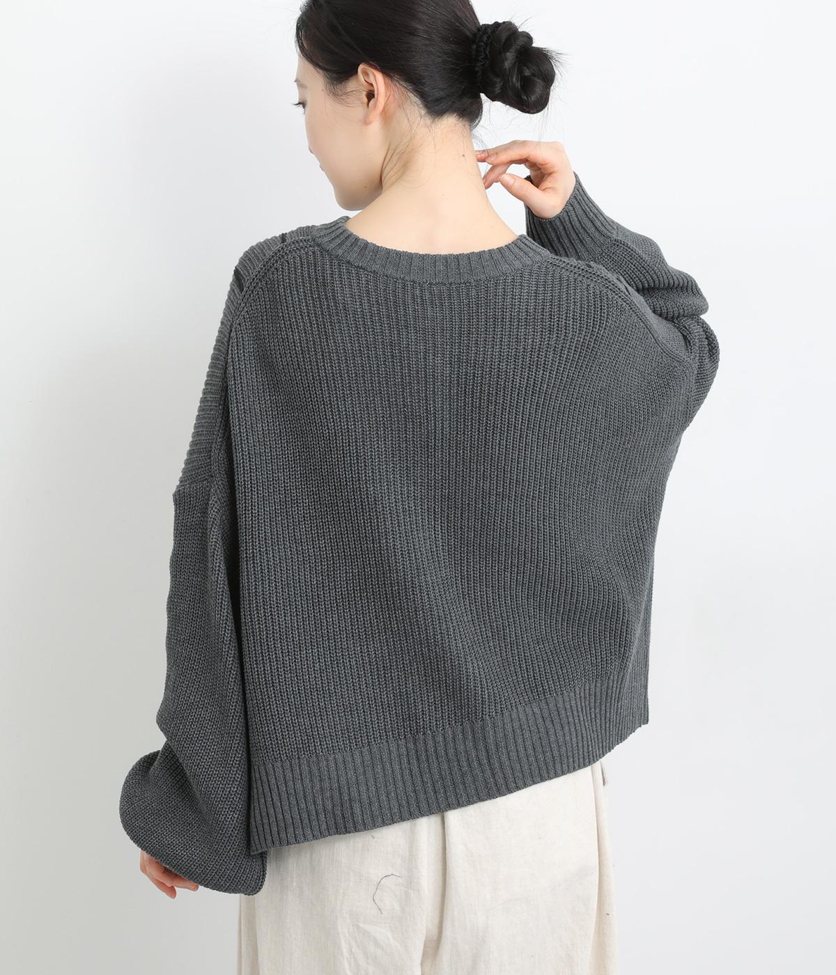 さり気なく表情のある畦編みが特徴的なニットプルオーバー。コットンとアクリルで軽やかに編み立て、季節の変わり目から長く着まわせます。