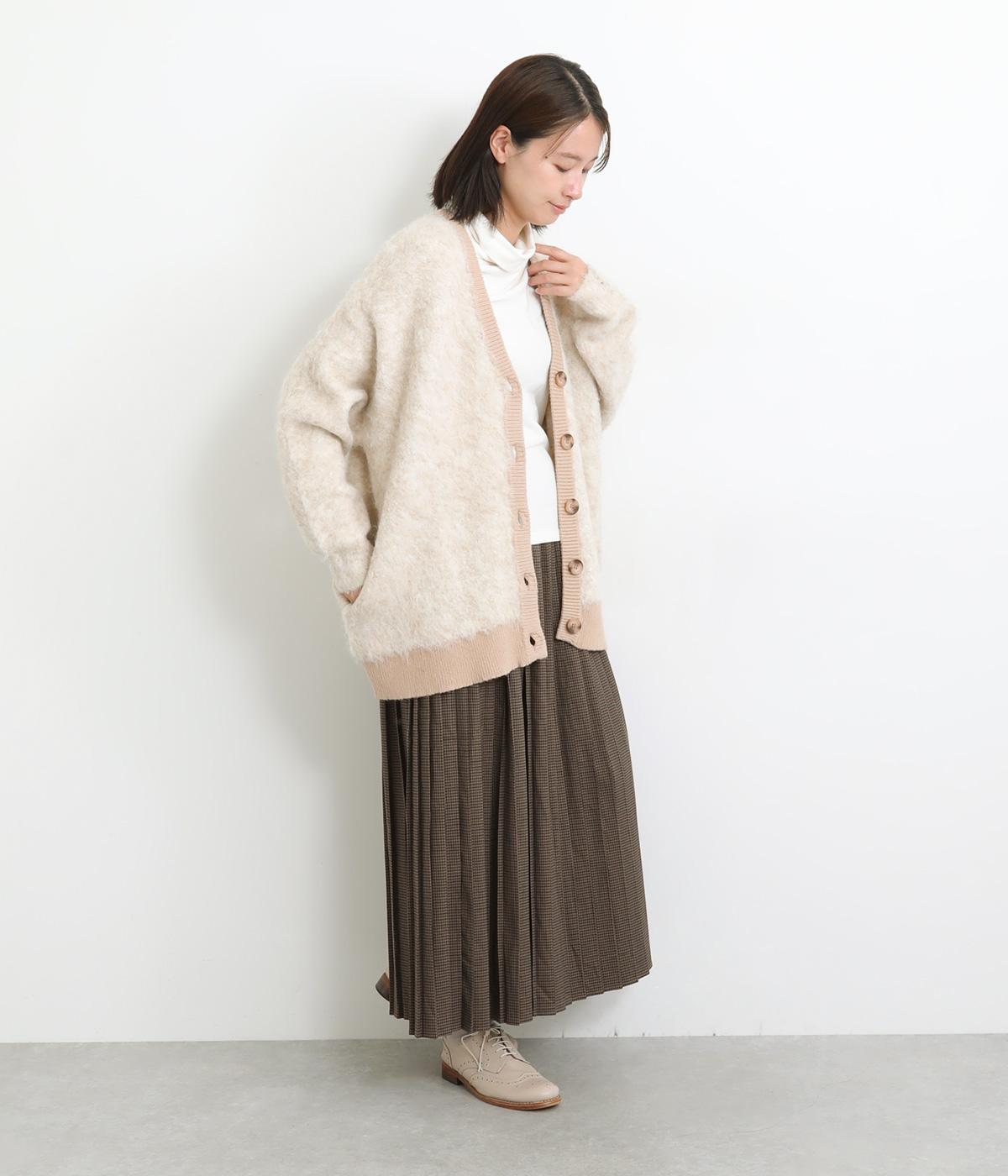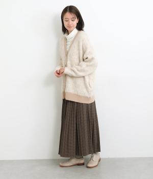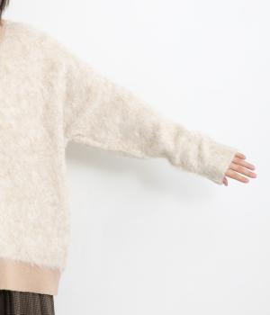 もっちりとした肉感でやわらかく、ふわっふわの表面感が魅力的な混紡ファーニットを使用。ウール混で保温性もあり、レーヨンも入っているので肌あたりなめらか。