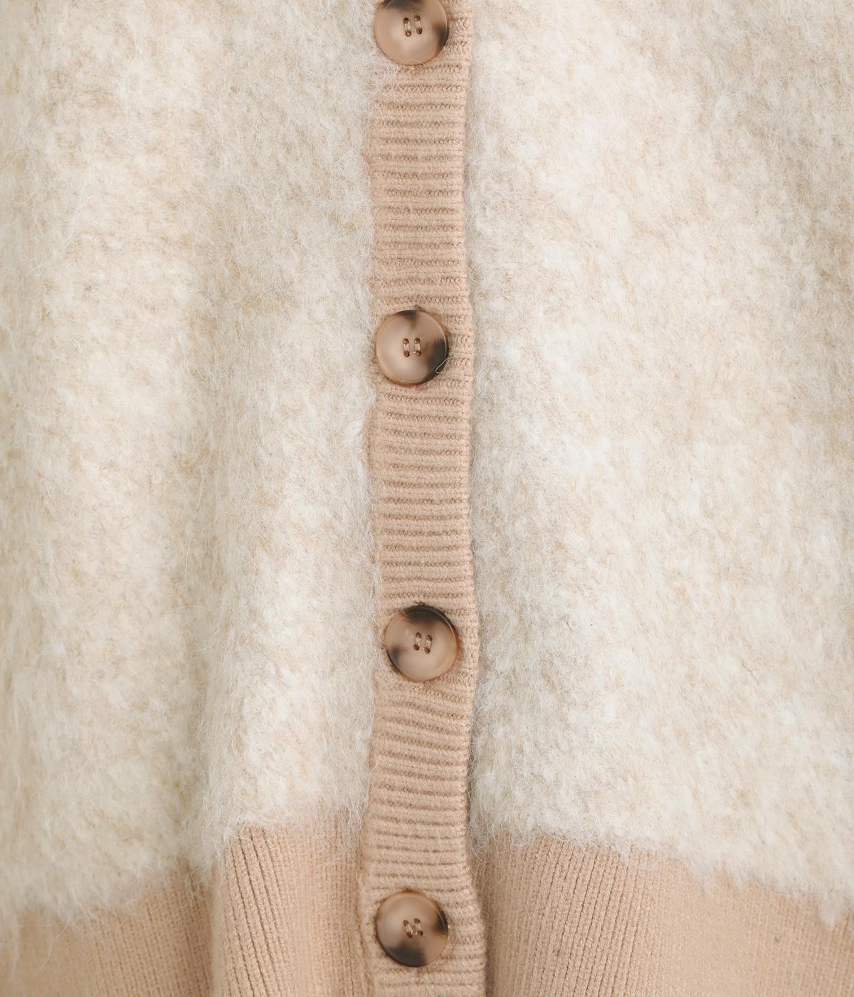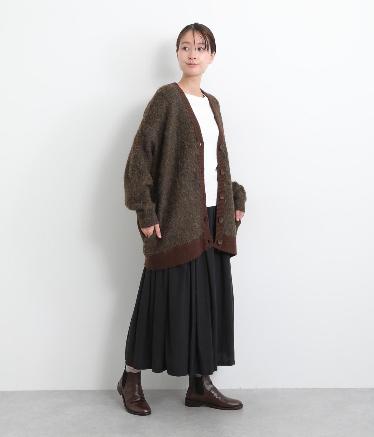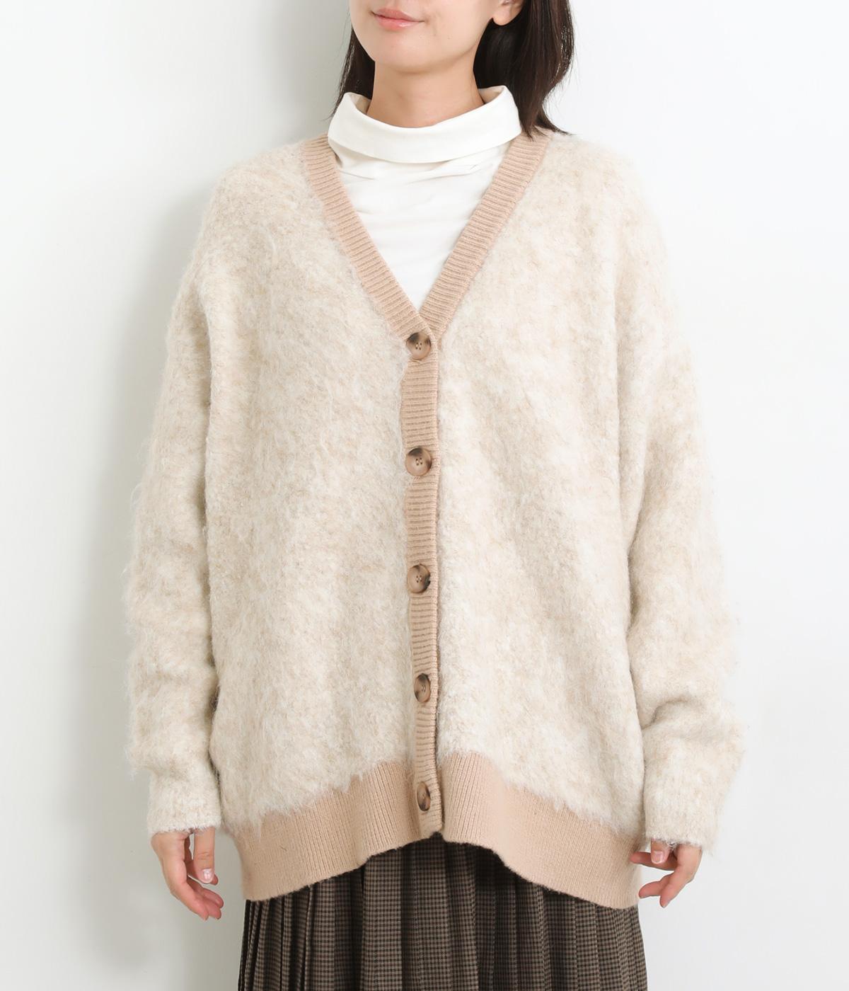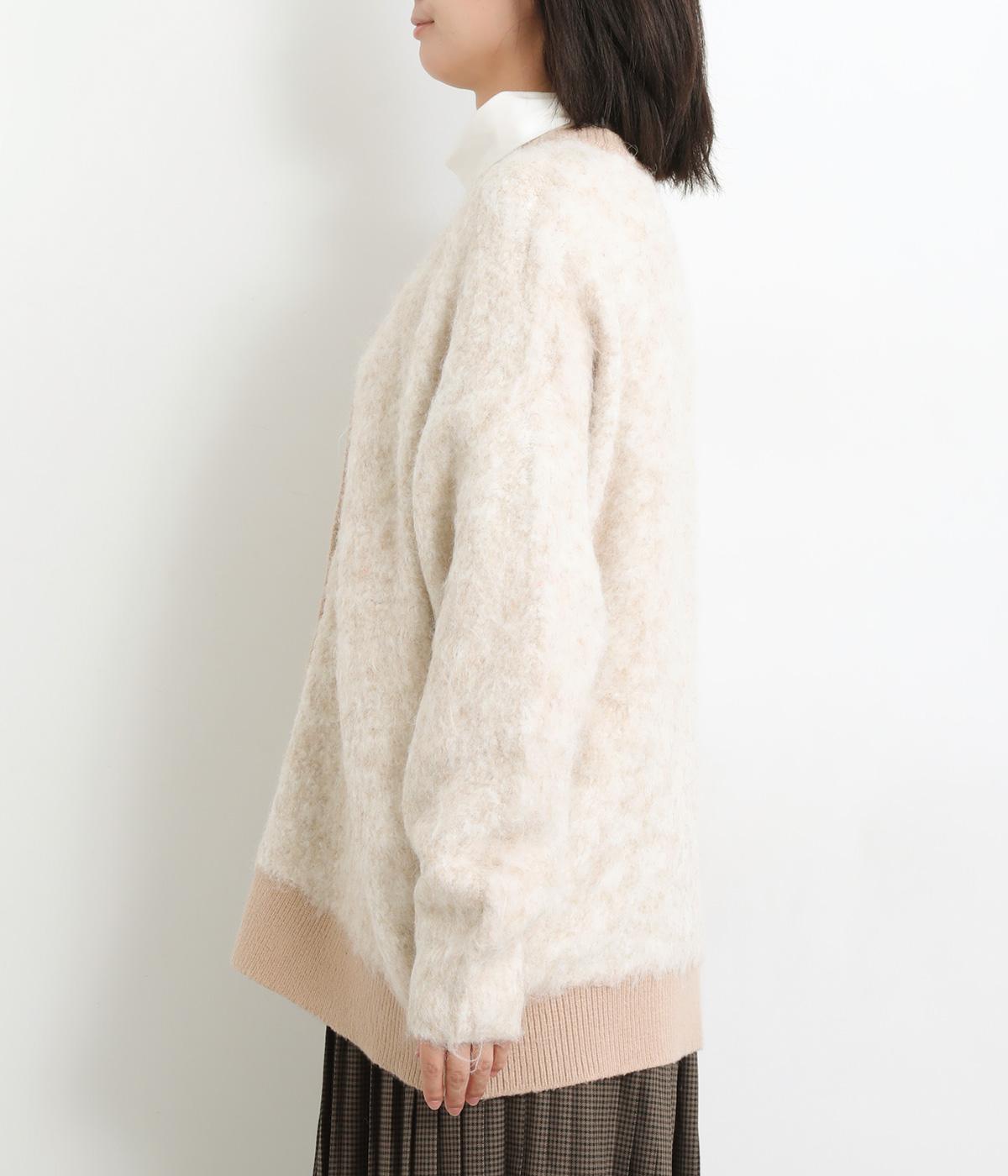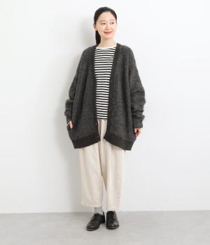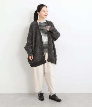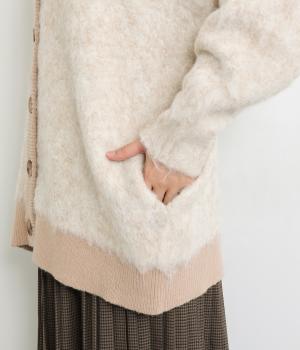 さり気なく多色の糸を編み込みニュアンスを持たせたニットカーディガン。豊かな表情を活かしたベーシックな仕立てにポケットつきでデイリーに活躍。色みを揃えたリブ切り替えがちょうどいいメリハリをつけます。