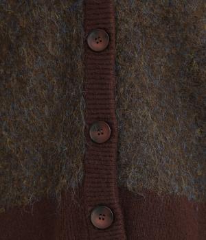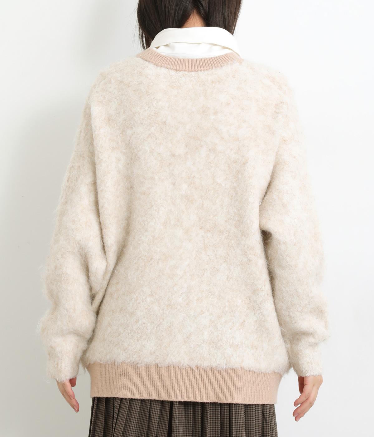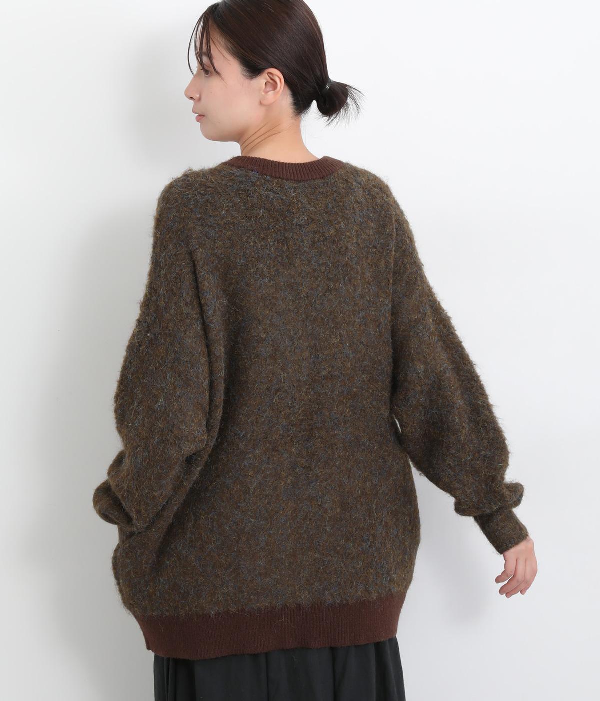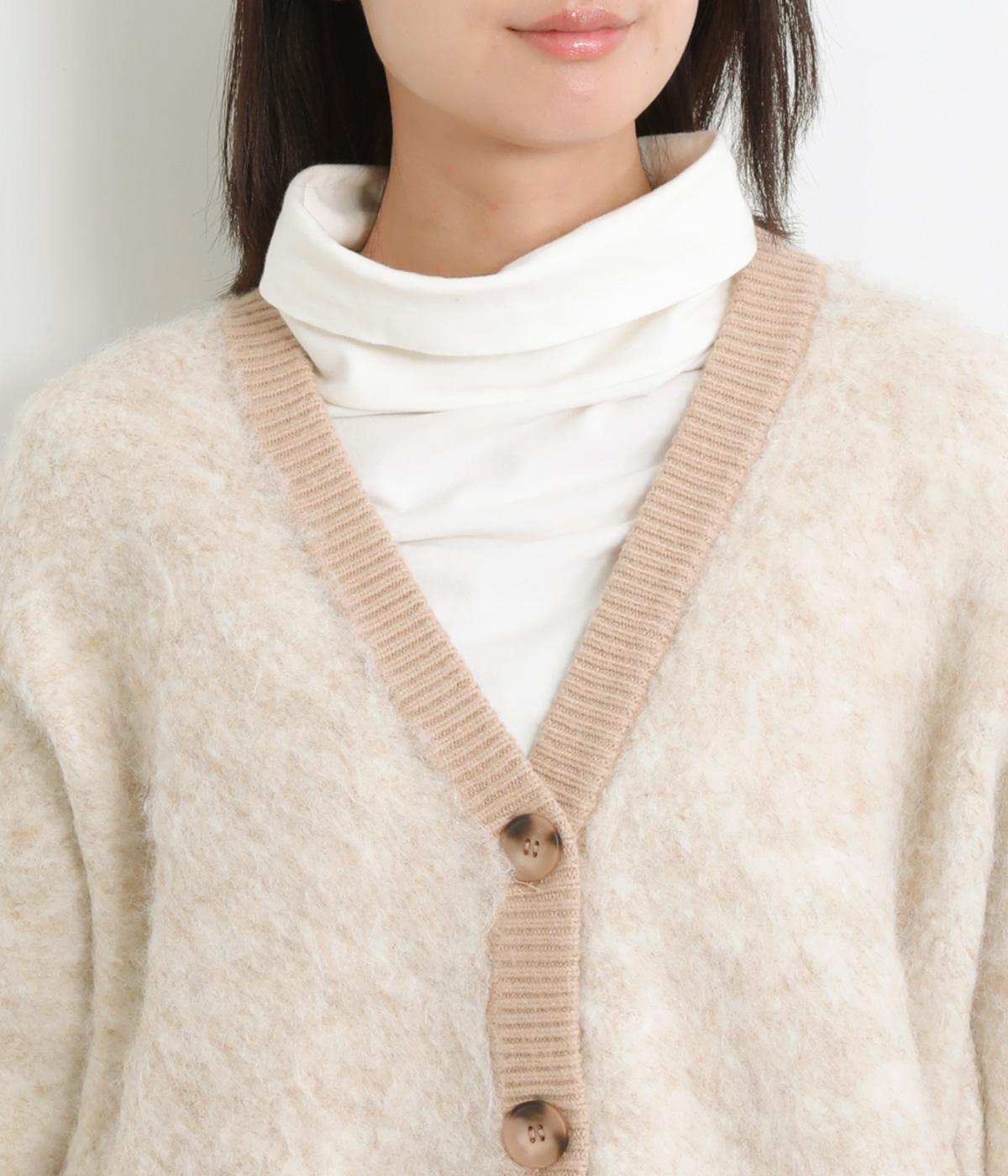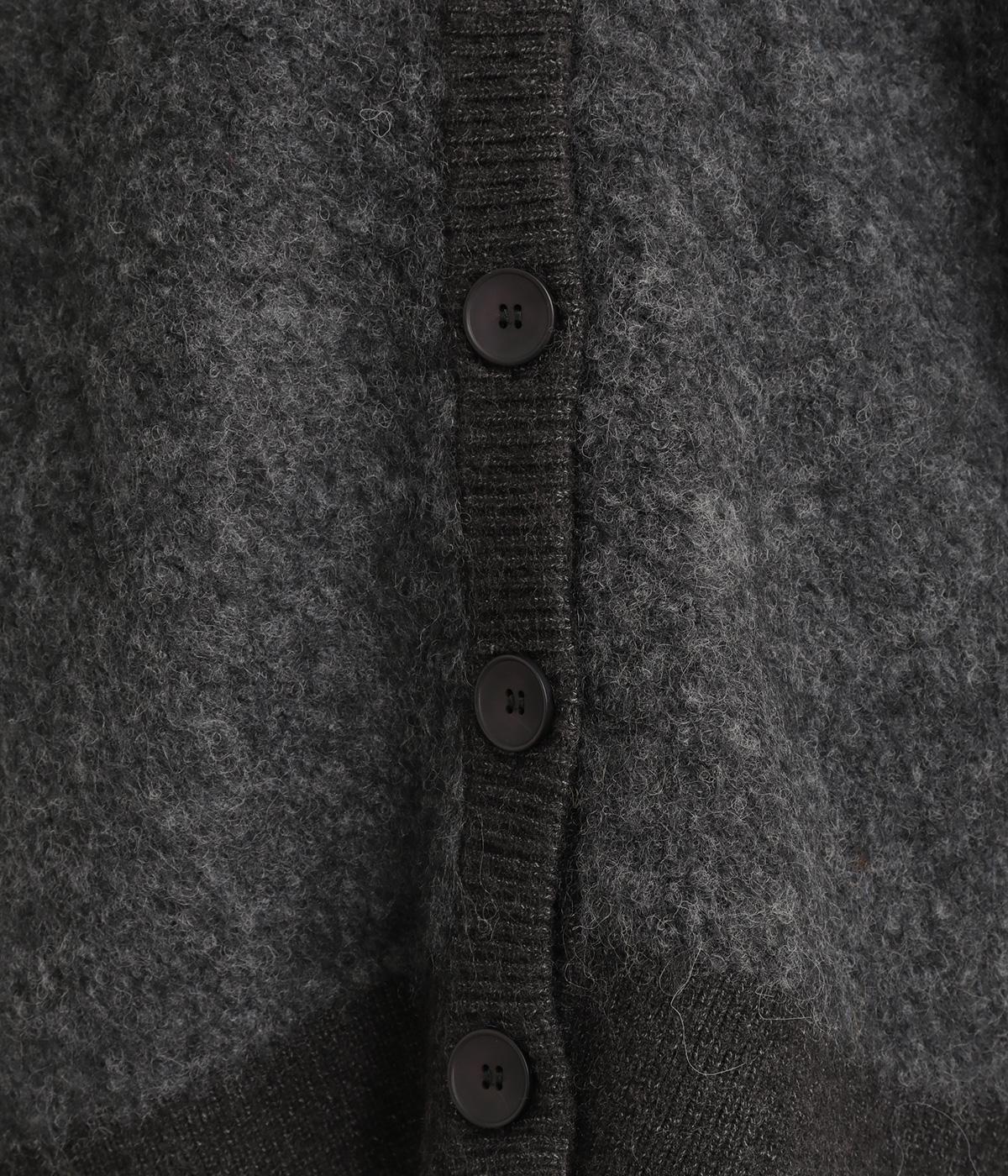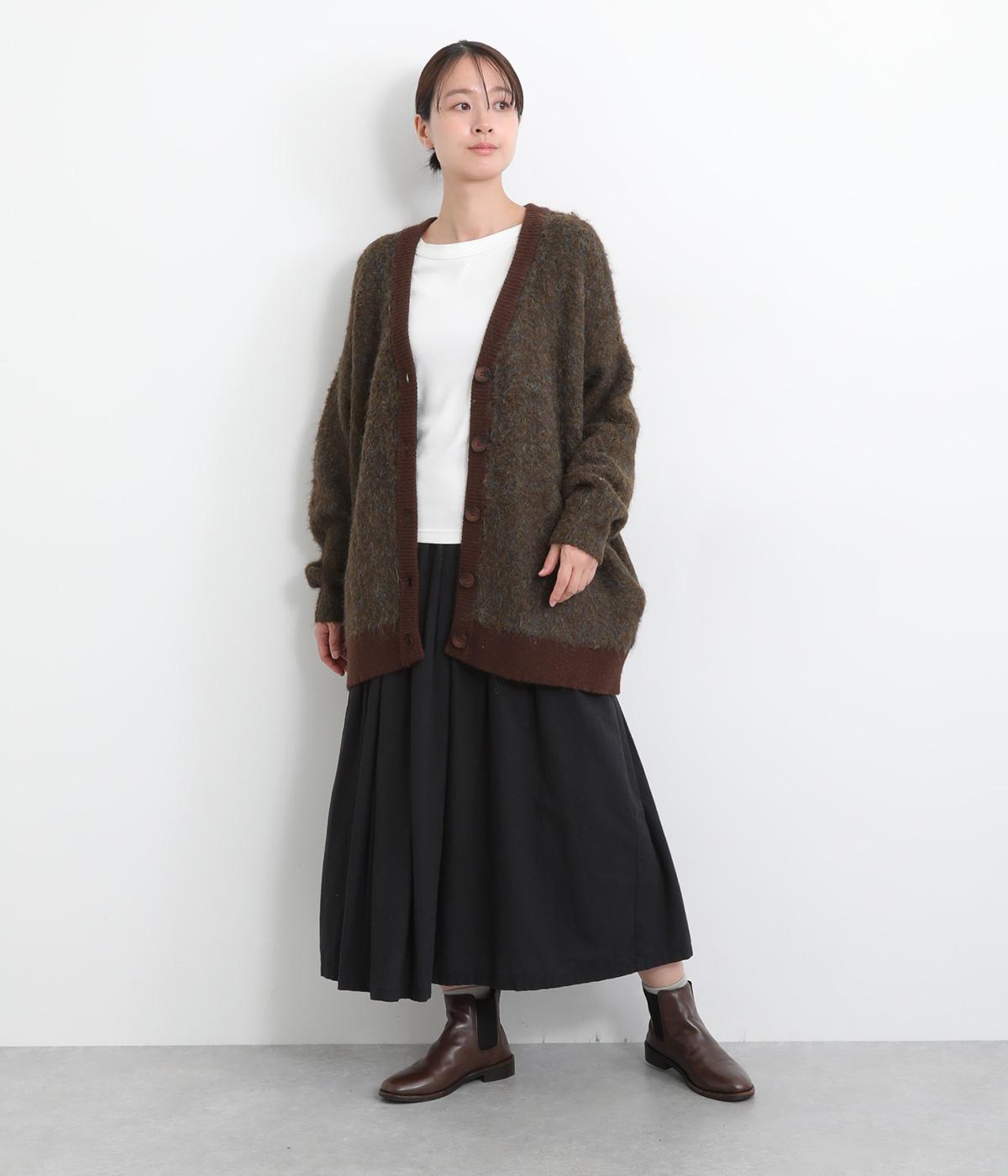 さり気なく多色の糸を編み込みニュアンスを持たせたニットカーディガン。豊かな表情を活かしたベーシックな仕立てにポケットつきでデイリーに活躍。色みを揃えたリブ切り替えがちょうどいいメリハリをつけます。