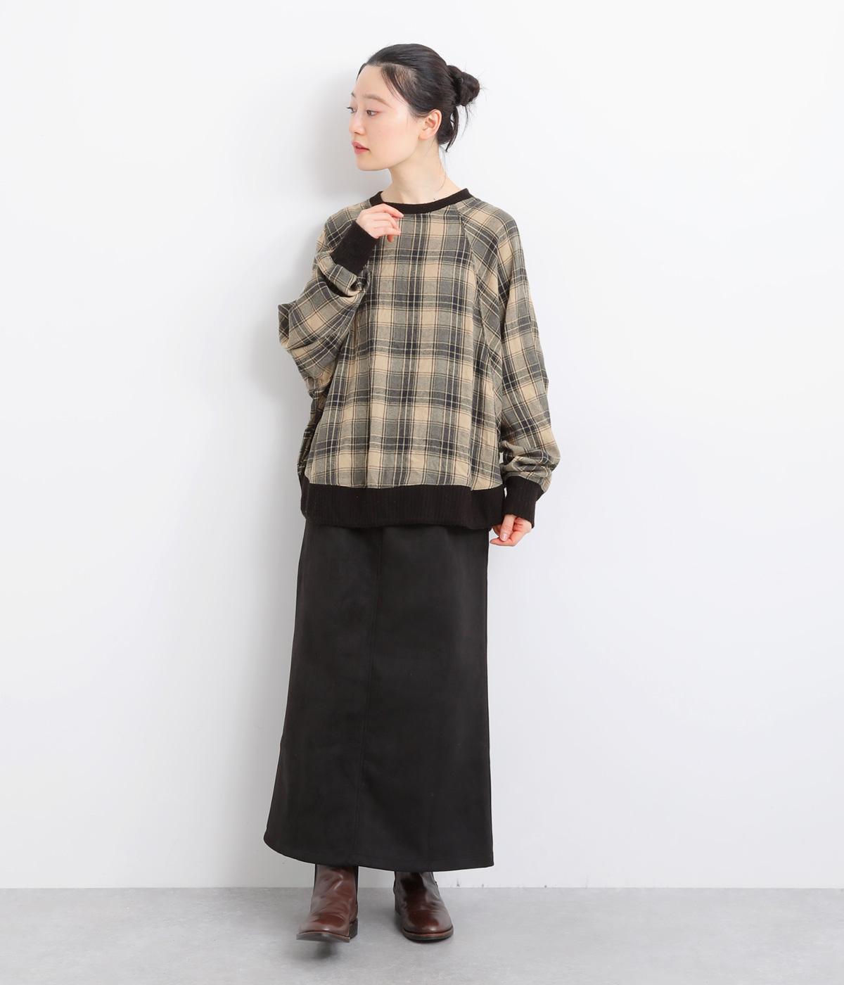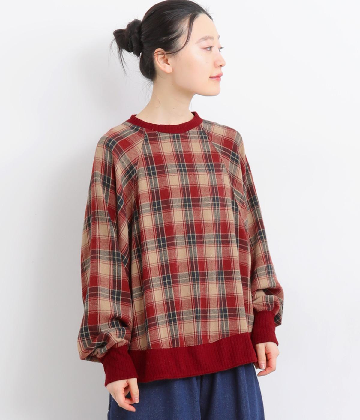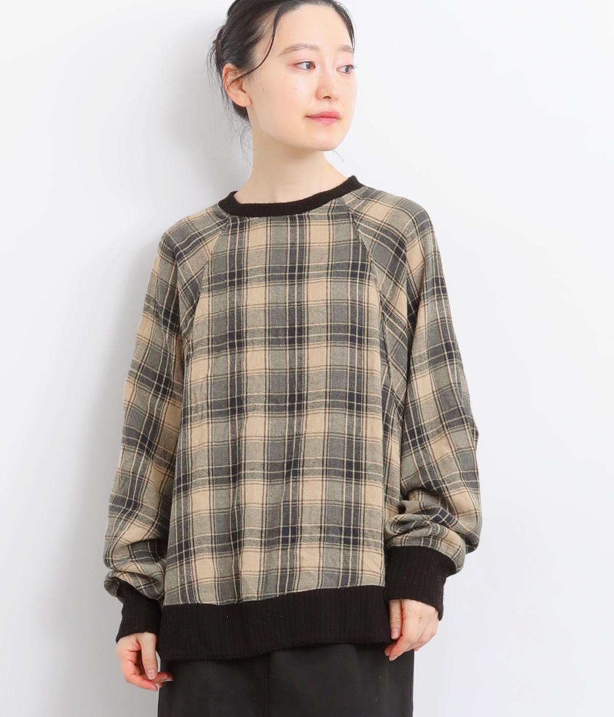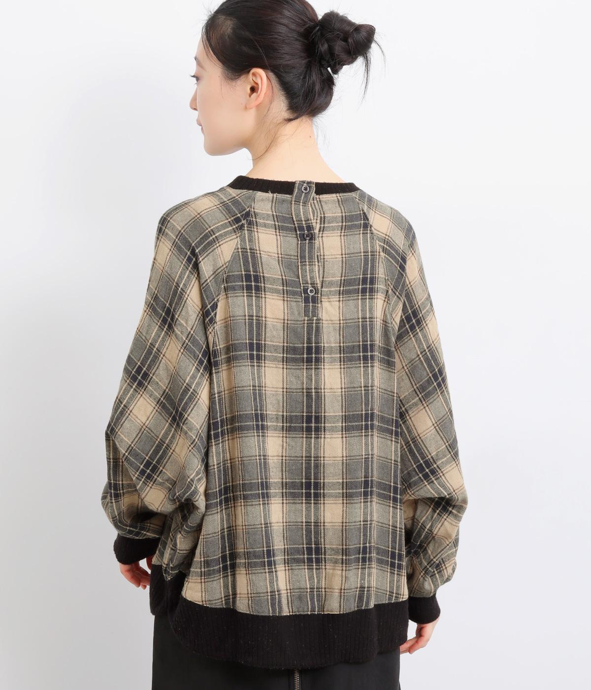色の重なりやラインの太さをていねいに組み合わせたチェック柄が印象的なプルオーバーです。ドルマンスリーブのゆるやかなシルエットが肩まわりをつつみ込み、重ね着しやすいデザインに。後ろには小さなボタンが並び、さりげないアクセントになっています。絶妙な丈感が、腰まわりをふんわりとカバーしてくれるのも◎。