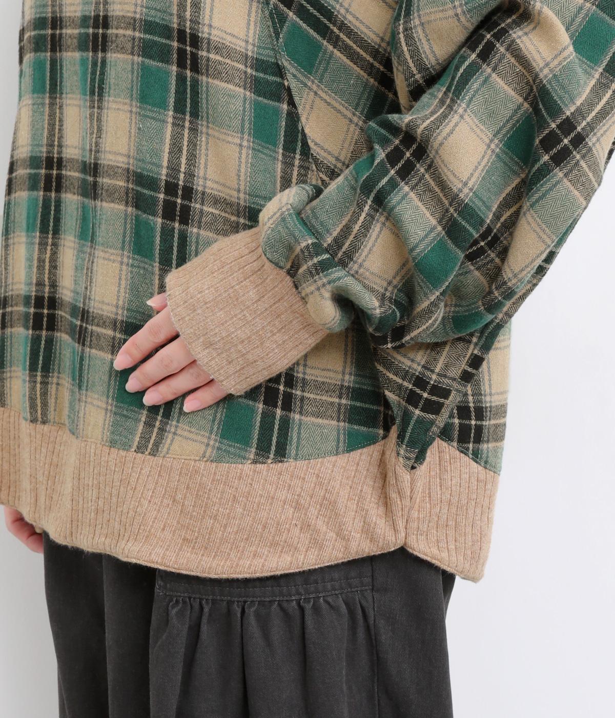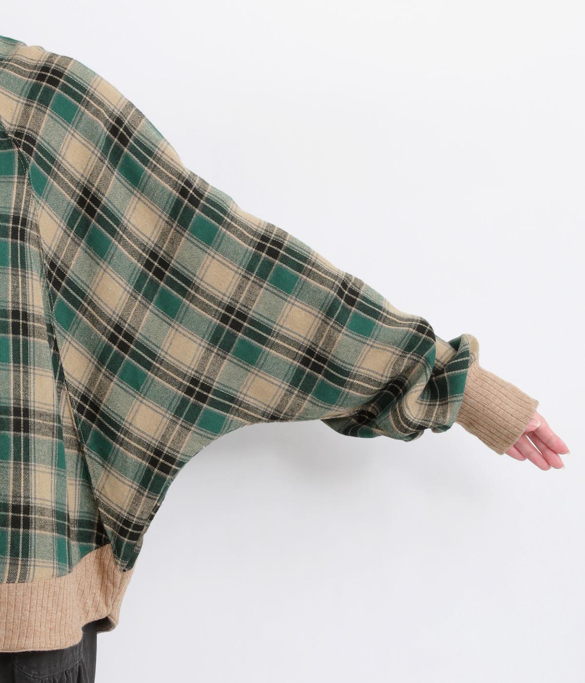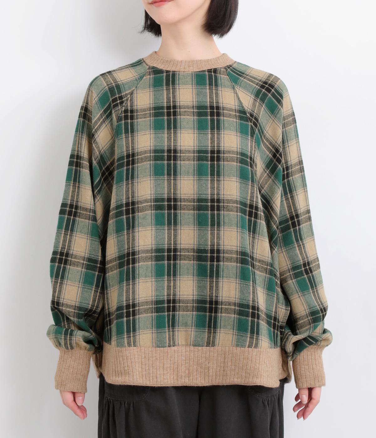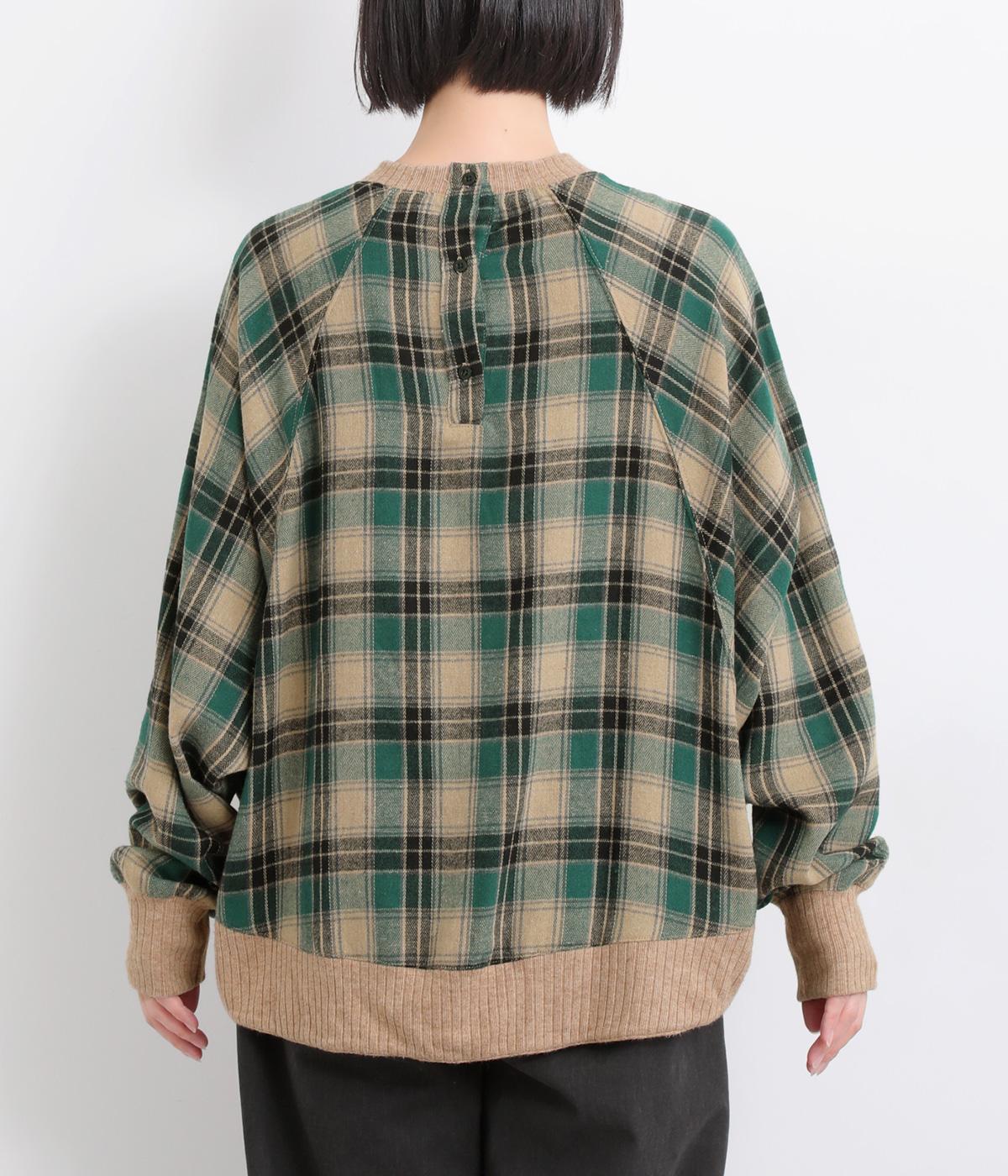 色の重なりやラインの太さをていねいに組み合わせたチェック柄が印象的なプルオーバーです。ドルマンスリーブのゆるやかなシルエットが肩まわりをつつみ込み、重ね着しやすいデザインに。後ろには小さなボタンが並び、さりげないアクセントになっています。絶妙な丈感が、腰まわりをふんわりとカバーしてくれるのも◎。
