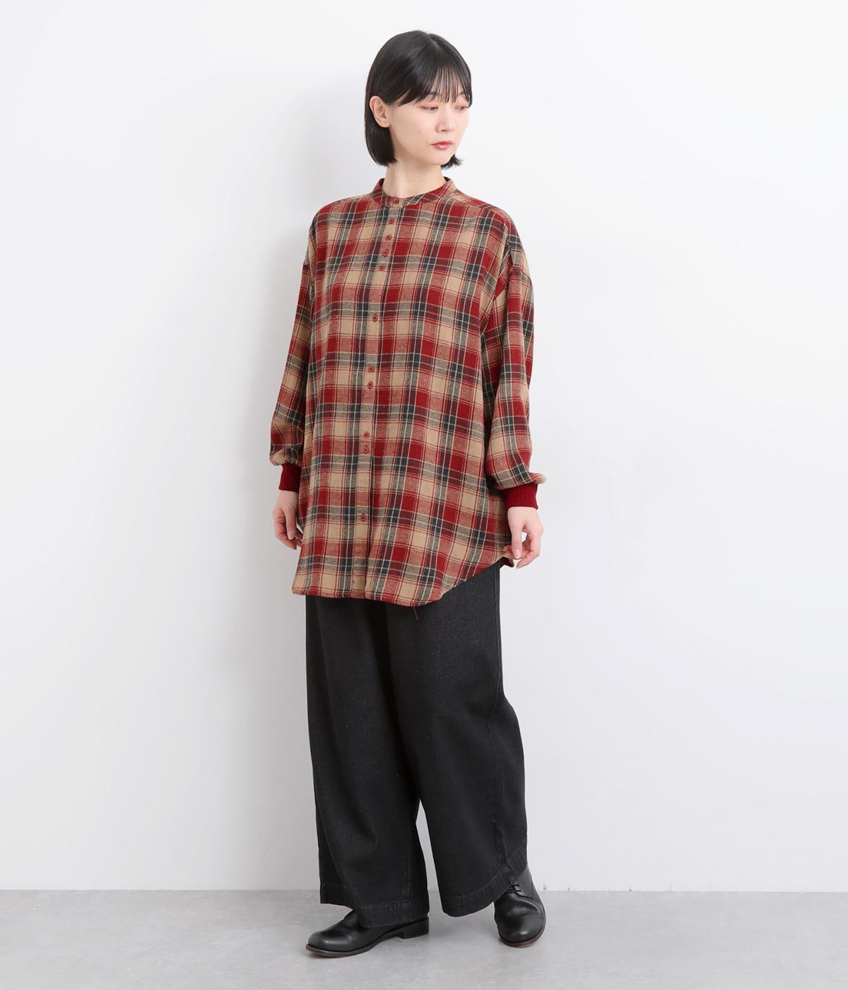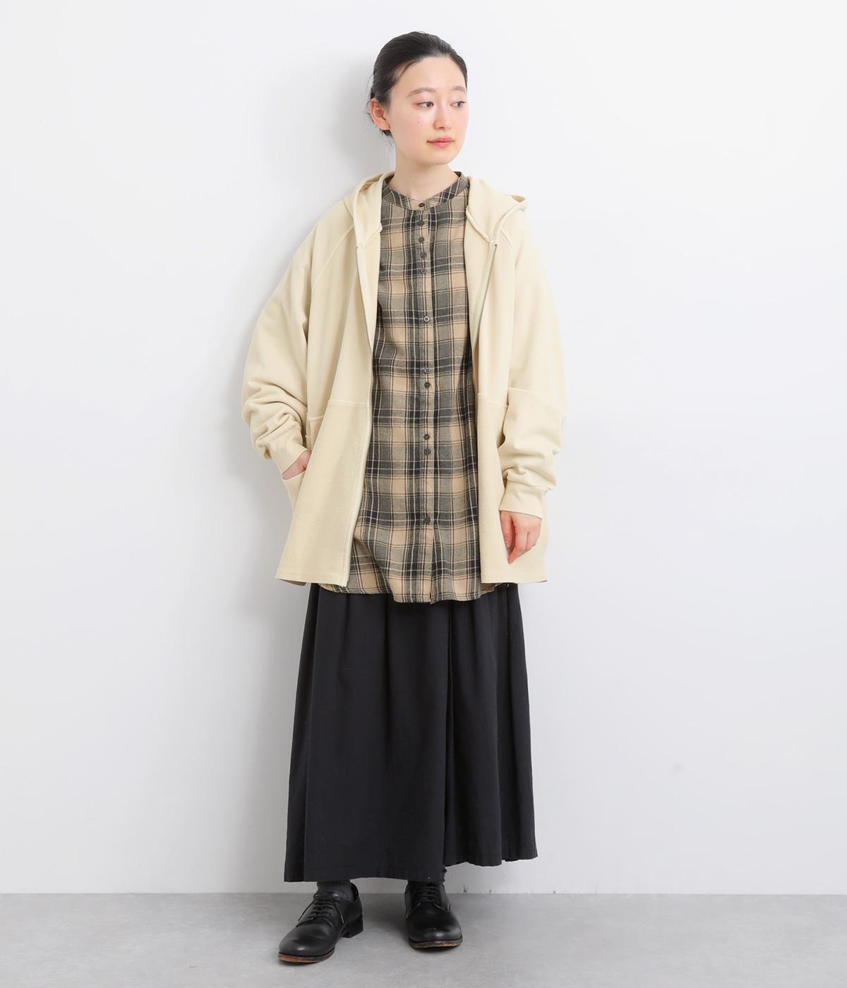 やわらかな起毛が全体に広がり、ふんわりとした風合いを引き立てるネル素材です。軽い着心地ながらあたたかさを感じられ、寒い季節も快適に過ごせます。ナチュラルな杢感や起毛のニュアンスによって、素材のゆたかな表情がたのしめます。