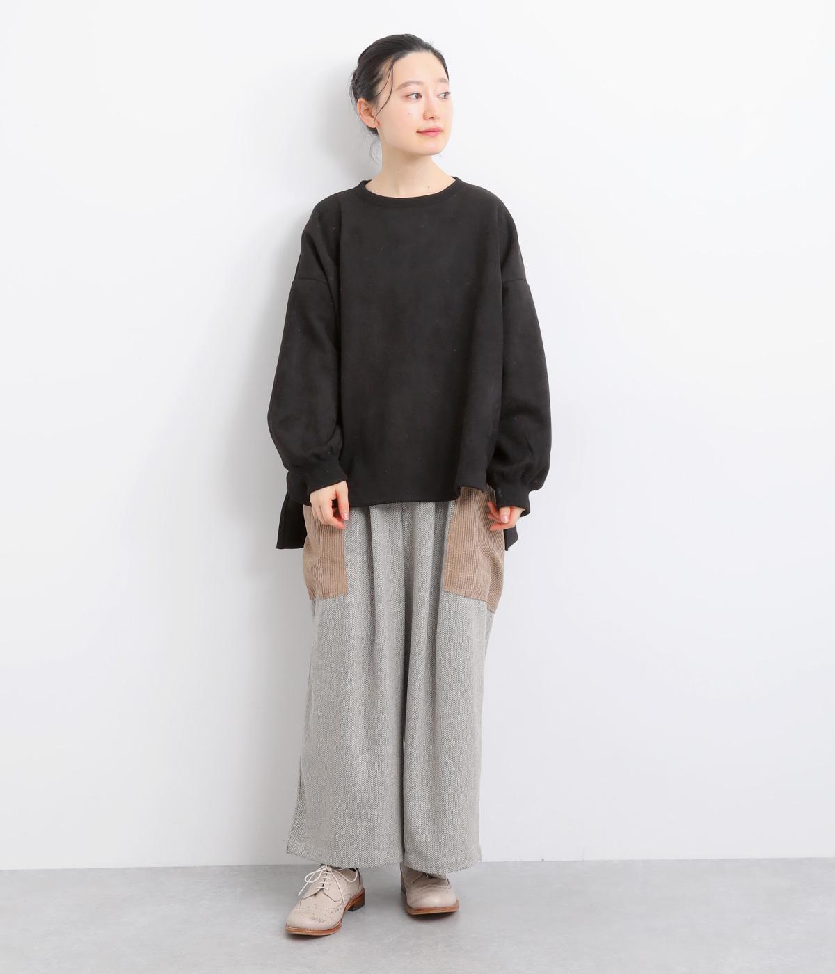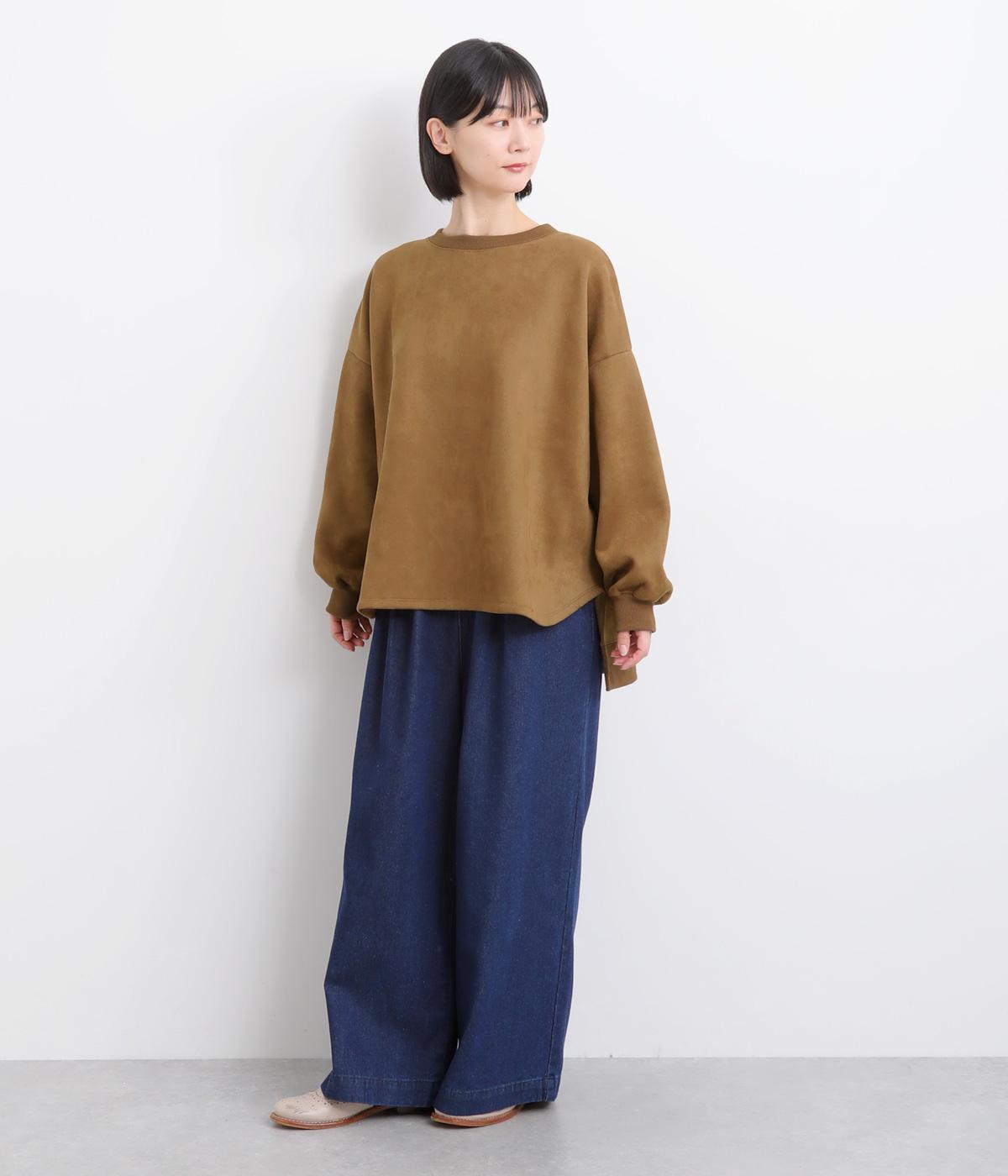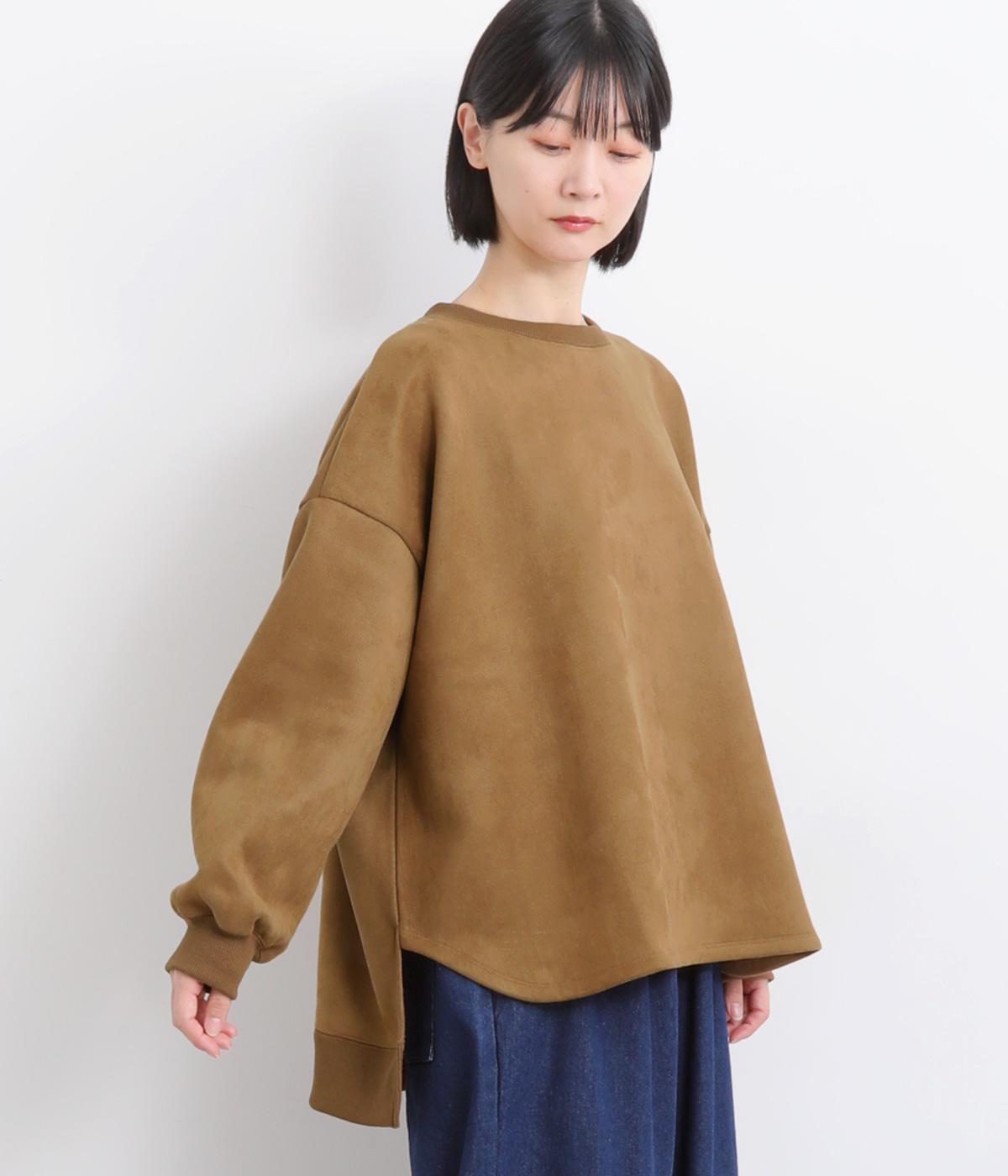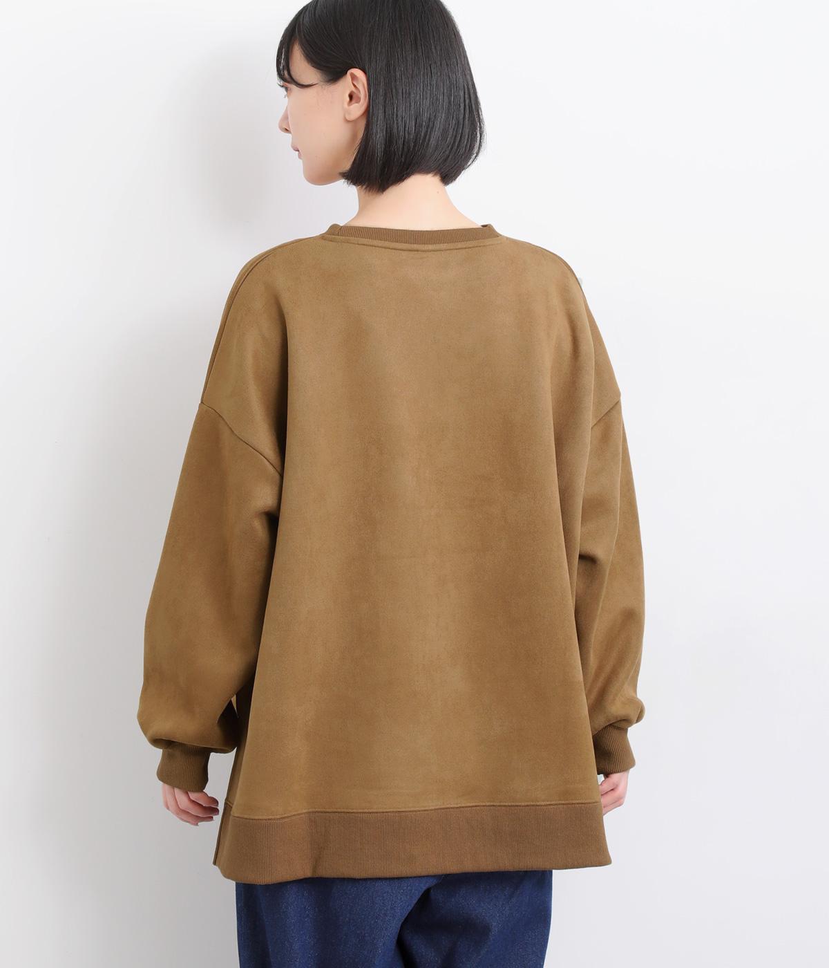 表側はフェイクスエードならではの微起毛がなめらかで、しっとりとした手ざわりが魅力。光の当たり方でやわらかな陰影が生まれ、上品な表情を見せます。裏地には、ふんわりとあたたかなフリースを重ねました。軽さもありつつほどよいハリで、シルエットがきれいにきまる素材です。