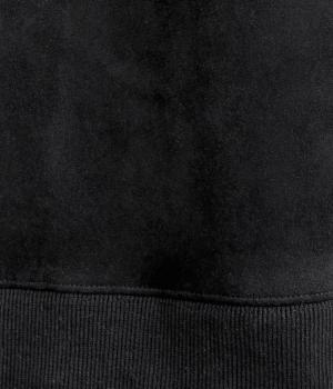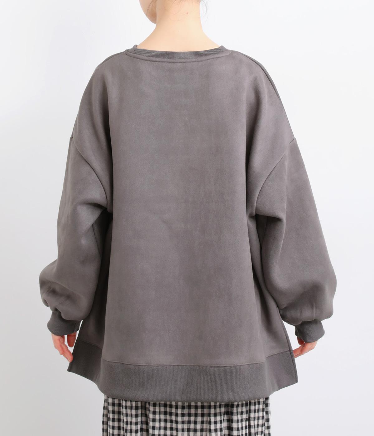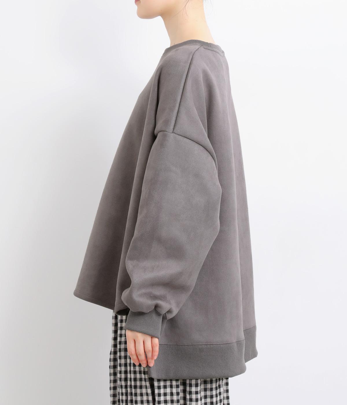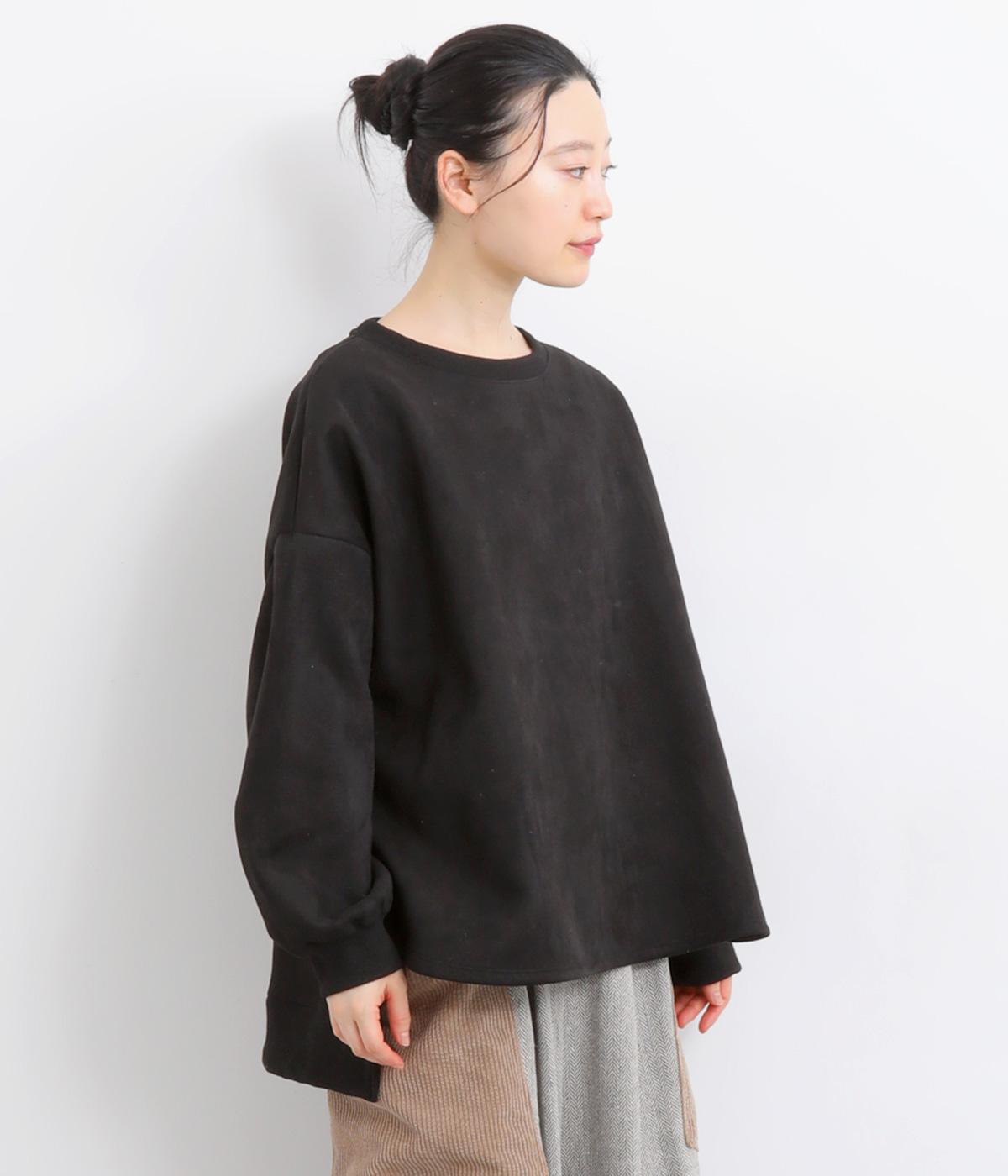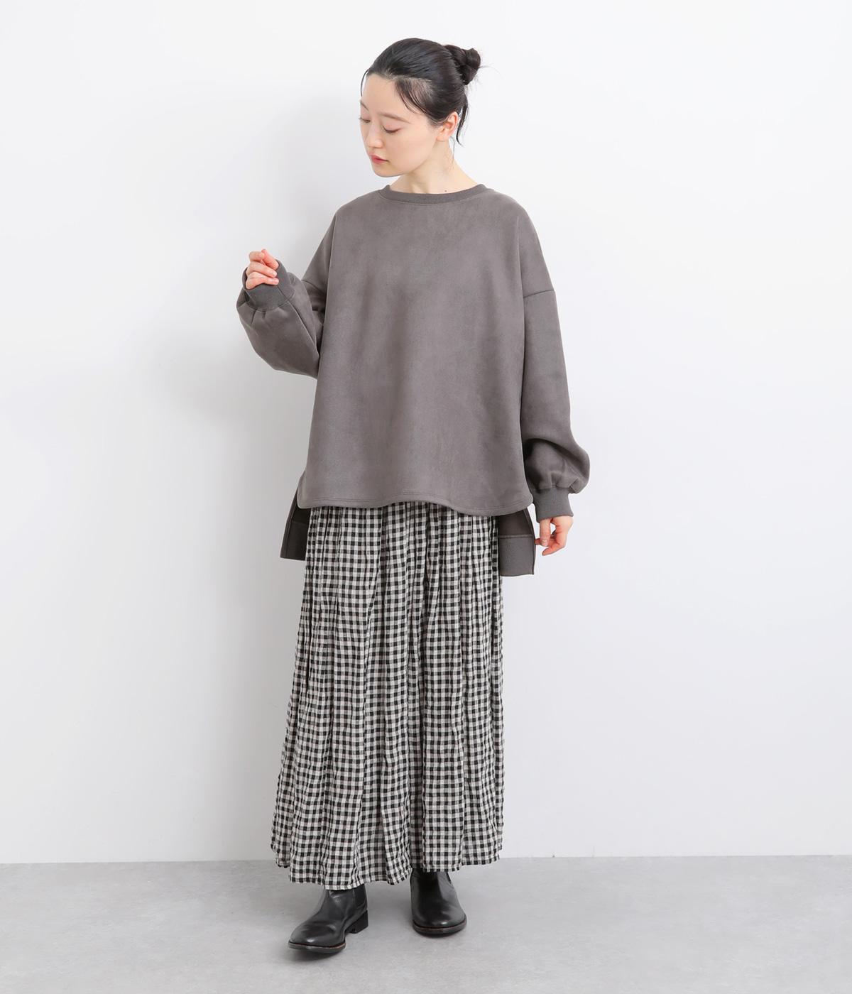 表側はフェイクスエードならではの微起毛がなめらかで、しっとりとした手ざわりが魅力。光の当たり方でやわらかな陰影が生まれ、上品な表情を見せます。裏地には、ふんわりとあたたかなフリースを重ねました。軽さもありつつほどよいハリで、シルエットがきれいにきまる素材です。
