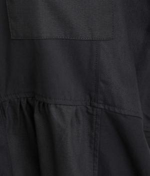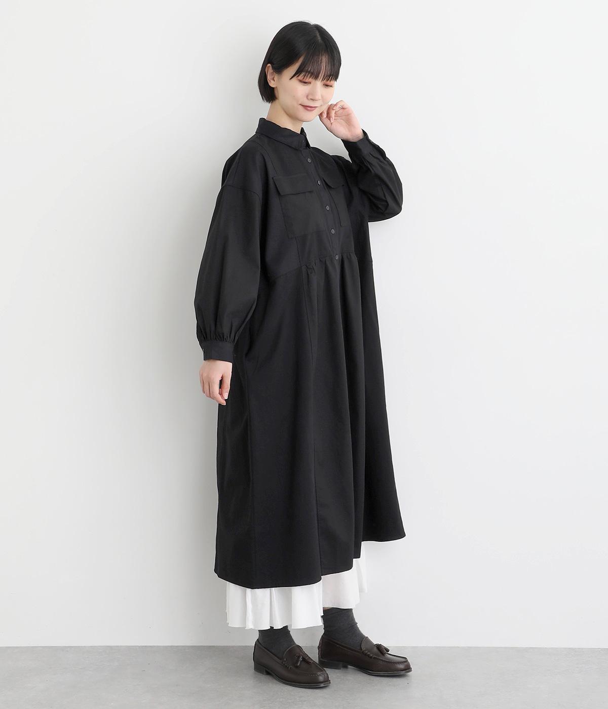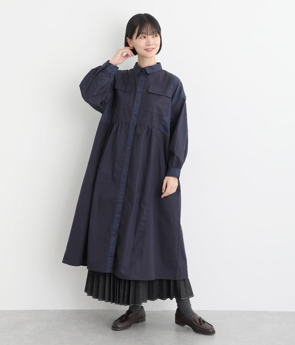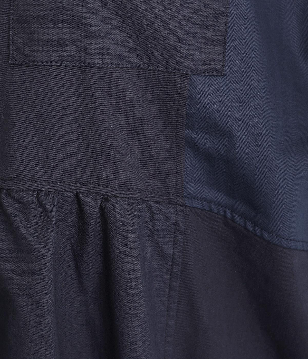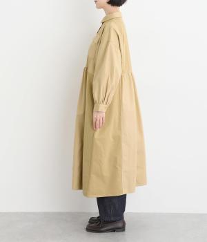 ワークテイストな生地を用いながらも、切り替えギャザーのフレアシルエットで可愛らしい要素も加えました。ワンピース使いはもちろん、ライトアウターとしても着まわせる便利な一枚。大きめのフラップポケットもポイントです。