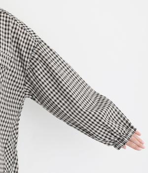 切り替えを入れてゆったりとしたオーバーシルエットにチェック柄で着映え力のある一枚。立体的なフラップポケットがメリハリをつけるポイントに。裾スリット入りで動きやすく、前をあけた羽織り使いもおすすめです。