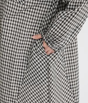 適度にハリのあるコットン布帛生地で軽やかに仕上げました。布帛特有のすっきりとしてきちんとした印象に、チェック柄でカジュアルテイストな華やかさをプラス。