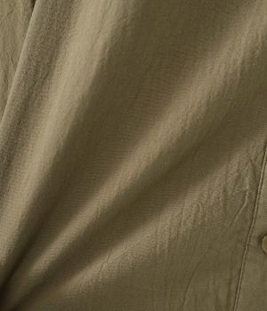 柔らかな肌触りのコットン生地。ワッシャー加工によって洗いざらしのような自然なシワ感を表現しました。微起毛ながらもやや薄手で軽いので、季節の変わり目からロングシーズン活躍します。