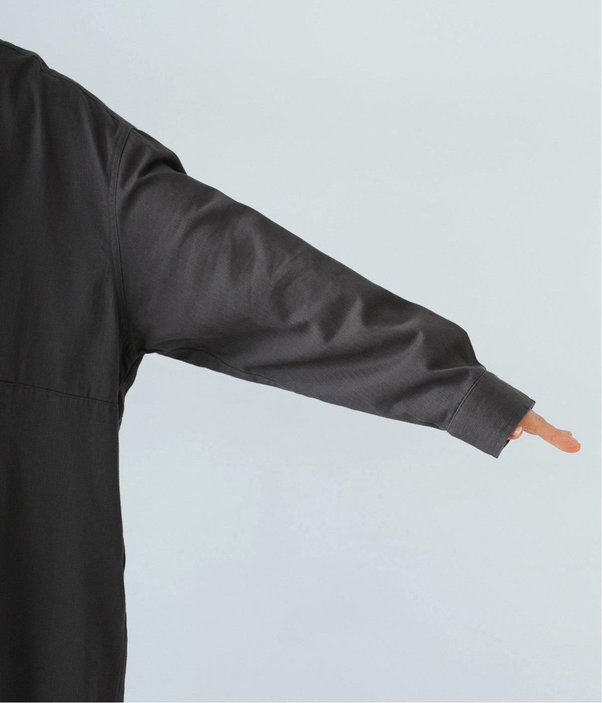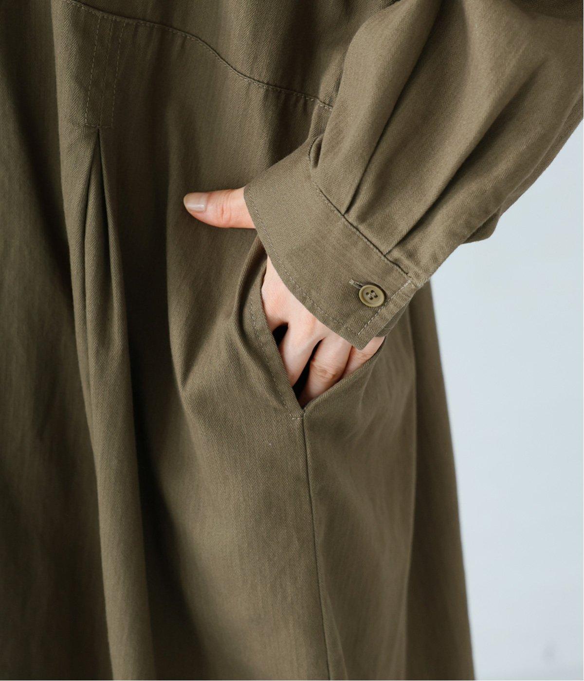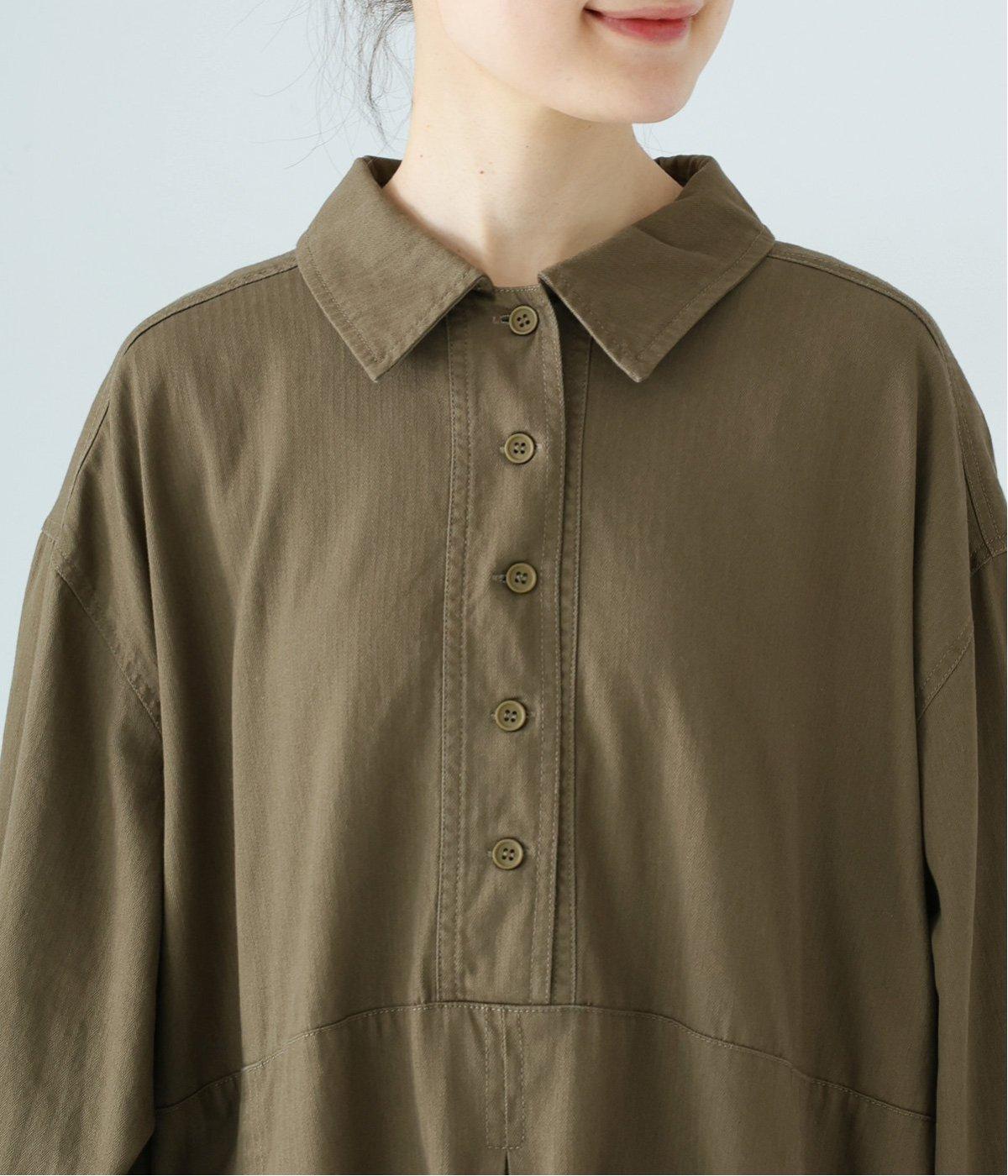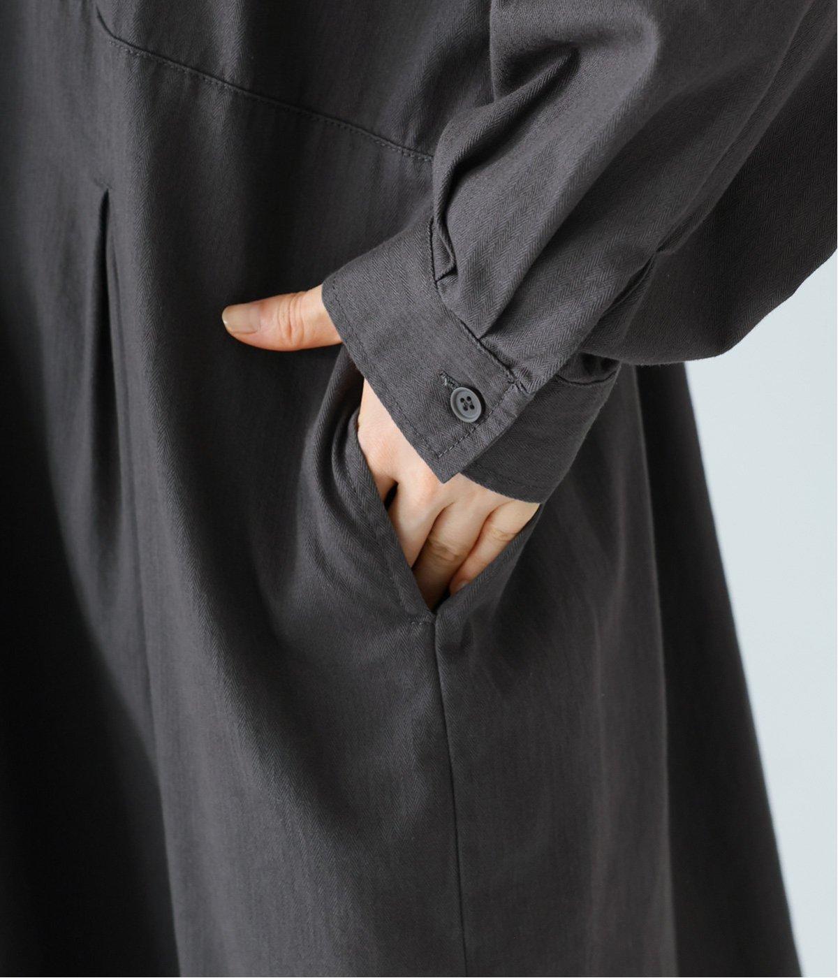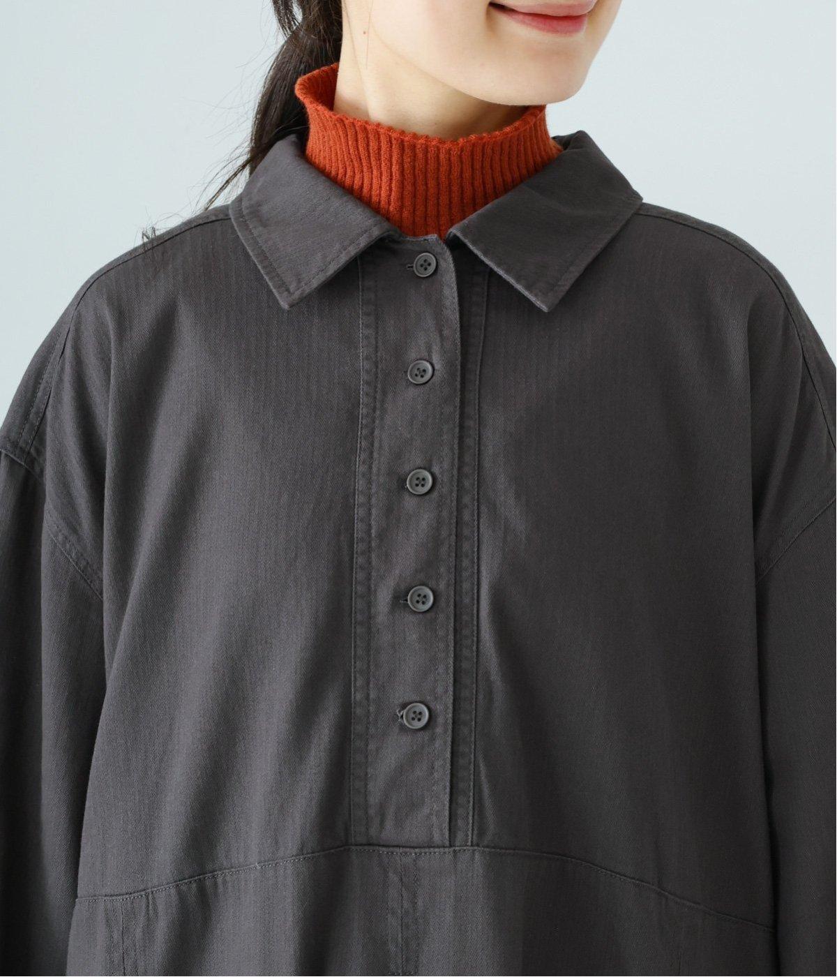 前ウエストにタックを、後ろにはギャザーを施した前後で違った表情をたのしめるワンピース。端正な襟でラフになりすぎないきちんと感を添えました。前身頃はボタン開き仕様で、タートルネックトップスなどのレイヤードもサマ見えします。