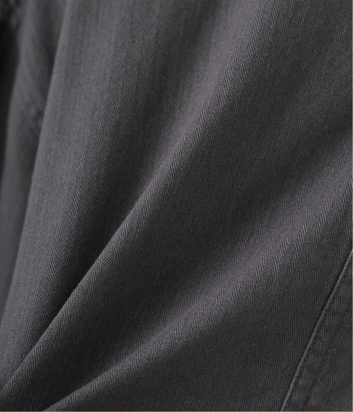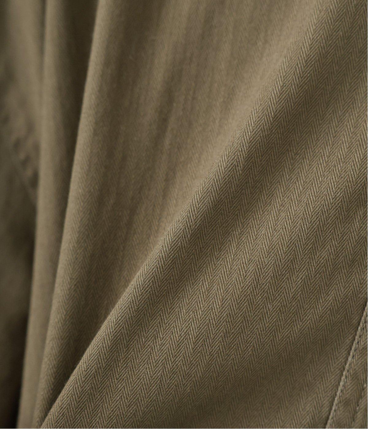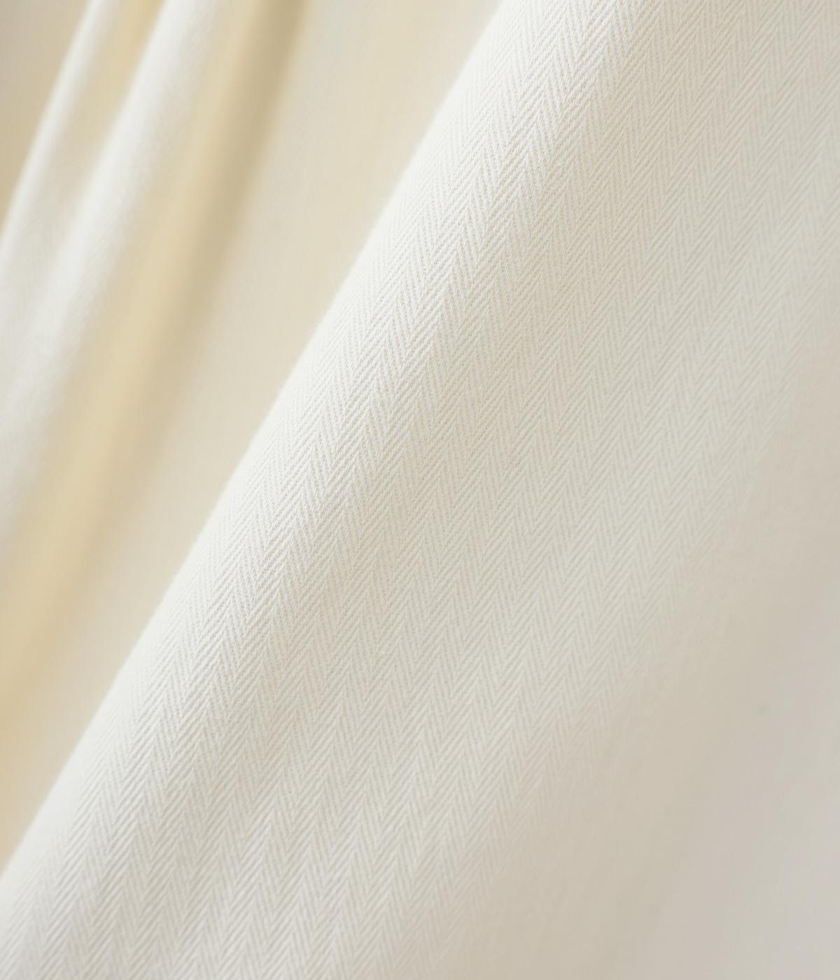 ユーズド感のある独特な風合いがこなれ感を演出するヘリンボーン生地。ほどよい肉感がありつつもコットンならではのくったりとしたやわらかな質感で、横への広がりをおさえてくれます。