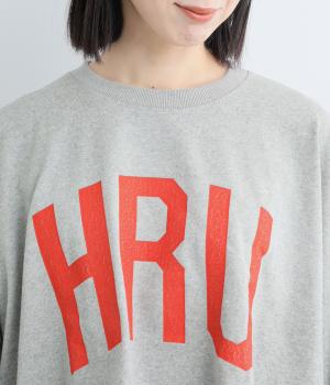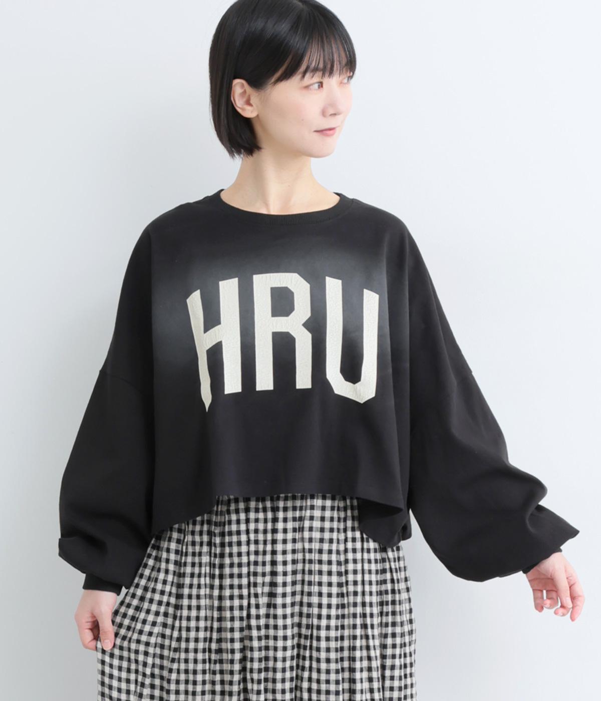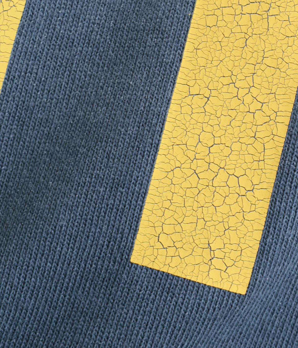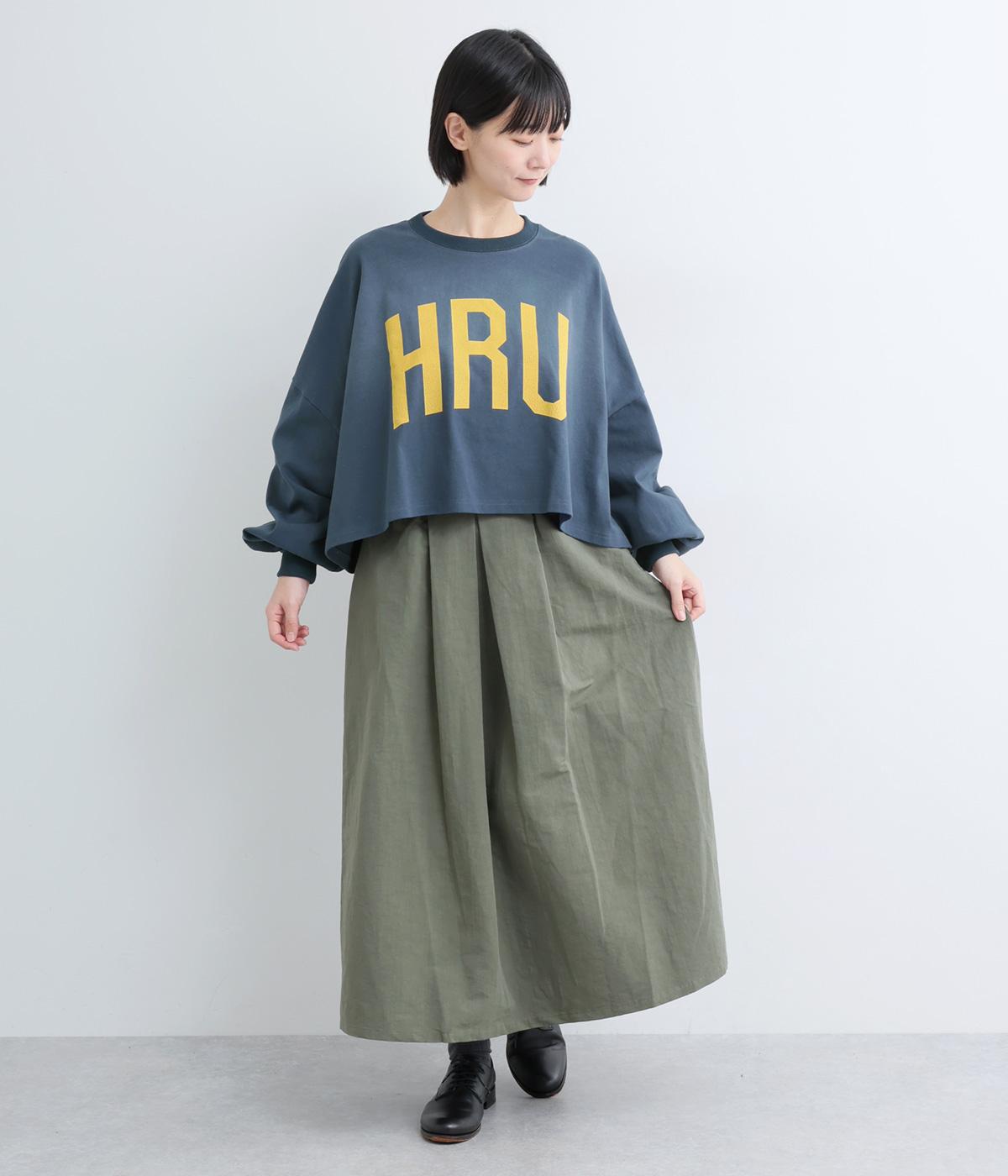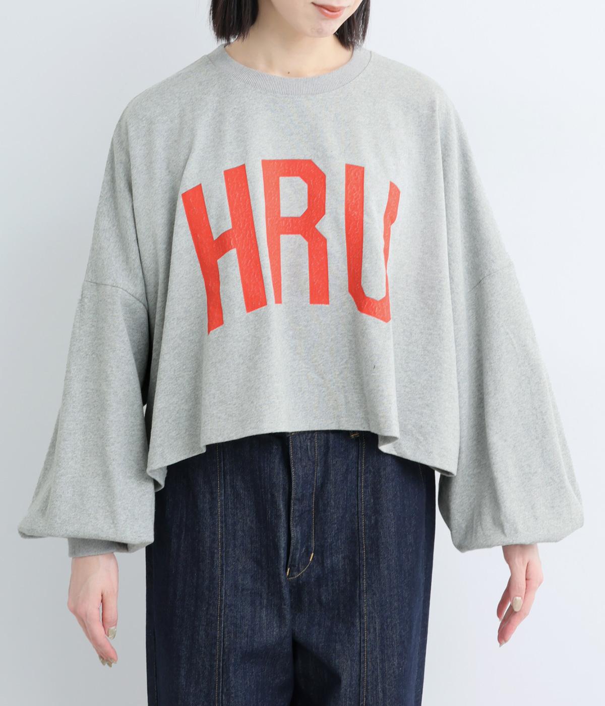 ドロップショルダーにふっくらとした袖のボリューム感と、すっきりカットしたショート丈のバランスが特徴的。ひび割れた大きなロゴプリントもいいアクセントで、こなれ感のある大人のカジュアルスタイルが完成。