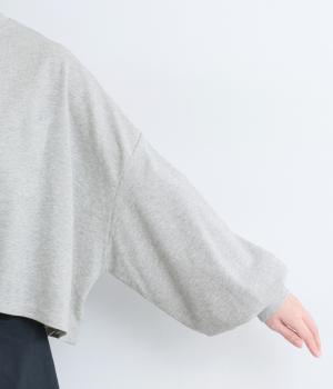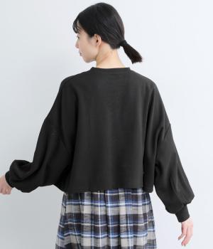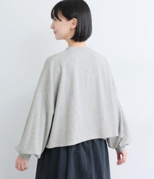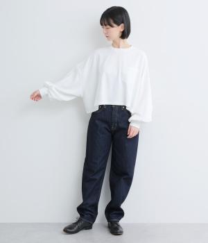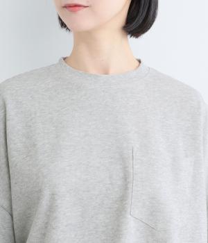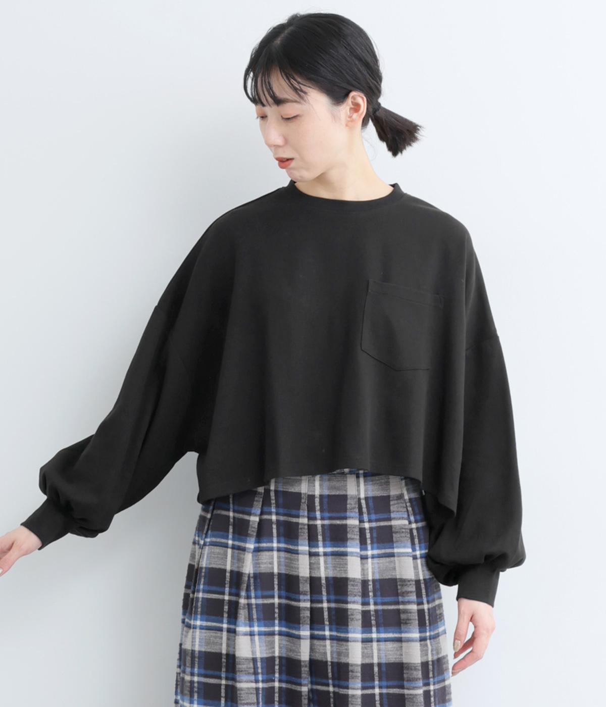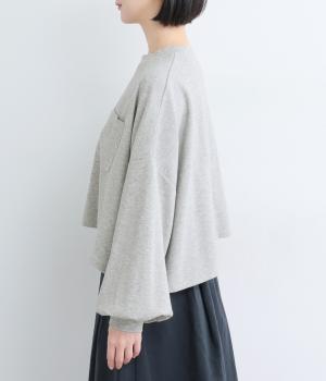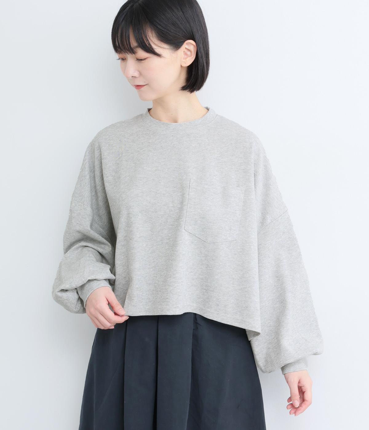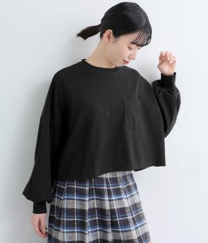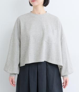 カジュアルテイストなカットソーを、ややフレアなショート丈やボリューム袖でフェミニンテイストに仕上げました。無地で着こなしやすく、それでいて印象的なシルエットバランスをつくりだします。胸元のポケットもさり気ないポイント。