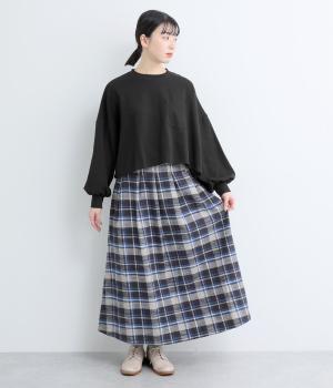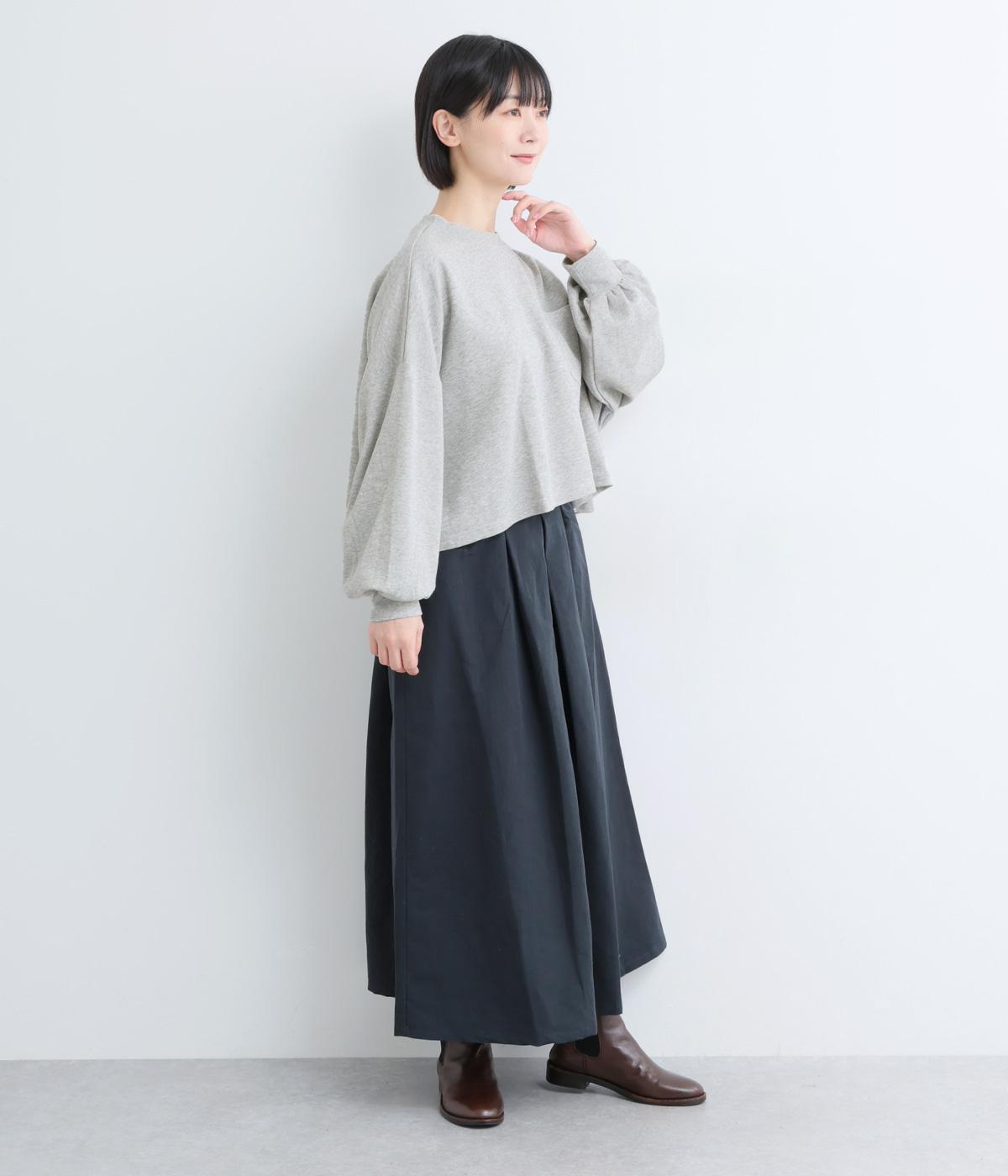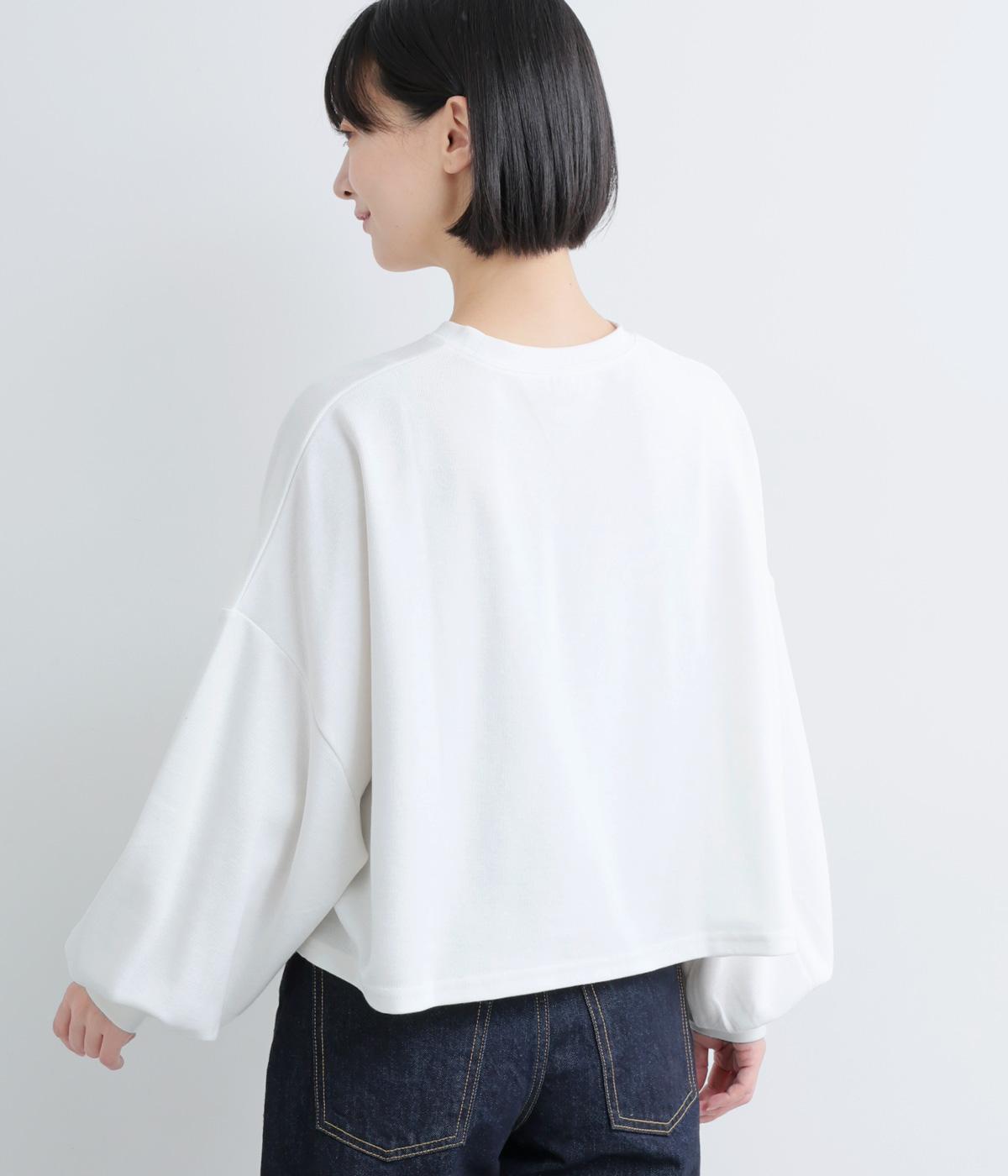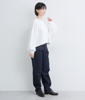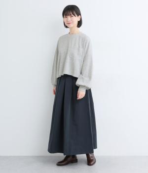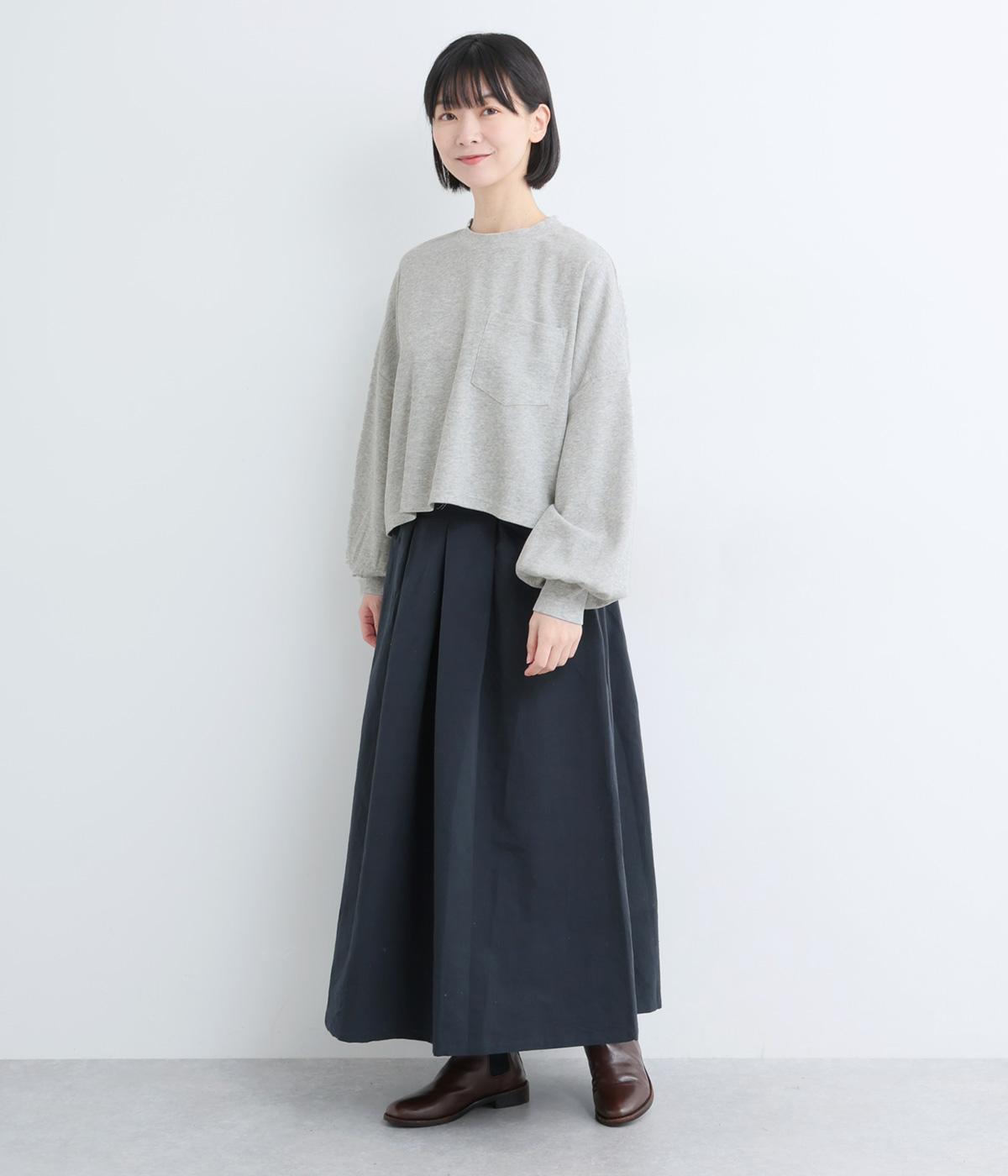 カジュアルテイストなカットソーを、ややフレアなショート丈やボリューム袖でフェミニンテイストに仕上げました。無地で着こなしやすく、それでいて印象的なシルエットバランスをつくりだします。胸元のポケットもさり気ないポイント。