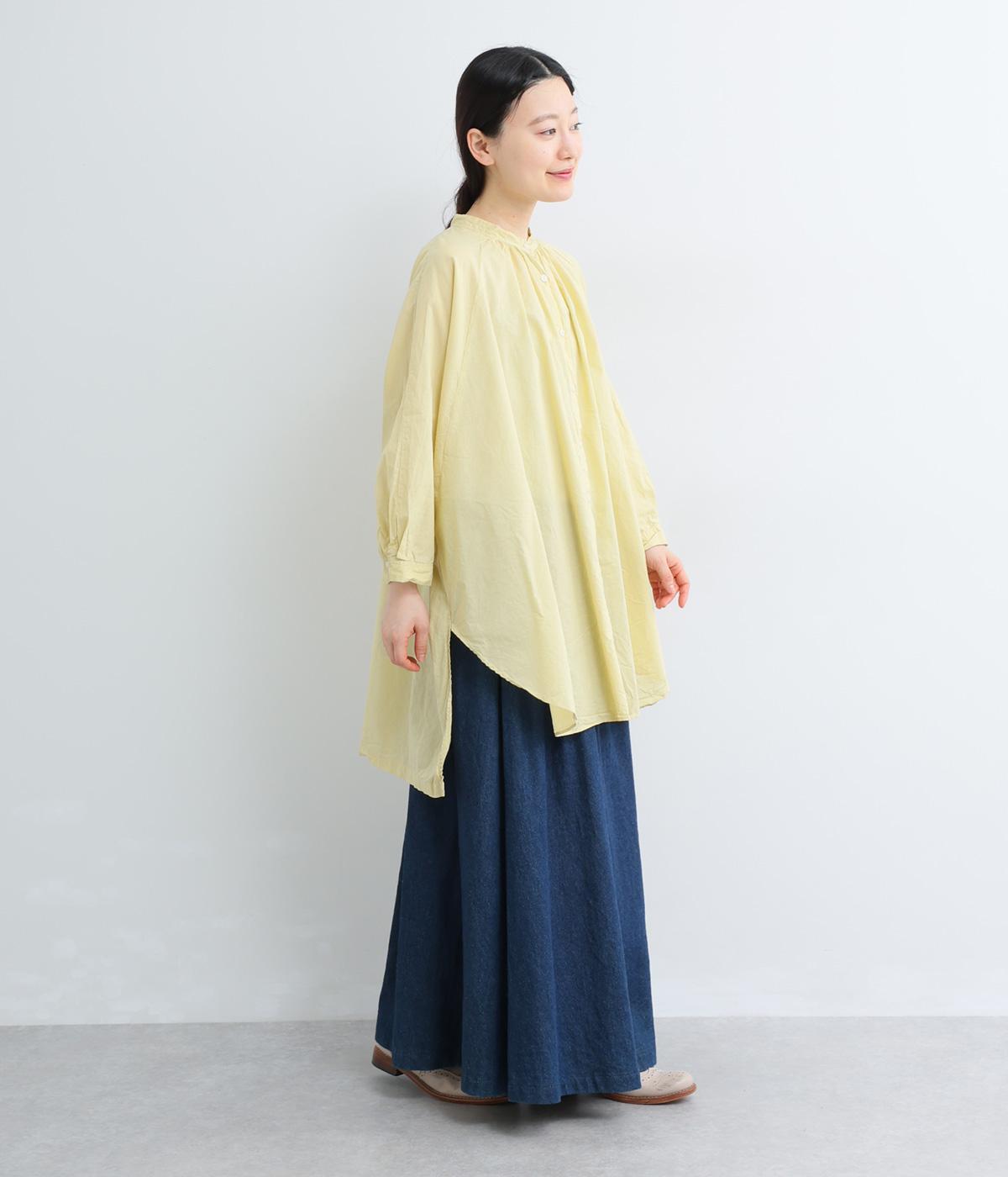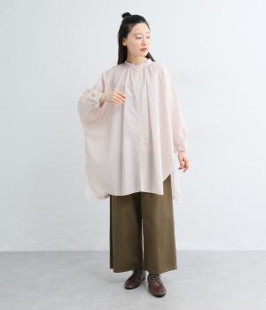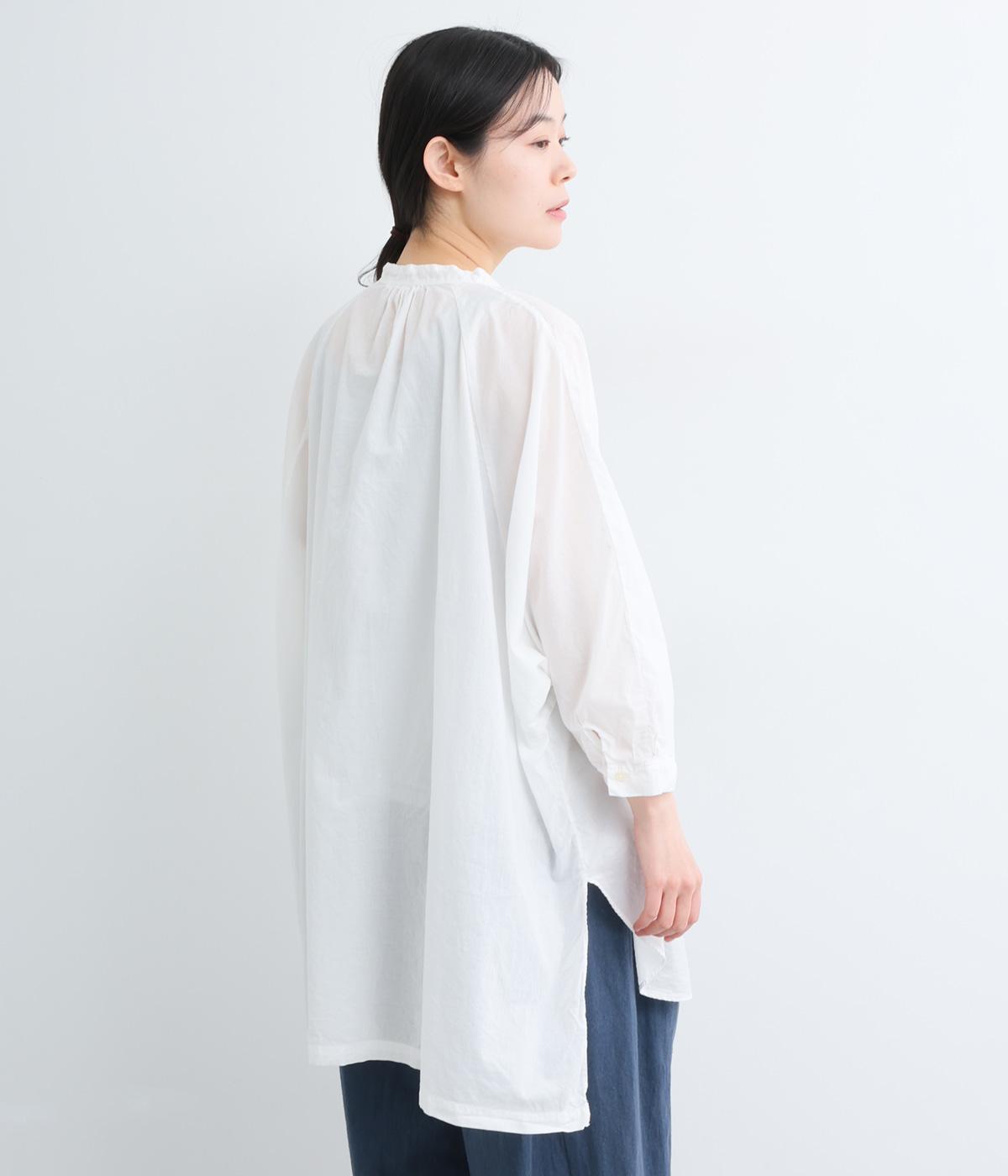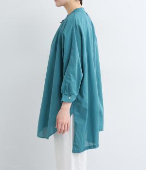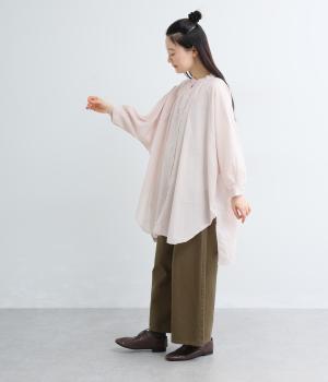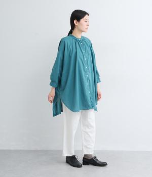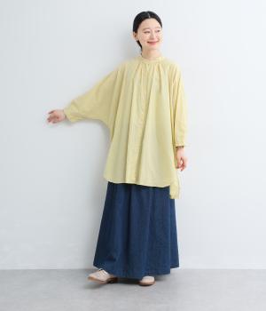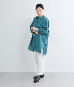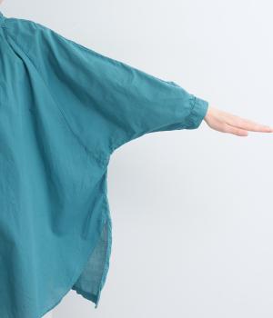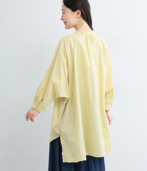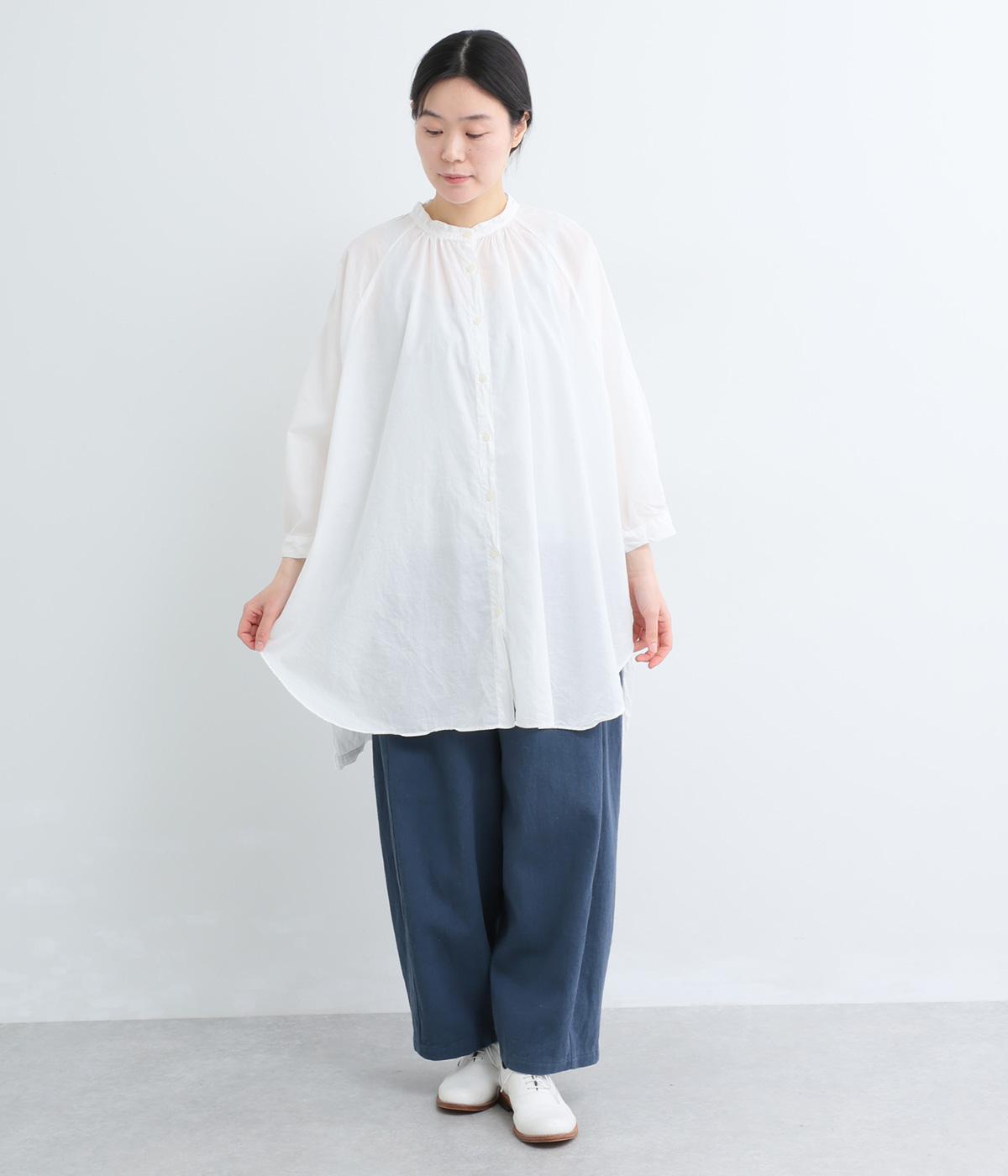 さらりとした肌触りで、薄手ながらほんのりハリのあるコットンローン生地。洗いざらしのような仕上げでふんわりとした風合いがあり、軽やかで快適な着心地です。